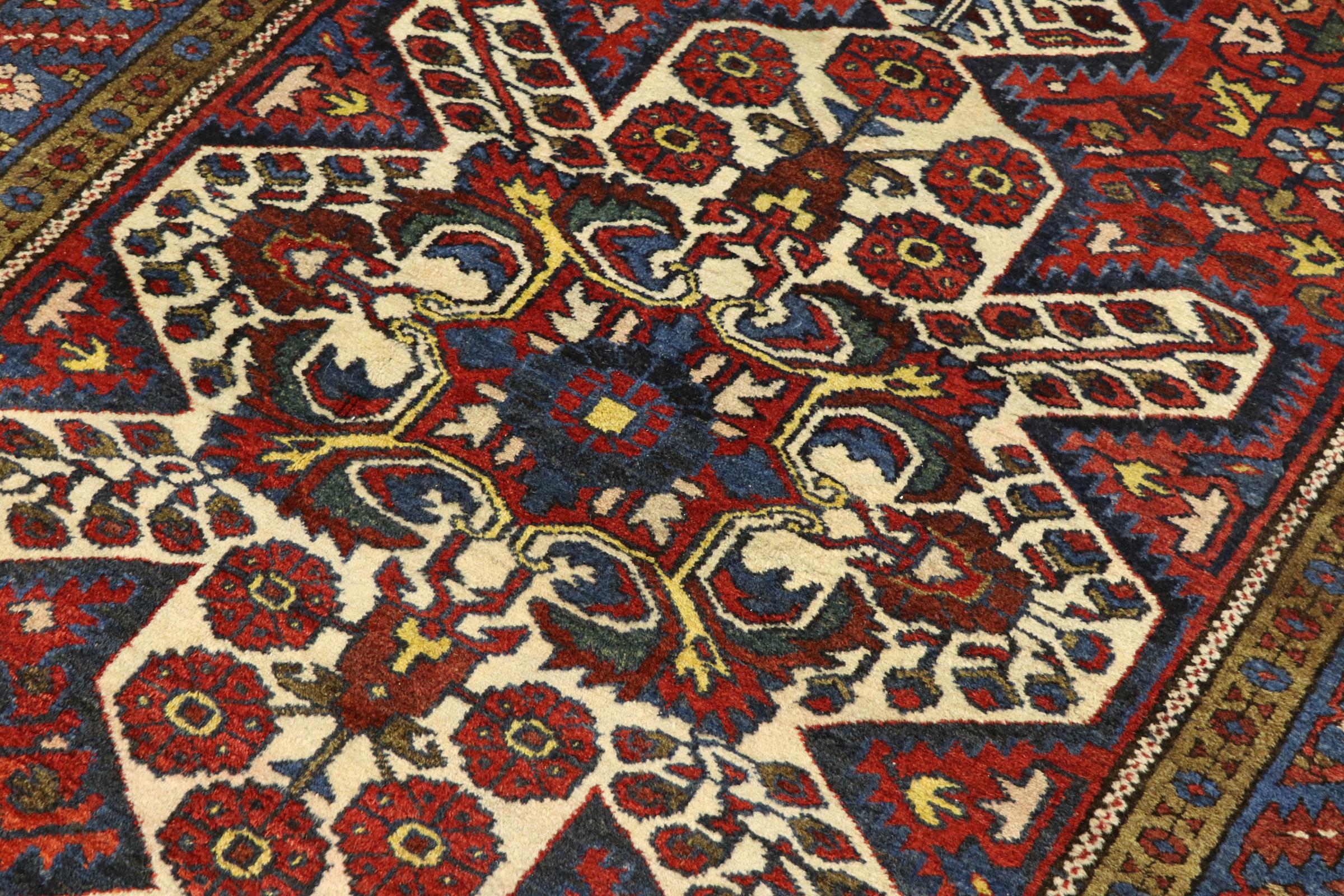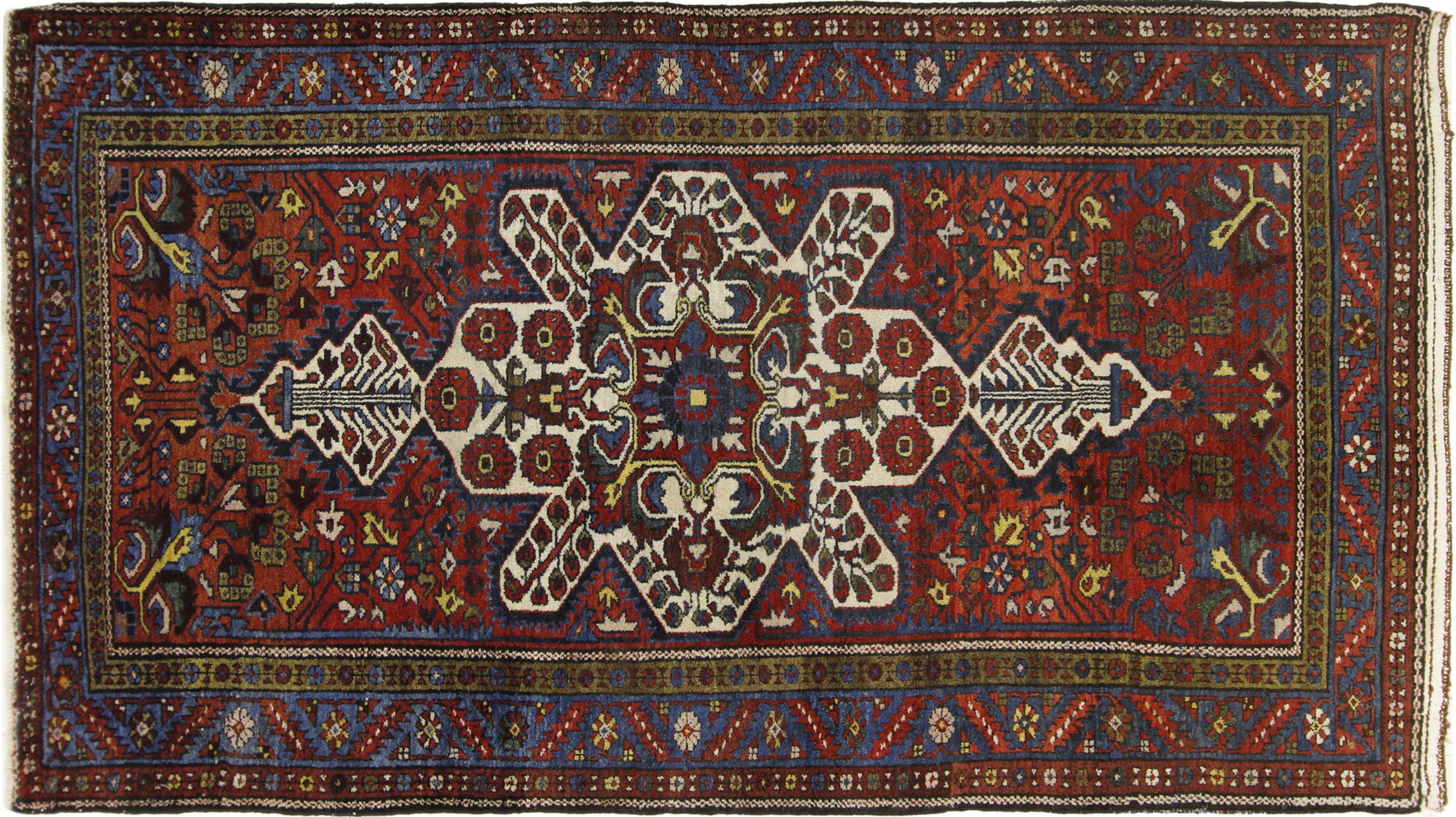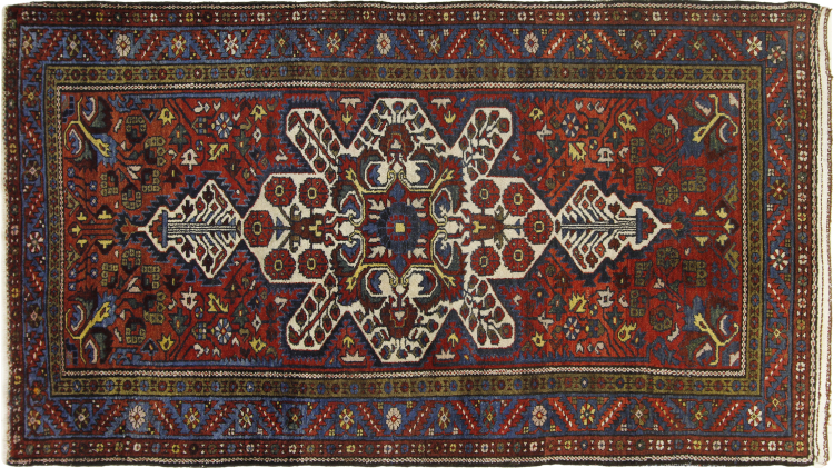 イラン(旧ペルシャ)の村や遊牧民の絨毯に属する絨毯です。この種の絨毯は、昔からの伝統で、小さな町や村で手で結ばれています。遊牧民でさえ、今でもペルシャ絨毯を野外で結びます。絨毯は柄がなく、頭から完全に結びます。古典的な装飾品が特徴で、直線的で幾何学的なパターンで配置されています。 文化的に伝統的な起源を持つこのカーペットは、古代ペルシャを体現するユニークな個性を持っています。