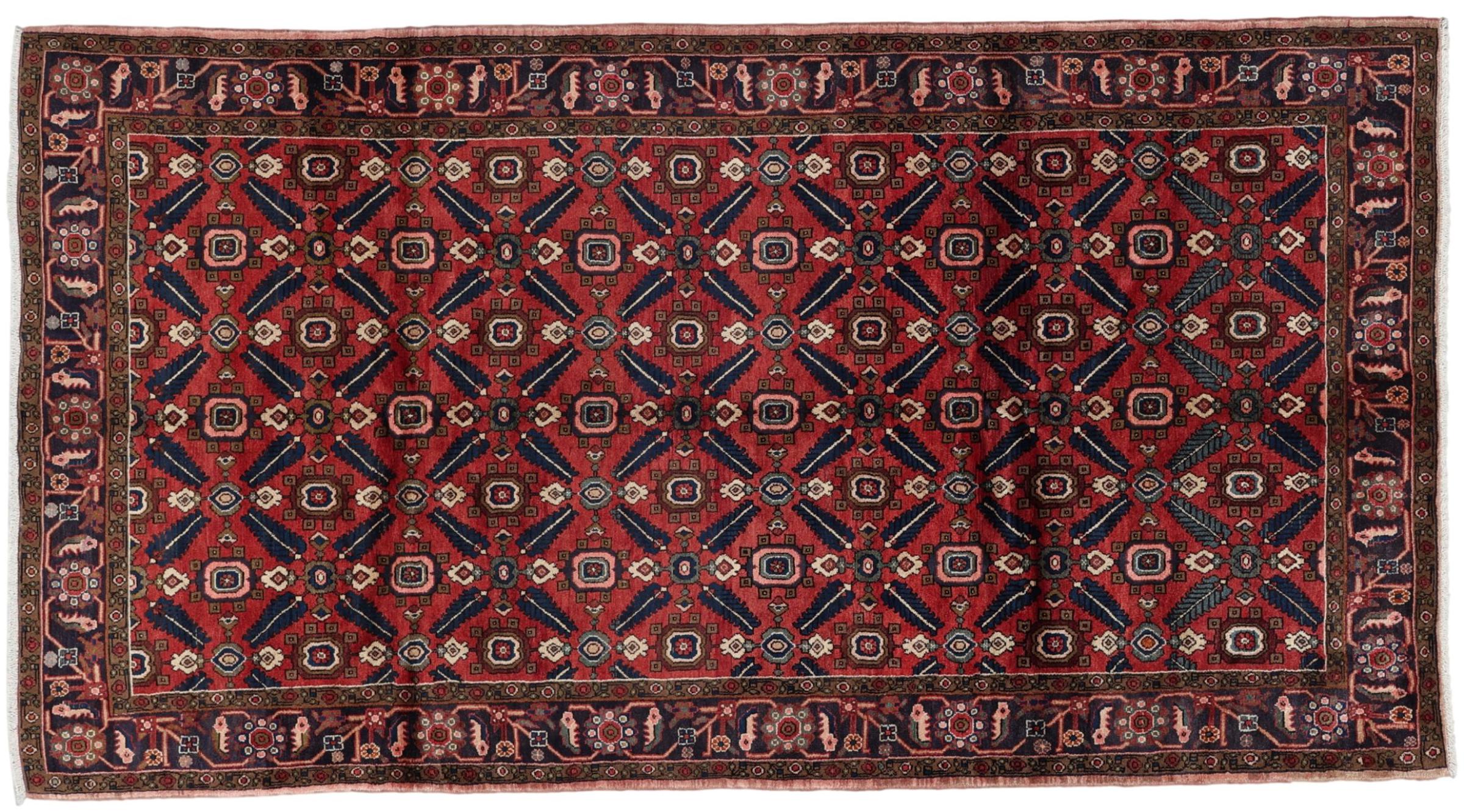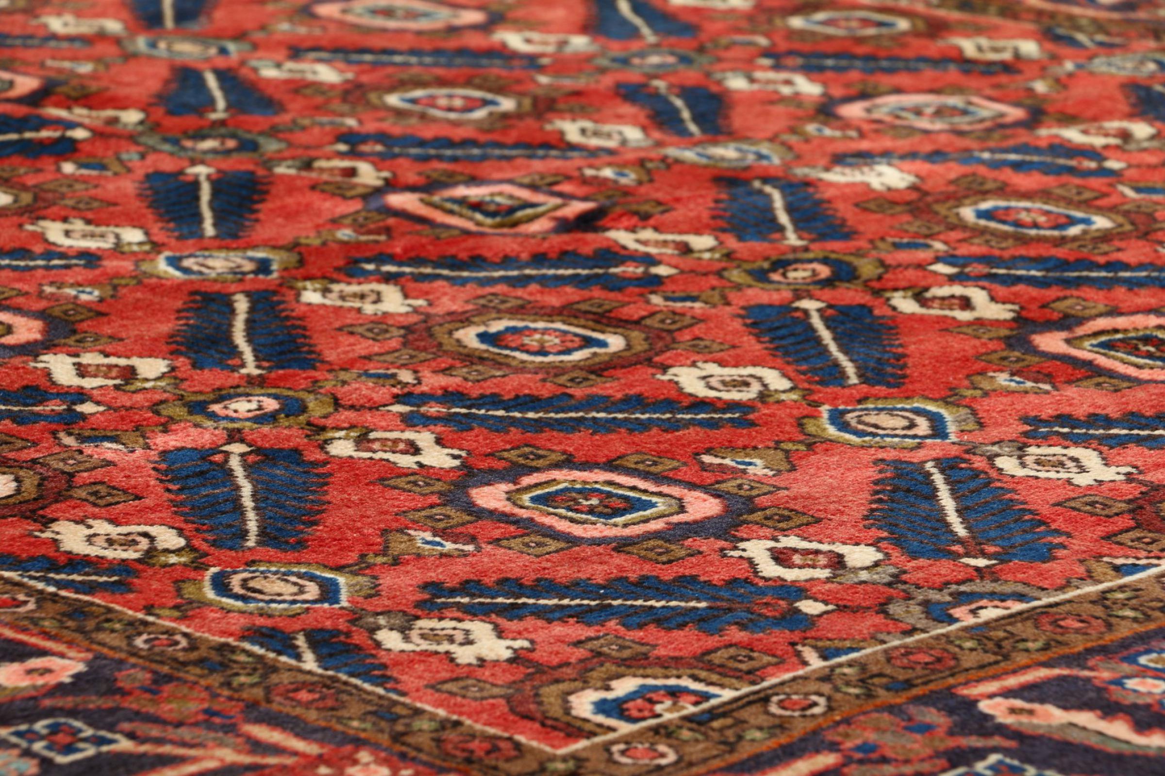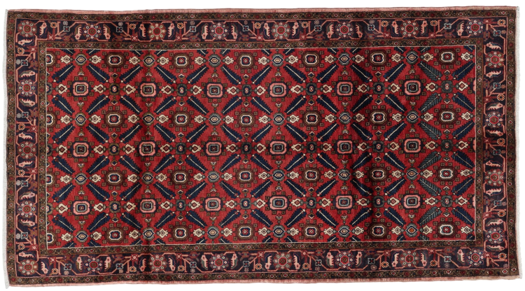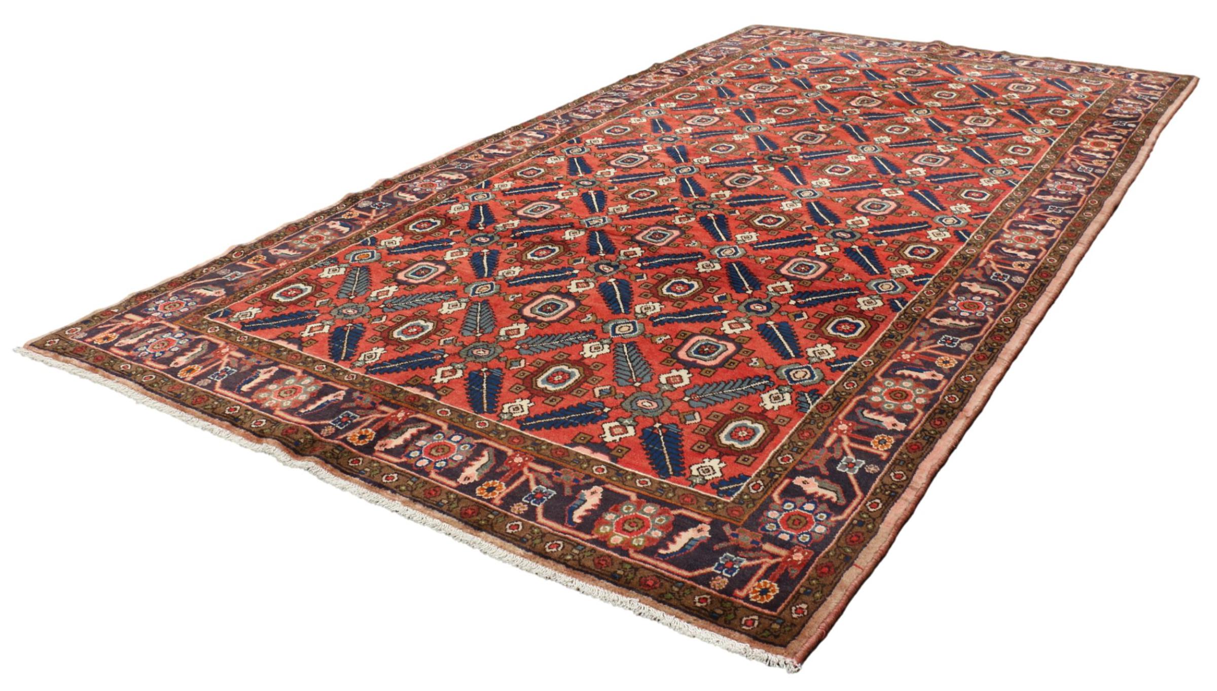 イラン(旧ペルシャ)の村や遊牧民の絨毯に属する絨毯です。この種の絨毯は、昔からの伝統で、小さな町や村で手で結ばれています。遊牧民でさえ、今でもペルシャ絨毯を野外で結びます。絨毯は柄がなく、頭から完全に結びます。古典的な装飾品が特徴で、直線的で幾何学的なパターンで配置されています。 文化的に伝統的な起源を持つこのカーペットは、古代ペルシャを体現するユニークな個性を持っています。