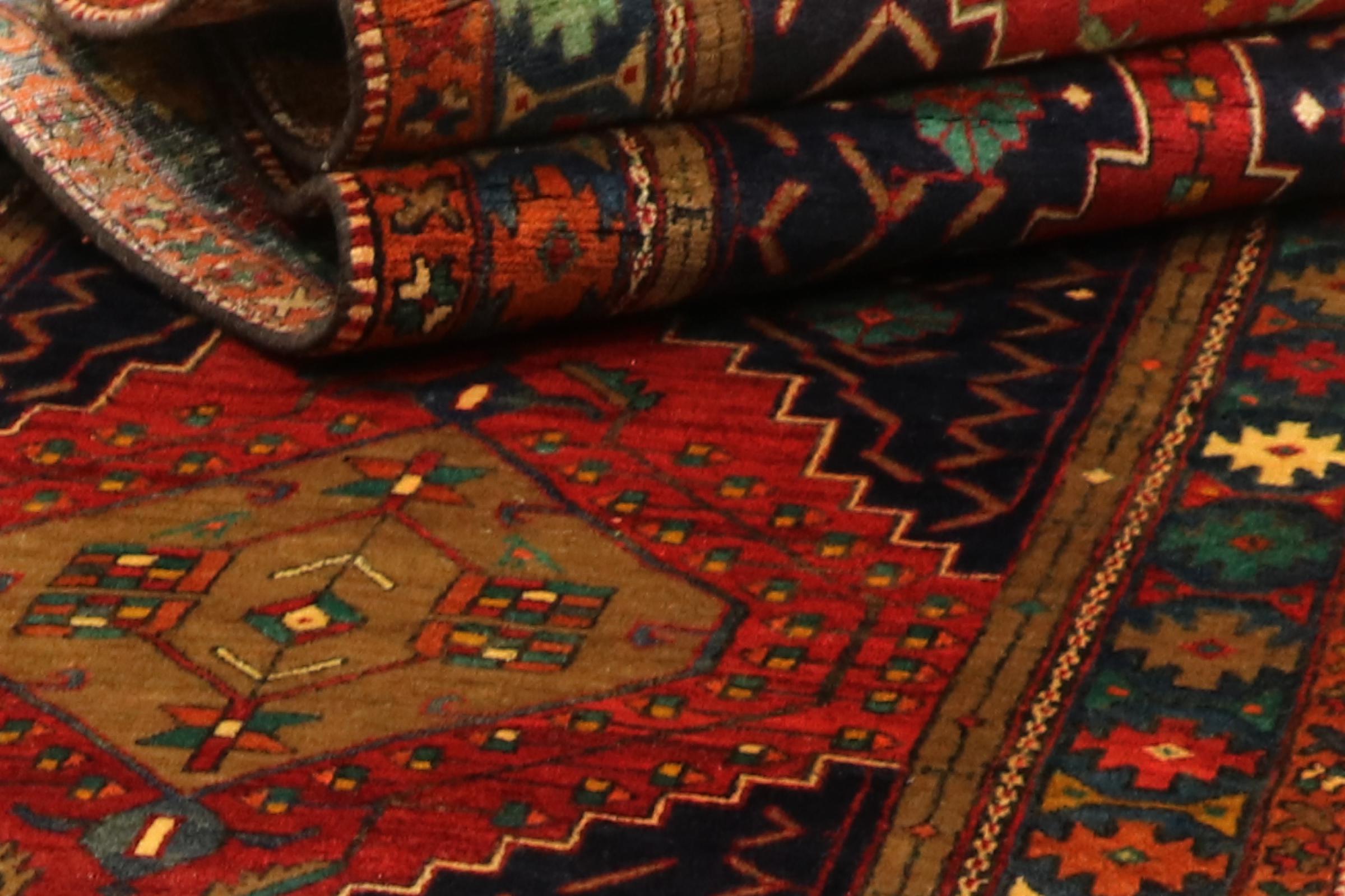 イラン(旧ペルシャ)の村や遊牧民の絨毯に属する絨毯です。この種の絨毯は、昔からの伝統で、小さな町や村で手で結ばれています。遊牧民でさえ、今でもペルシャ絨毯を野外で結びます。絨毯は柄がなく、頭から完全に結びます。古典的な装飾品が特徴で、直線的で幾何学的なパターンで配置されています。 文化的に伝統的な起源を持つこのカーペットは、古代ペルシャを体現するユニークな個性を持っています。