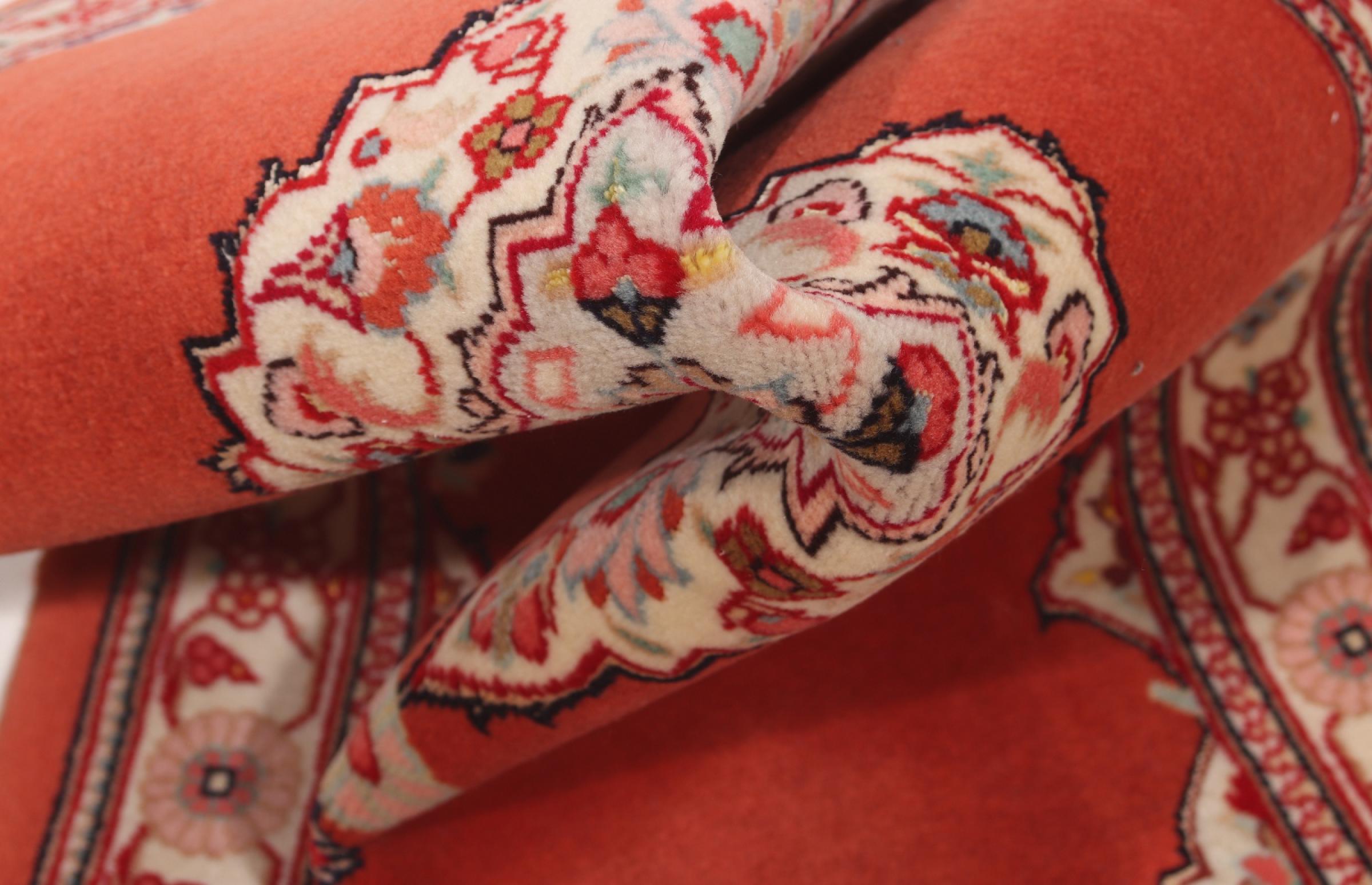 タブリーズはイランで最大の都市の1つであり、ペルシャ絨毯で最も有名な絨毯の州の1つです。 タブリーズカーペットには、しばしば「Raj」番号が付けられています。 この数値が高いほど、ノット密度を示すため、カーペットは細かくなります。 タブリーズの平均的なペルシャ絨毯(40ラージ)と非常に細かい絨毯(80ラージ)の両方があります。