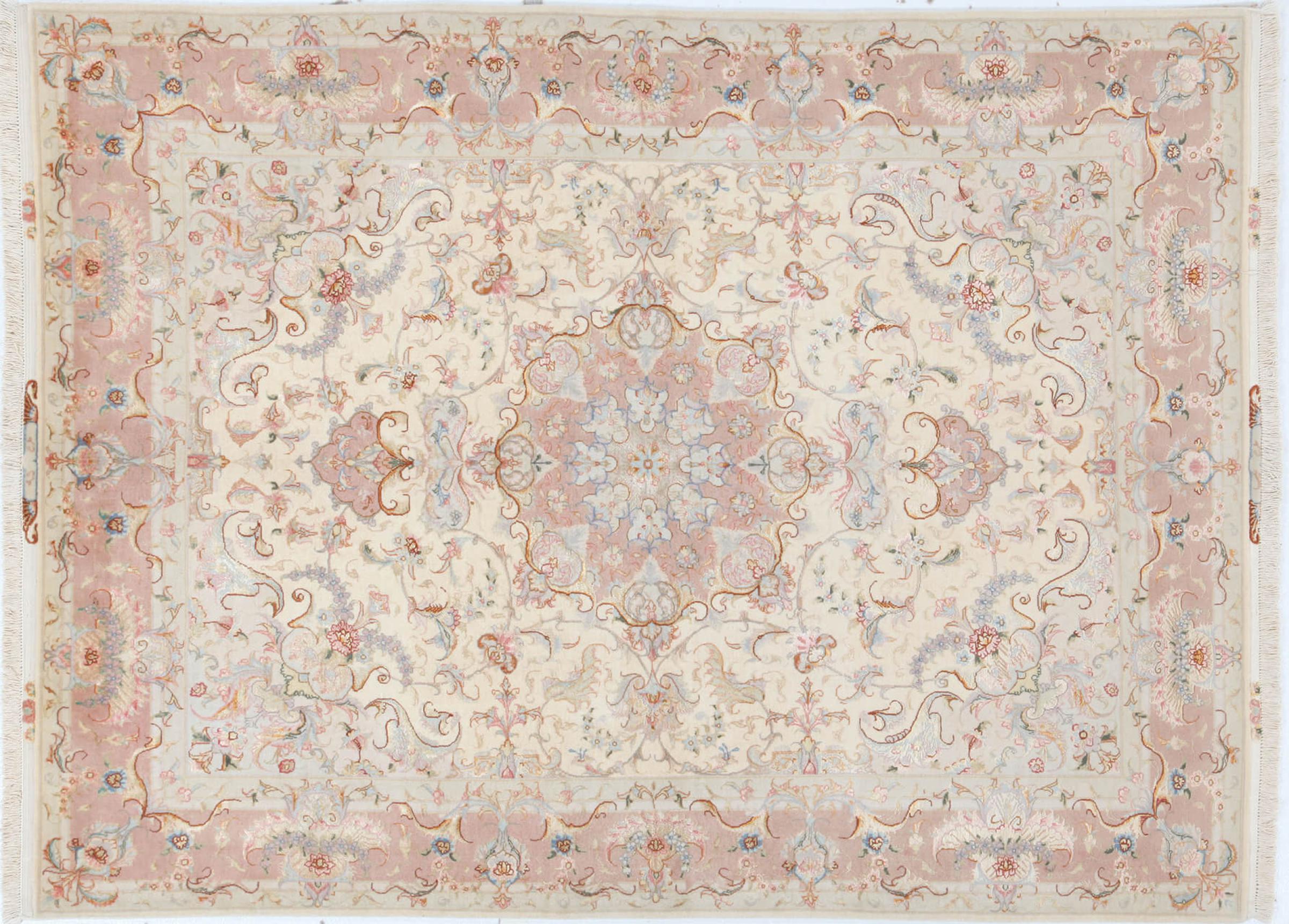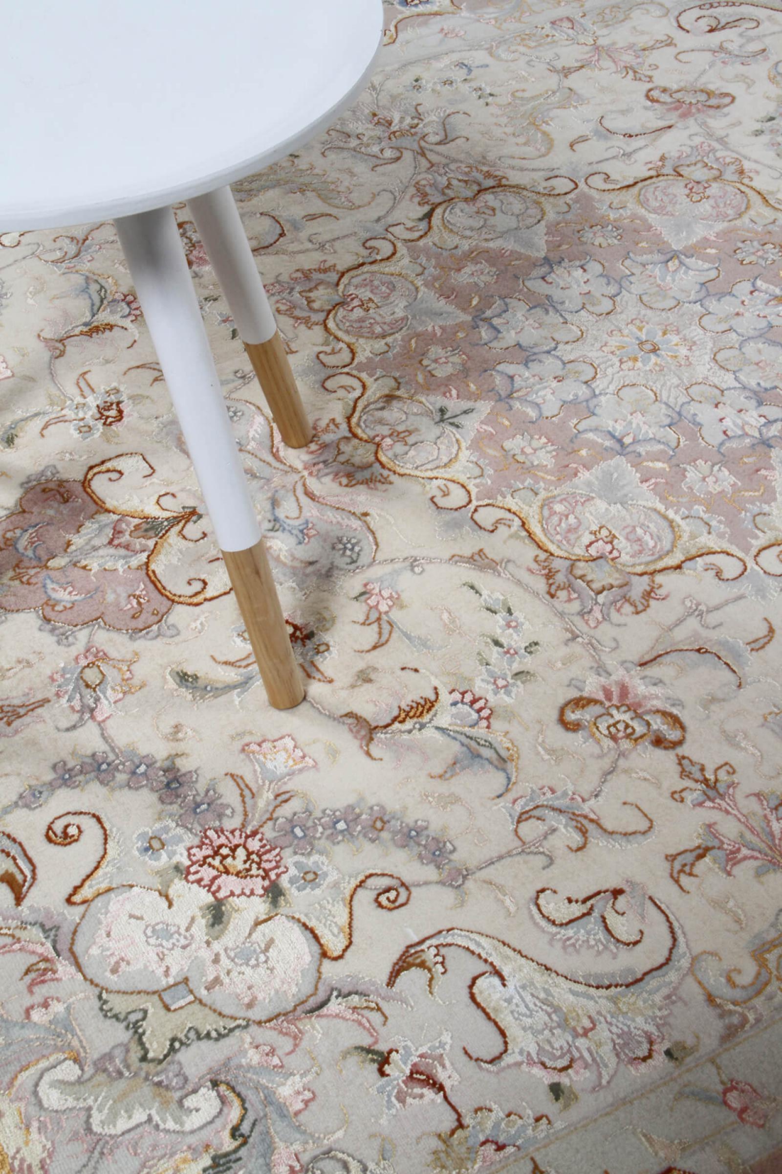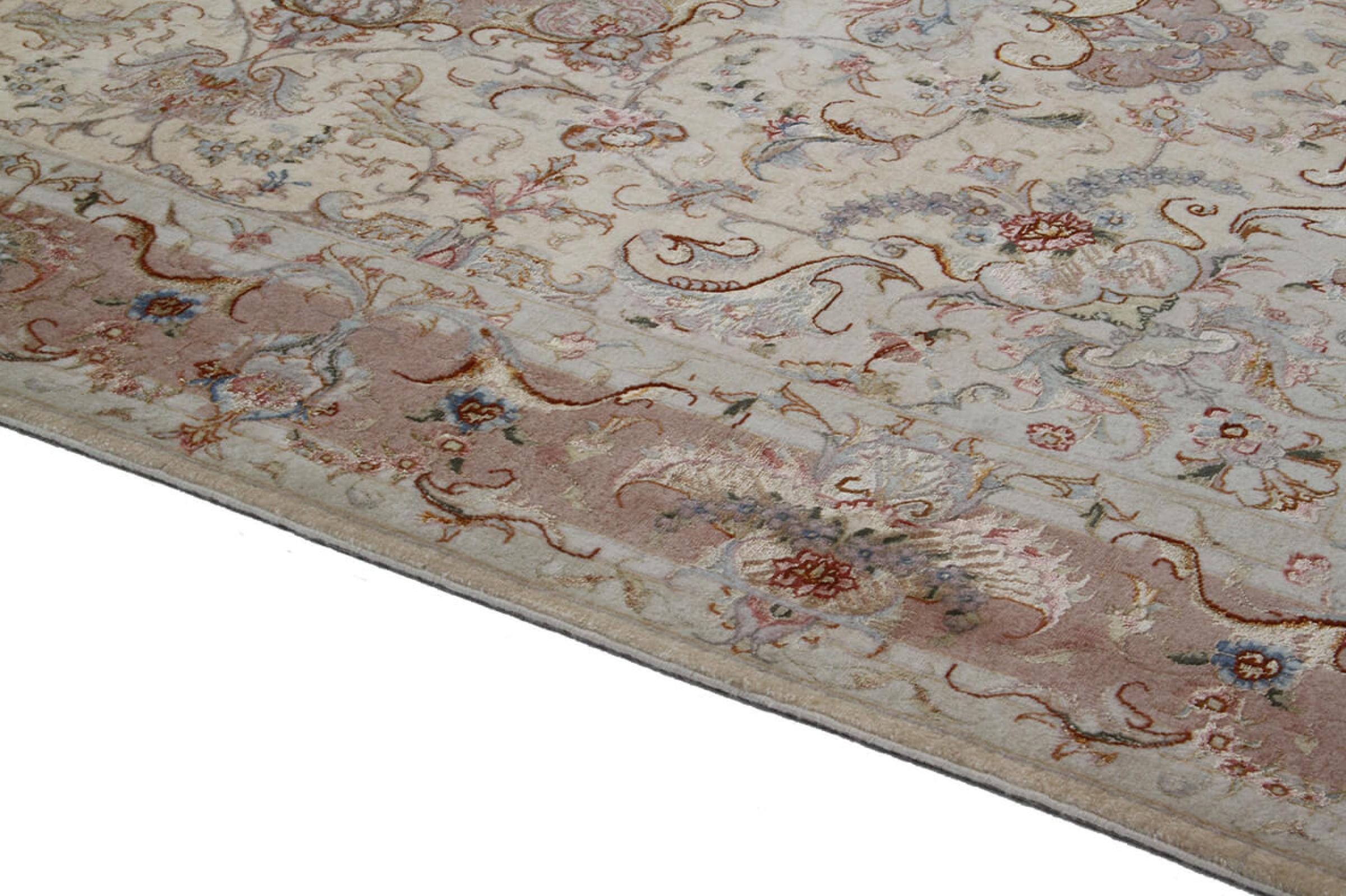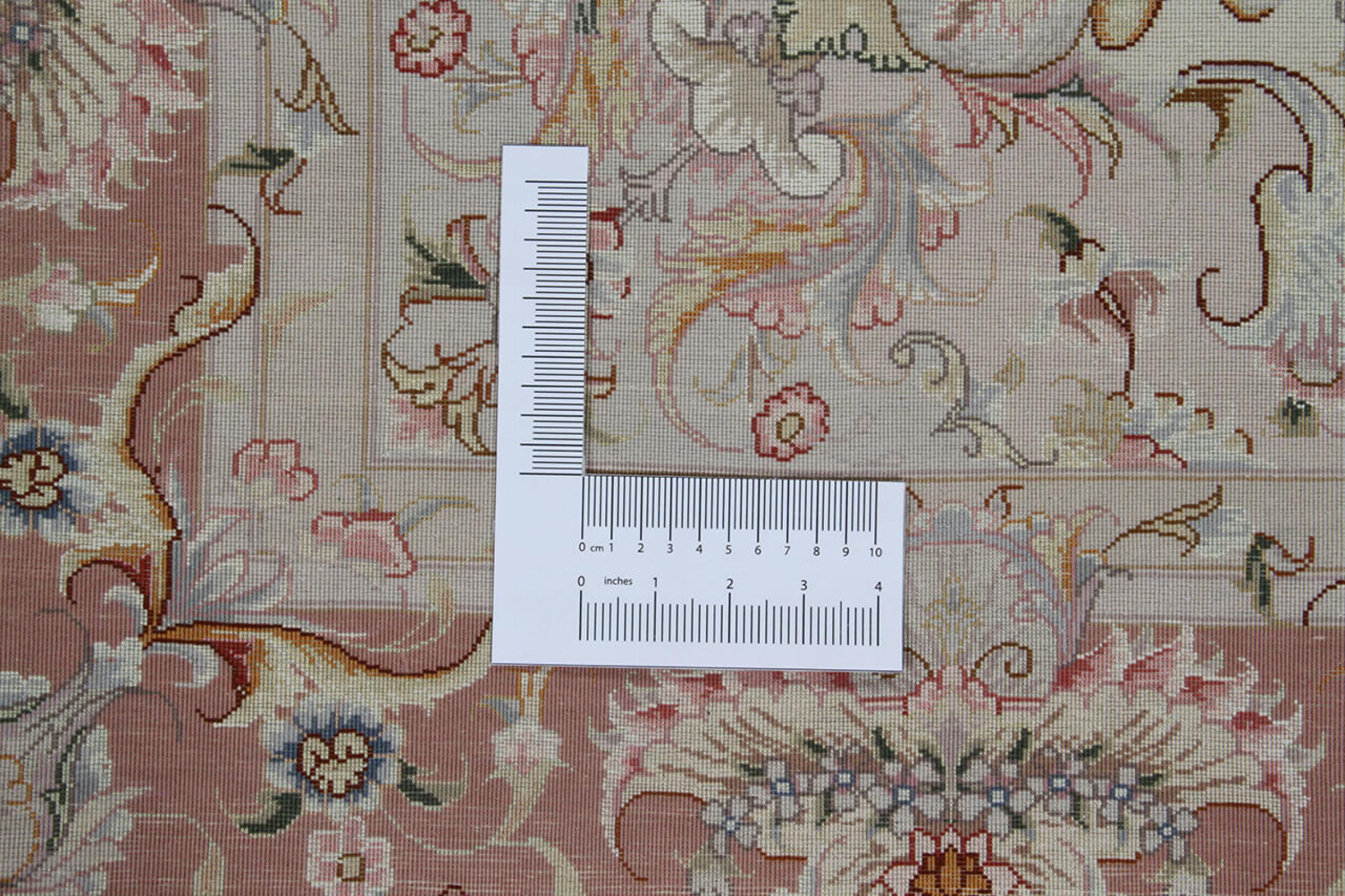 このタブリーズは、イラン北西部、同じ名前の職人都市タブリーズで手編みされました。 高品質のウールと天然シルクのみを使用しました。 そのパターンと装飾要素により、東洋を最も美しく反映しています。 タブリーズ絨毯は非常によく知られており、人気があります。 これらのカーペットの Raj 数は、長さ 7 cm にわたるノットの数を反映しています。 たとえば、タブリーズ 60Raj のノットは 1 平方メートルあたり約 700,000 です。