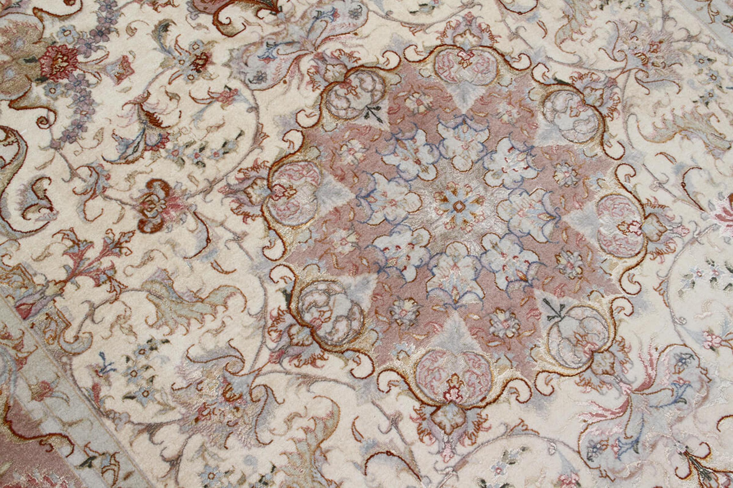 タブリーズはイランで最大の都市の1つであり、ペルシャ絨毯で最も有名な絨毯の州の1つです。 タブリーズカーペットには、しばしば「Raj」番号が付けられています。 この数値が高いほど、ノット密度を示すため、カーペットは細かくなります。 タブリーズの平均的なペルシャ絨毯(40ラージ)と非常に細かい絨毯(80ラージ)の両方があります。