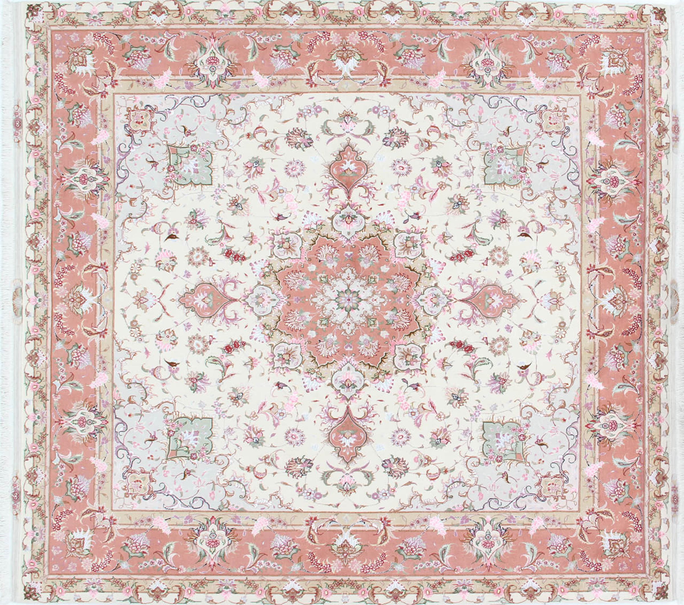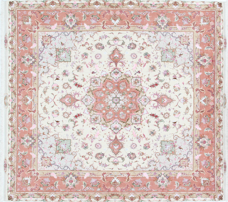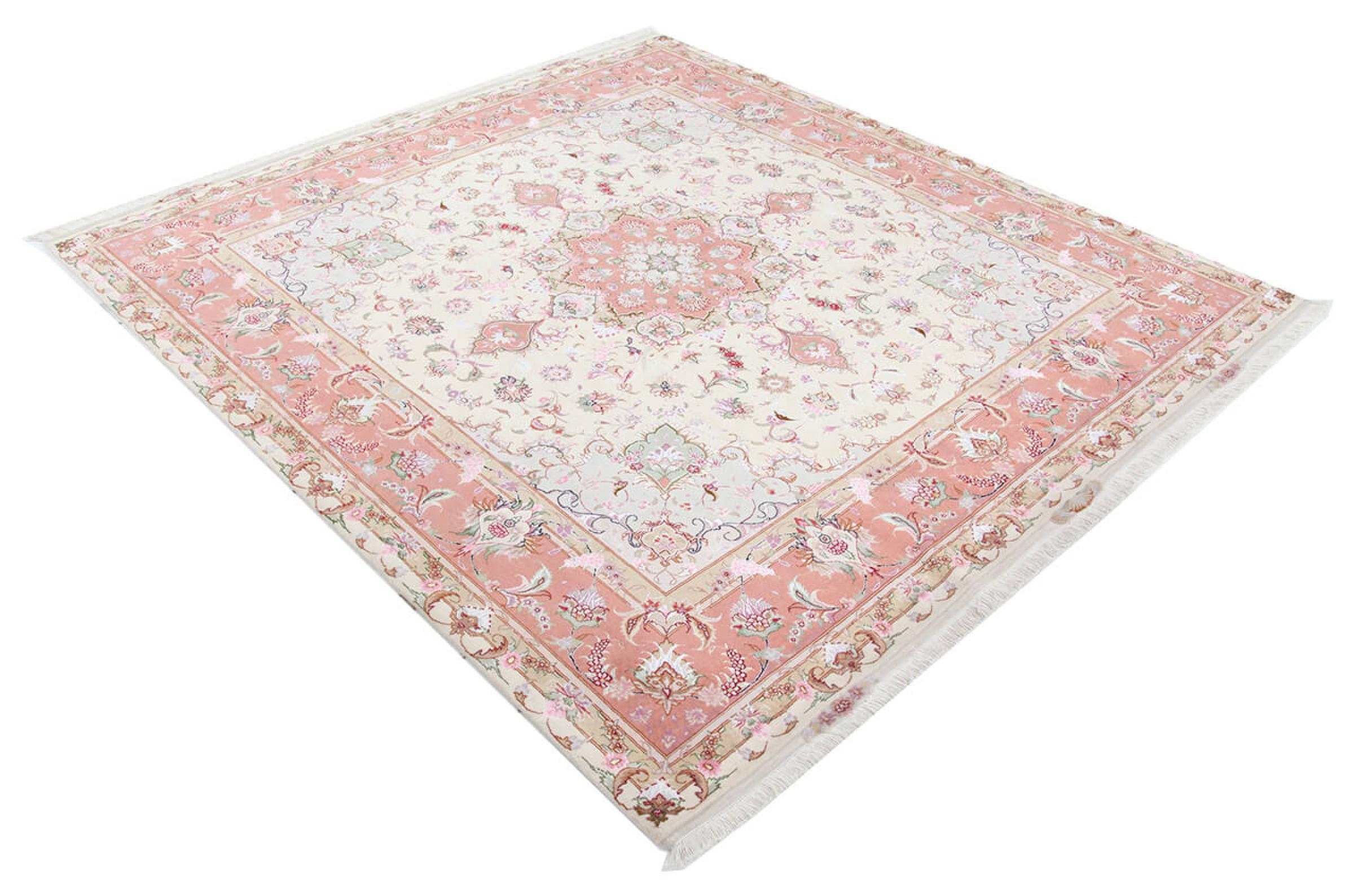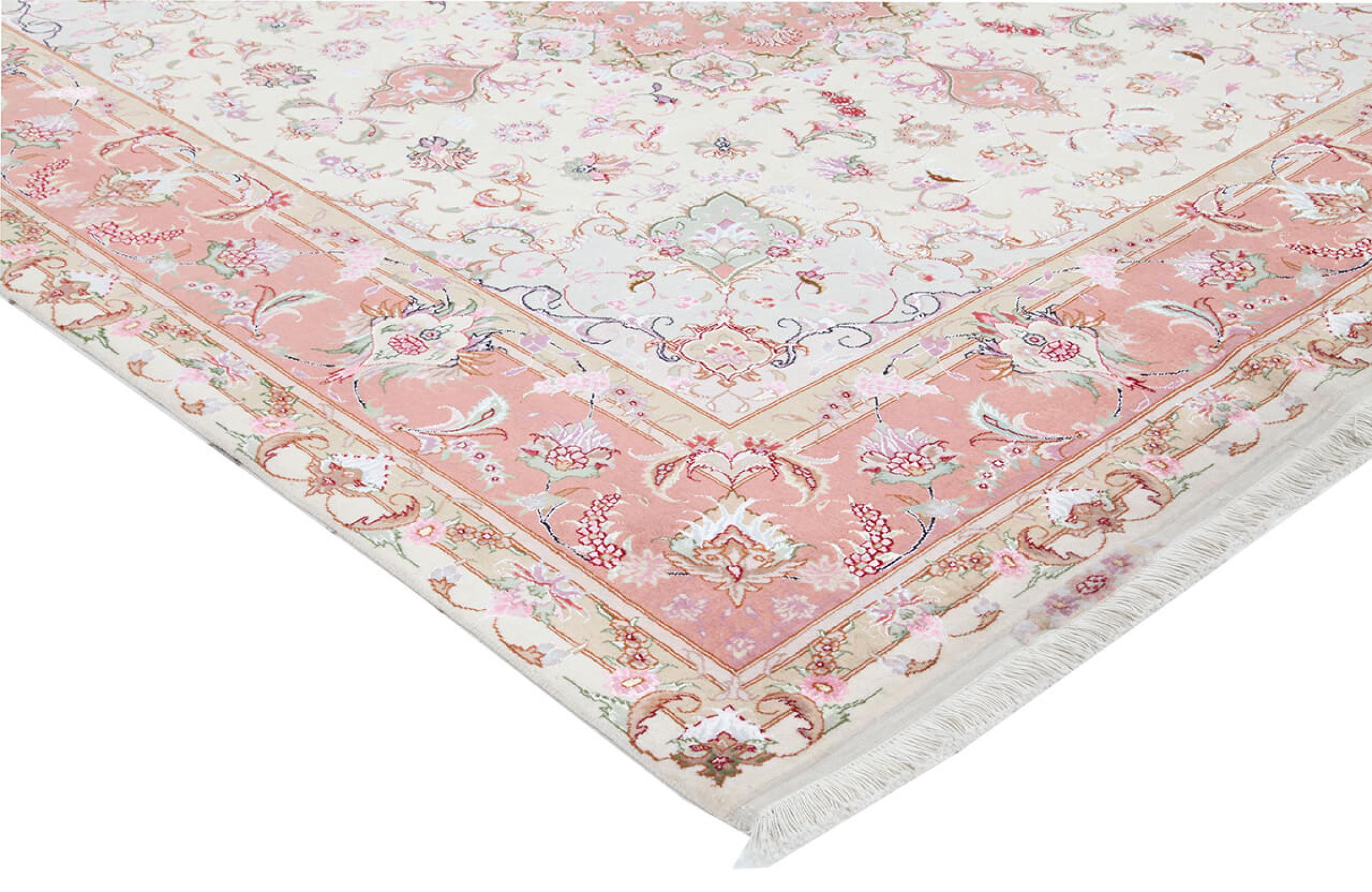 このタブリーズは、イラン北西部、同じ名前の職人都市タブリーズで手編みされました。 高品質のウールと天然シルクのみを使用しました。 そのパターンと装飾要素により、東洋を最も美しく反映しています。 タブリーズ絨毯は非常によく知られており、人気があります。 これらのカーペットの Raj 数は、長さ 7 cm にわたるノットの数を反映しています。 たとえば、タブリーズ 60Raj のノットは 1 平方メートルあたり約 700,000 です。
