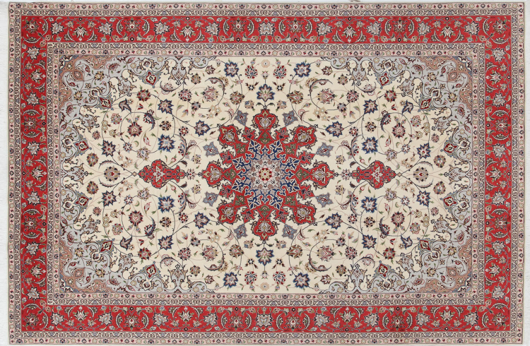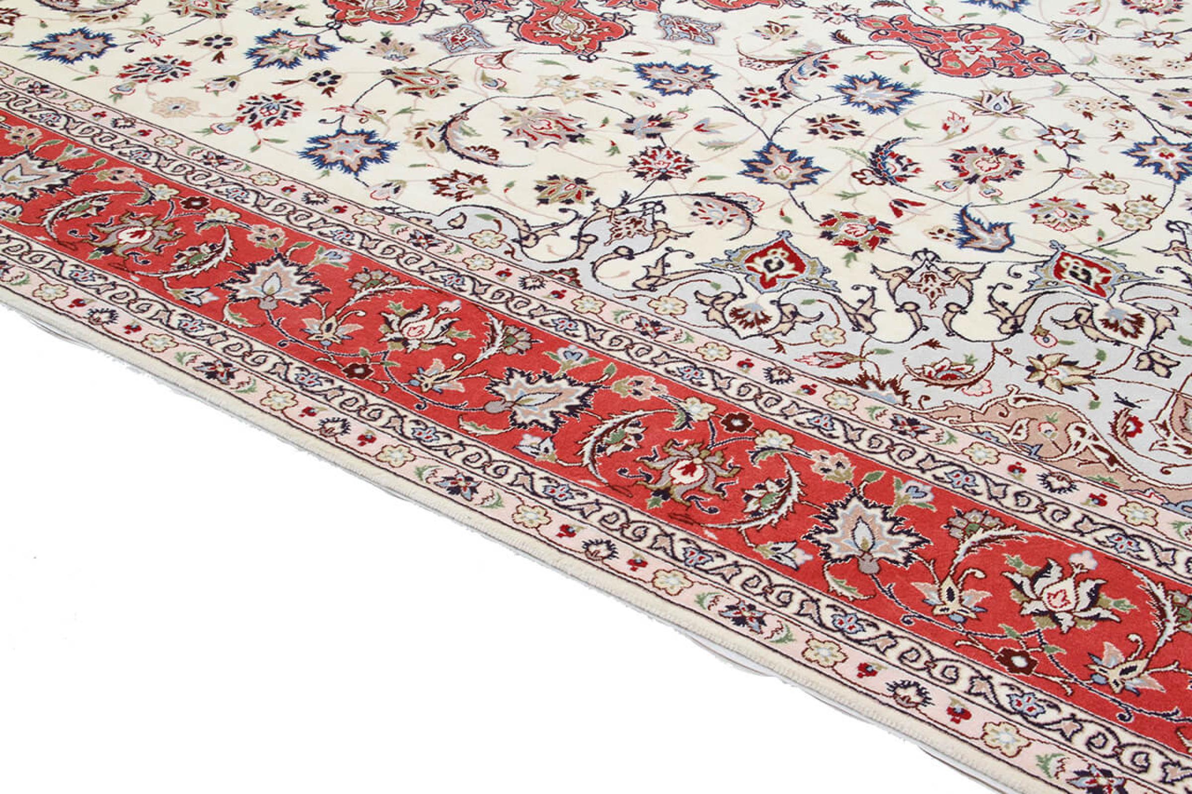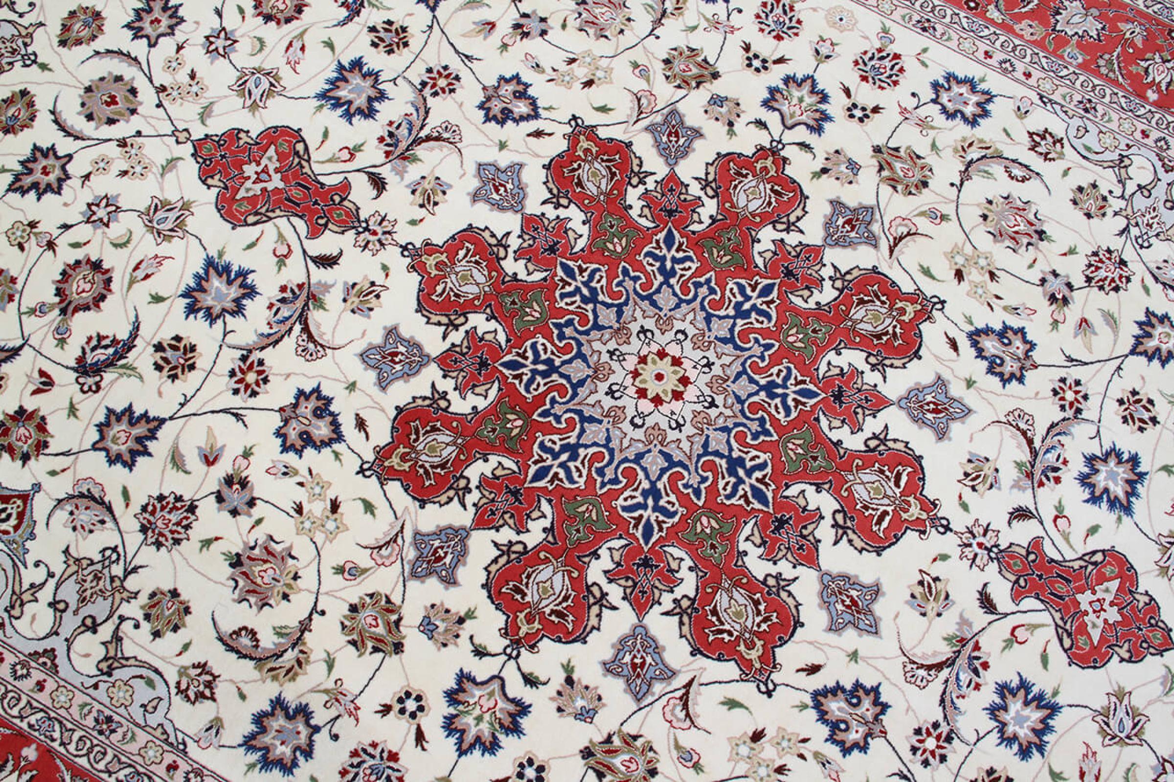 タブリーズはイランで最大の都市の1つであり、ペルシャ絨毯で最も有名な絨毯の州の1つです。 タブリーズカーペットには、しばしば「Raj」番号が付けられています。 この数値が高いほど、ノット密度を示すため、カーペットは細かくなります。 タブリーズの平均的なペルシャ絨毯(40ラージ)と非常に細かい絨毯(80ラージ)の両方があります。