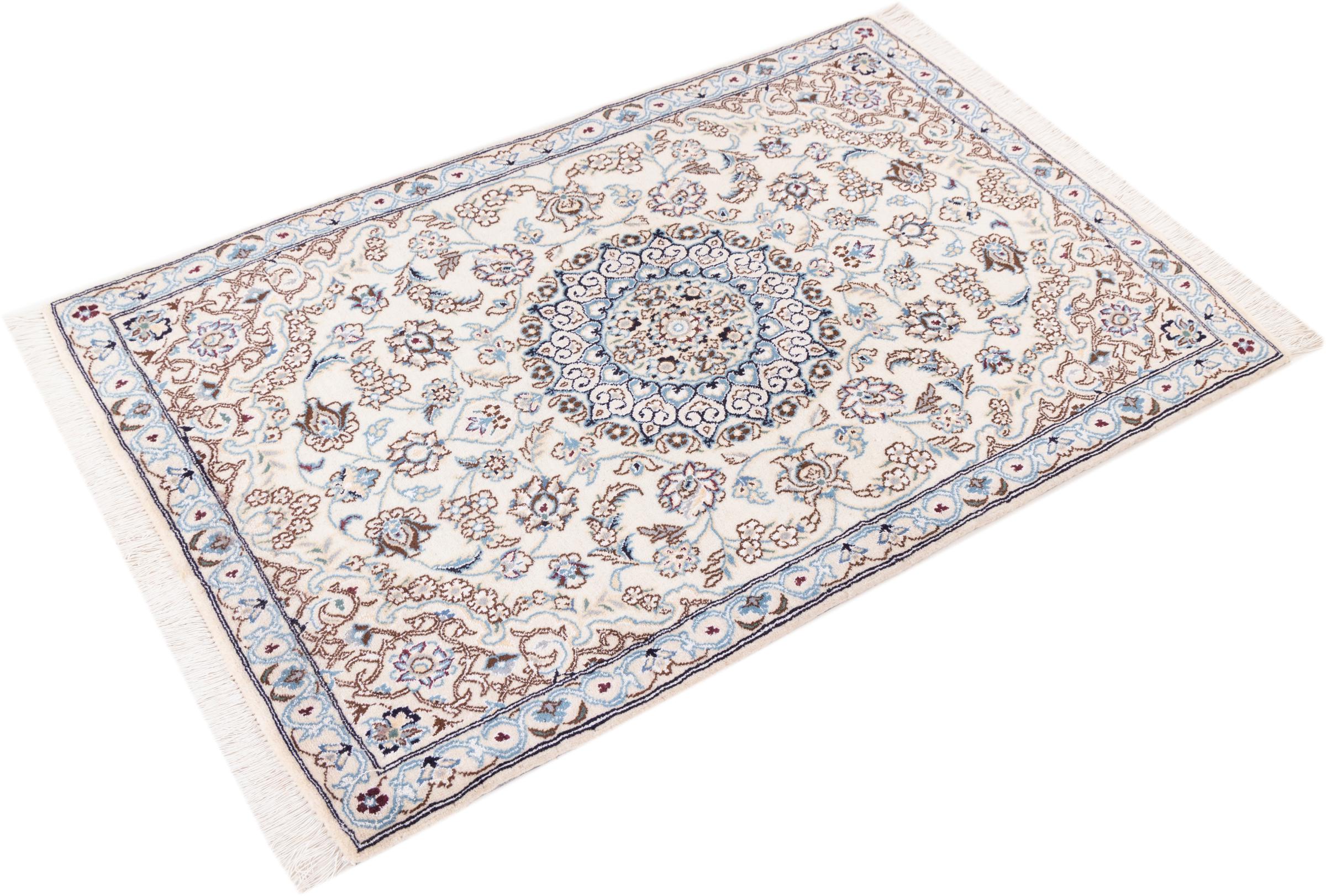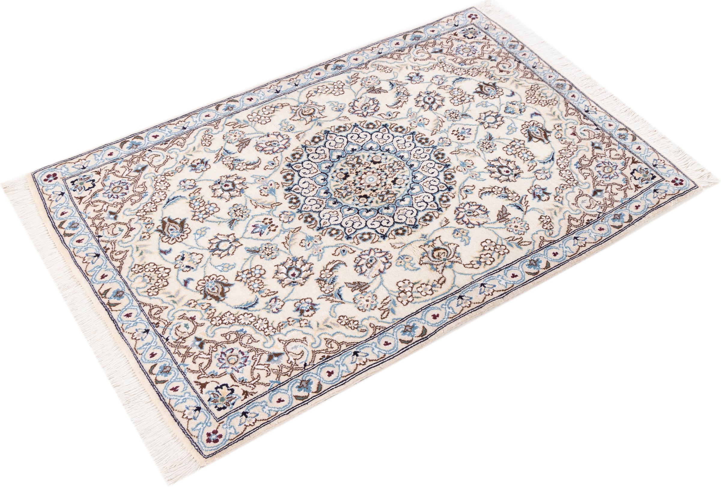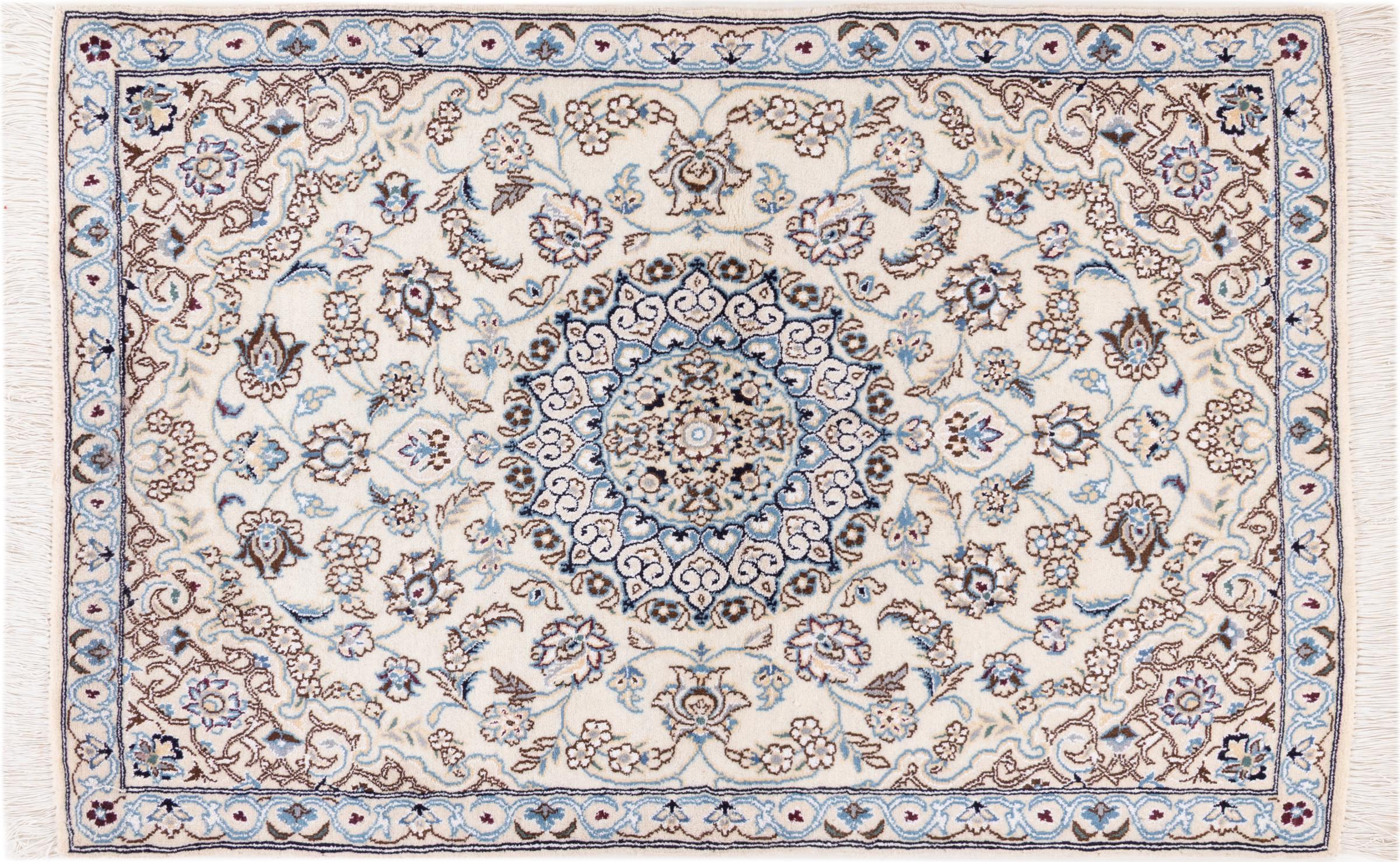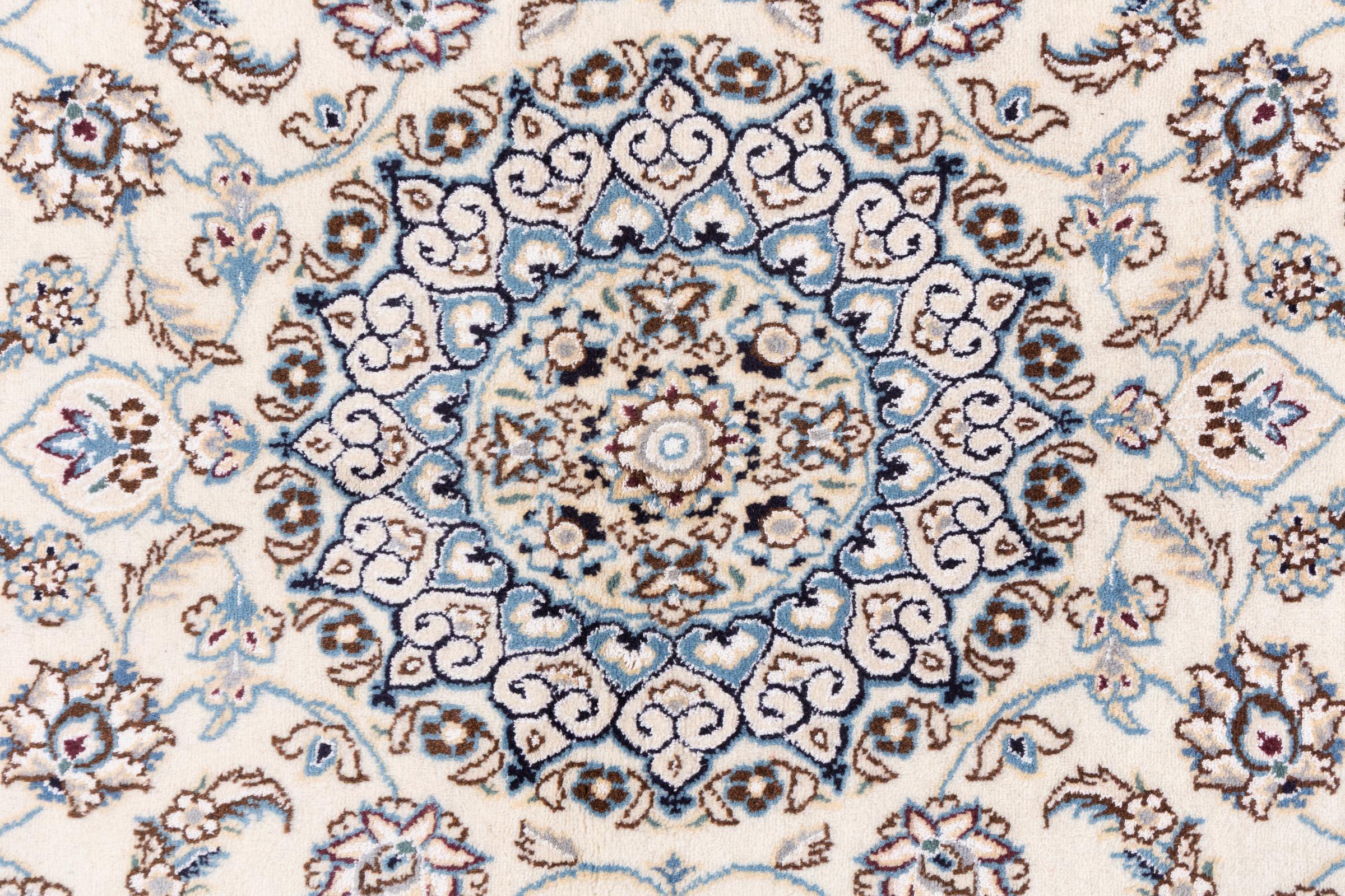 イランで最大の砂漠の1つの国境にあるナイン市のカーペットは、世界で最も有名なペルシャ絨毯の1つです。 彼らの典型的なデザインは、花の装飾品、メダリオン、ベージュと赤または青の色と紛れもないものです。 4La、6La、9La、12Laという名前のおかげで、Nainカーペットの繊細さが一目でわかります。 「ラ」の数値が低いほど、ノット密度が高くなり、カーペットの繊度が高くなります。