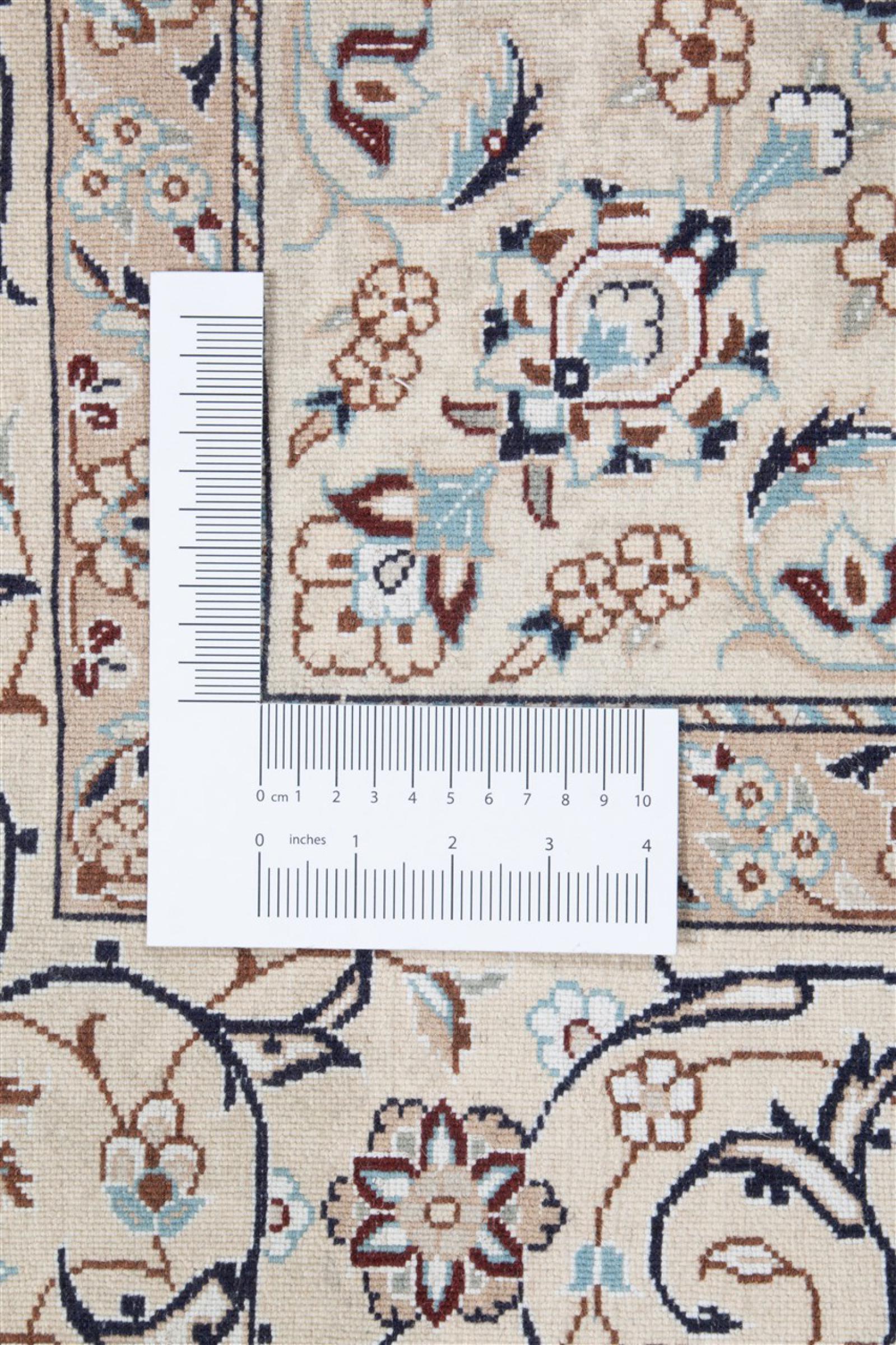 このナインのカーペットは 9La に分類されます。 優れた品質、曲線パターンを備えた美しいオリエンタルなデザインは、すべてのバイヤーを喜ばせます。 このペルシャ絨毯は、ダシュテ・カヴィル砂漠の西端にあるナイン市で高品質のウールと天然シルクを使って手織りされました。 9La Nain は 12La よりもかなり細かく、すでに美しいディテールを示しています。