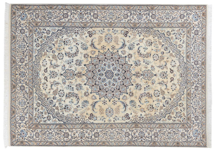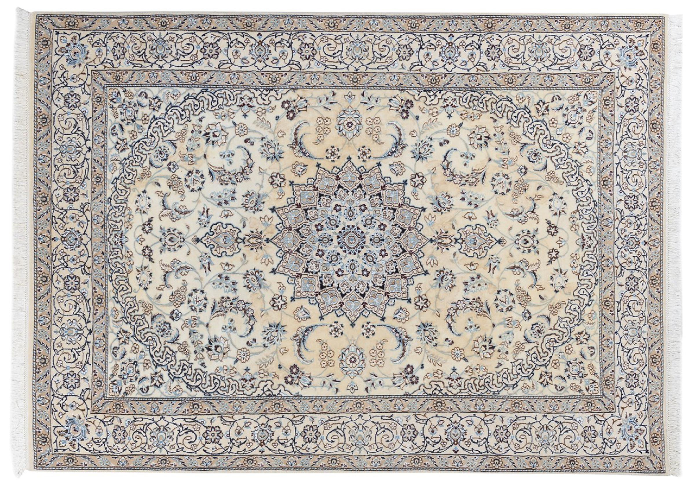 イランで最大の砂漠の1つの国境にあるナイン市のカーペットは、世界で最も有名なペルシャ絨毯の1つです。 彼らの典型的なデザインは、花の装飾品、メダリオン、ベージュと赤または青の色と紛れもないものです。 4La、6La、9La、12Laという名前のおかげで、Nainカーペットの繊細さが一目でわかります。 「ラ」の数値が低いほど、ノット密度が高くなり、カーペットの繊度が高くなります。