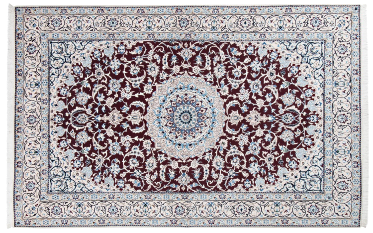 イランで最大の砂漠の1つの国境にあるナイン市のカーペットは、世界で最も有名なペルシャ絨毯の1つです。 彼らの典型的なデザインは、花の装飾品、メダリオン、ベージュと赤または青の色と紛れもないものです。 4La、6La、9La、12Laという名前のおかげで、Nainカーペットの繊細さが一目でわかります。 「ラ」の数値が低いほど、ノット密度が高くなり、カーペットの繊度が高くなります。