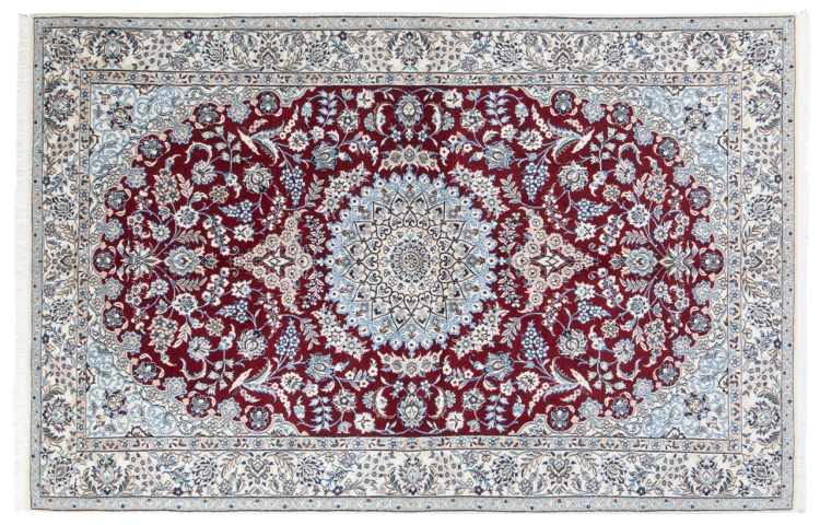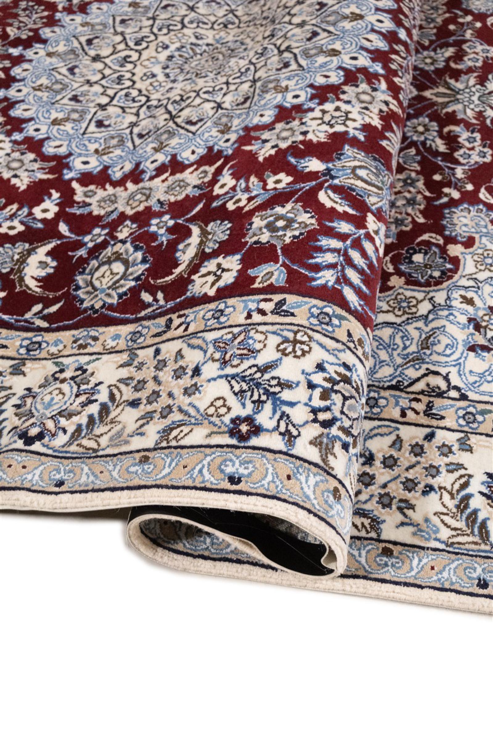 イランで最大の砂漠の1つの国境にあるナイン市のカーペットは、世界で最も有名なペルシャ絨毯の1つです。 彼らの典型的なデザインは、花の装飾品、メダリオン、ベージュと赤または青の色と紛れもないものです。 4La、6La、9La、12Laという名前のおかげで、Nainカーペットの繊細さが一目でわかります。 「ラ」の数値が低いほど、ノット密度が高くなり、カーペットの繊度が高くなります。