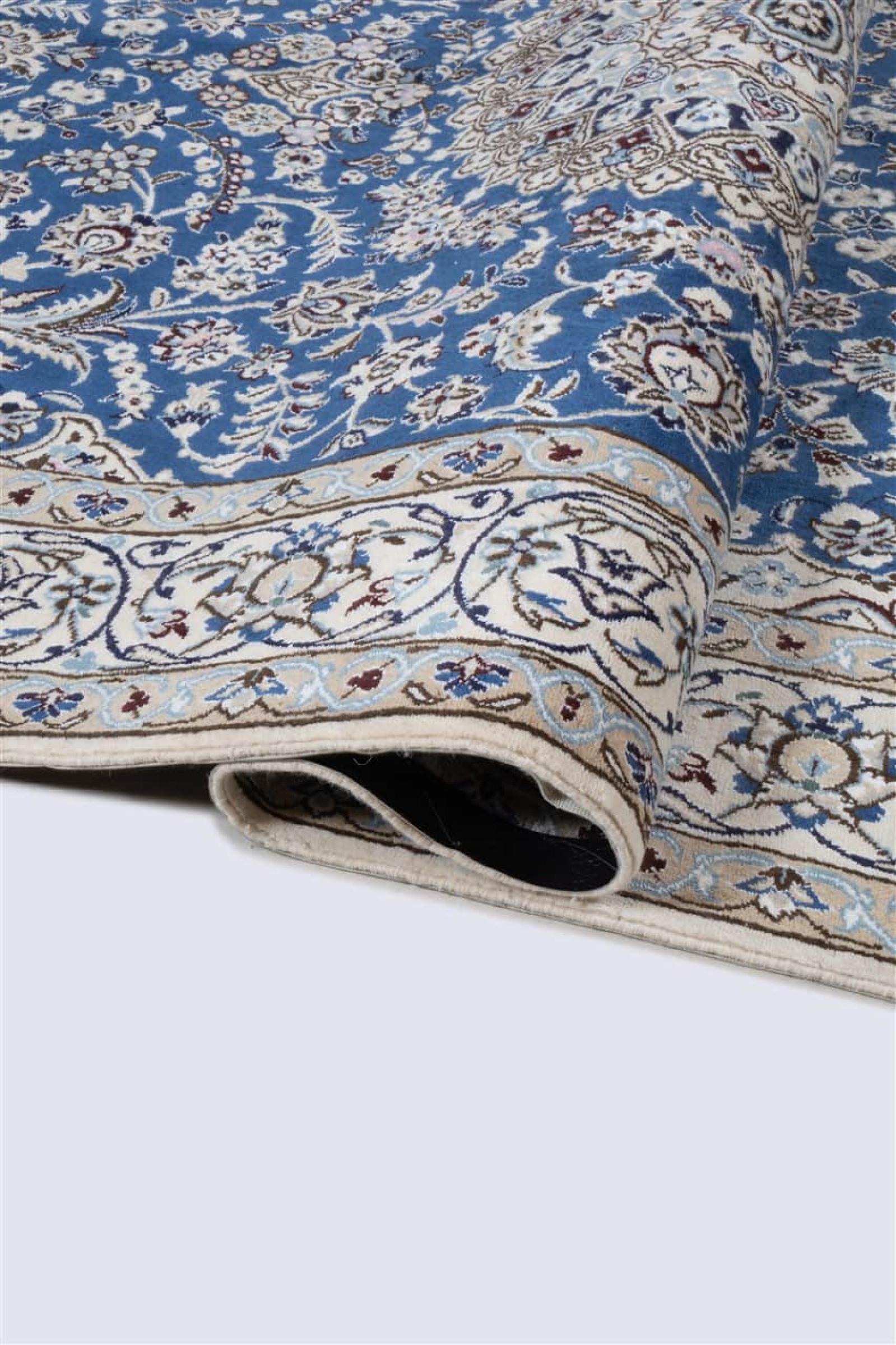 イランで最大の砂漠の1つの国境にあるナイン市のカーペットは、世界で最も有名なペルシャ絨毯の1つです。 彼らの典型的なデザインは、花の装飾品、メダリオン、ベージュと赤または青の色と紛れもないものです。 4La、6La、9La、12Laという名前のおかげで、Nainカーペットの繊細さが一目でわかります。 「ラ」の数値が低いほど、ノット密度が高くなり、カーペットの繊度が高くなります。