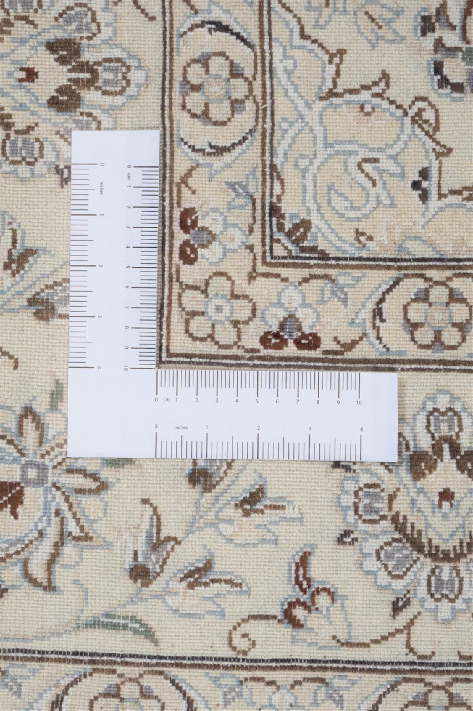このナインのカーペットは 9La に分類されます。 優れた品質、曲線パターンを備えた美しいオリエンタルなデザインは、すべてのバイヤーを喜ばせます。 このペルシャ絨毯は、ダシュテ・カヴィル砂漠の西端にあるナイン市で高品質のウールと天然シルクを使って手織りされました。 9La Nain は 12La よりもかなり細かく、すでに美しいディテールを示しています。