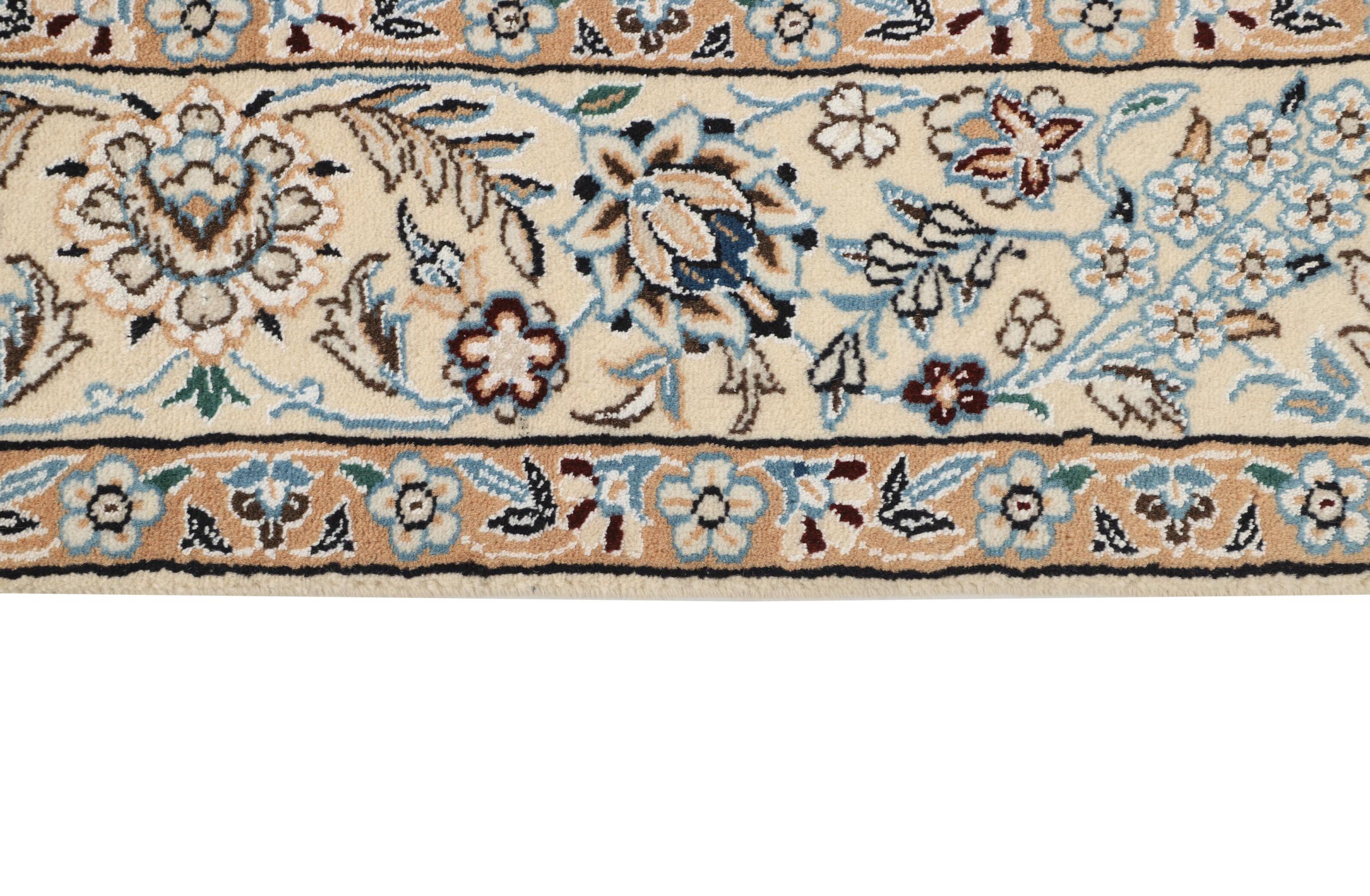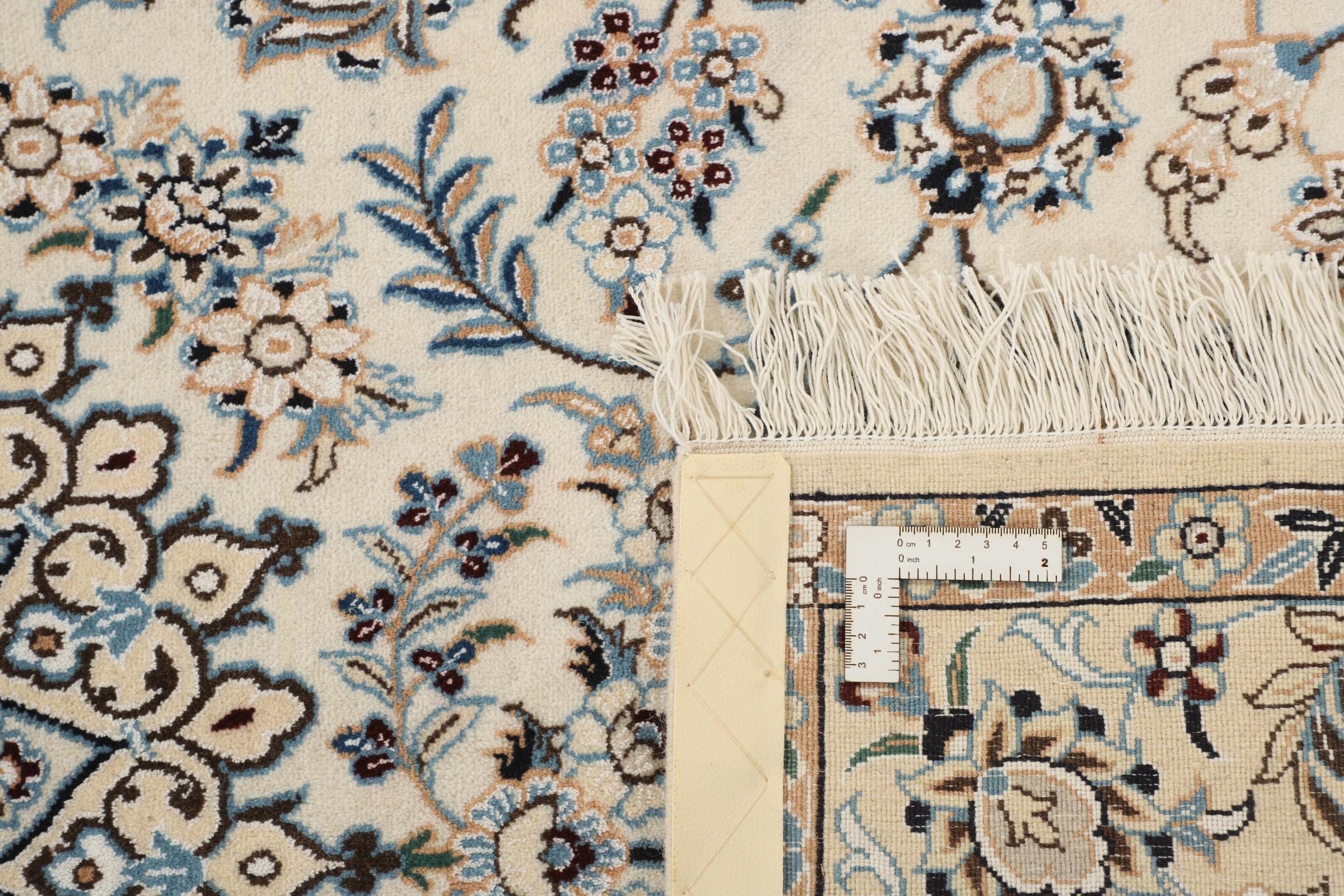 このナインのカーペットは 9La に分類されます。 優れた品質、曲線パターンを備えた美しいオリエンタルなデザインは、すべてのバイヤーを喜ばせます。 このペルシャ絨毯は、ダシュテ・カヴィル砂漠の西端にあるナイン市で高品質のウールと天然シルクを使って手織りされました。 9La Nain は 12La よりもかなり細かく、すでに美しいディテールを示しています。