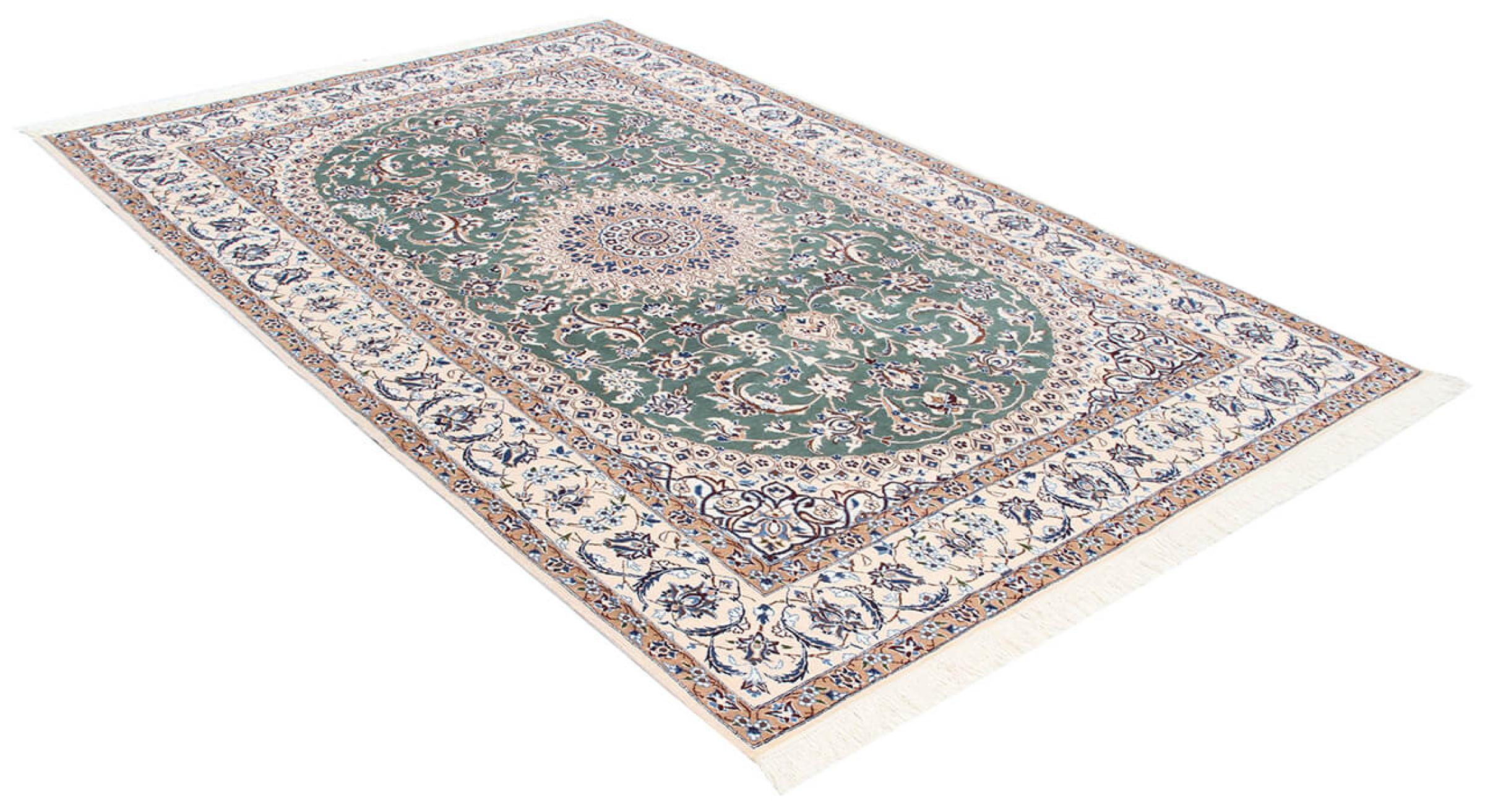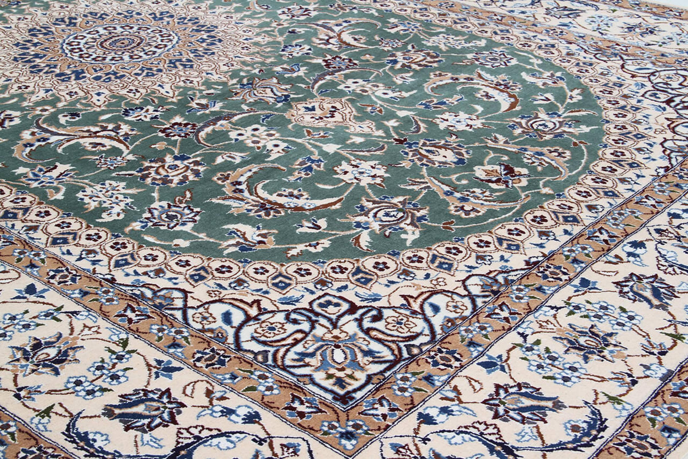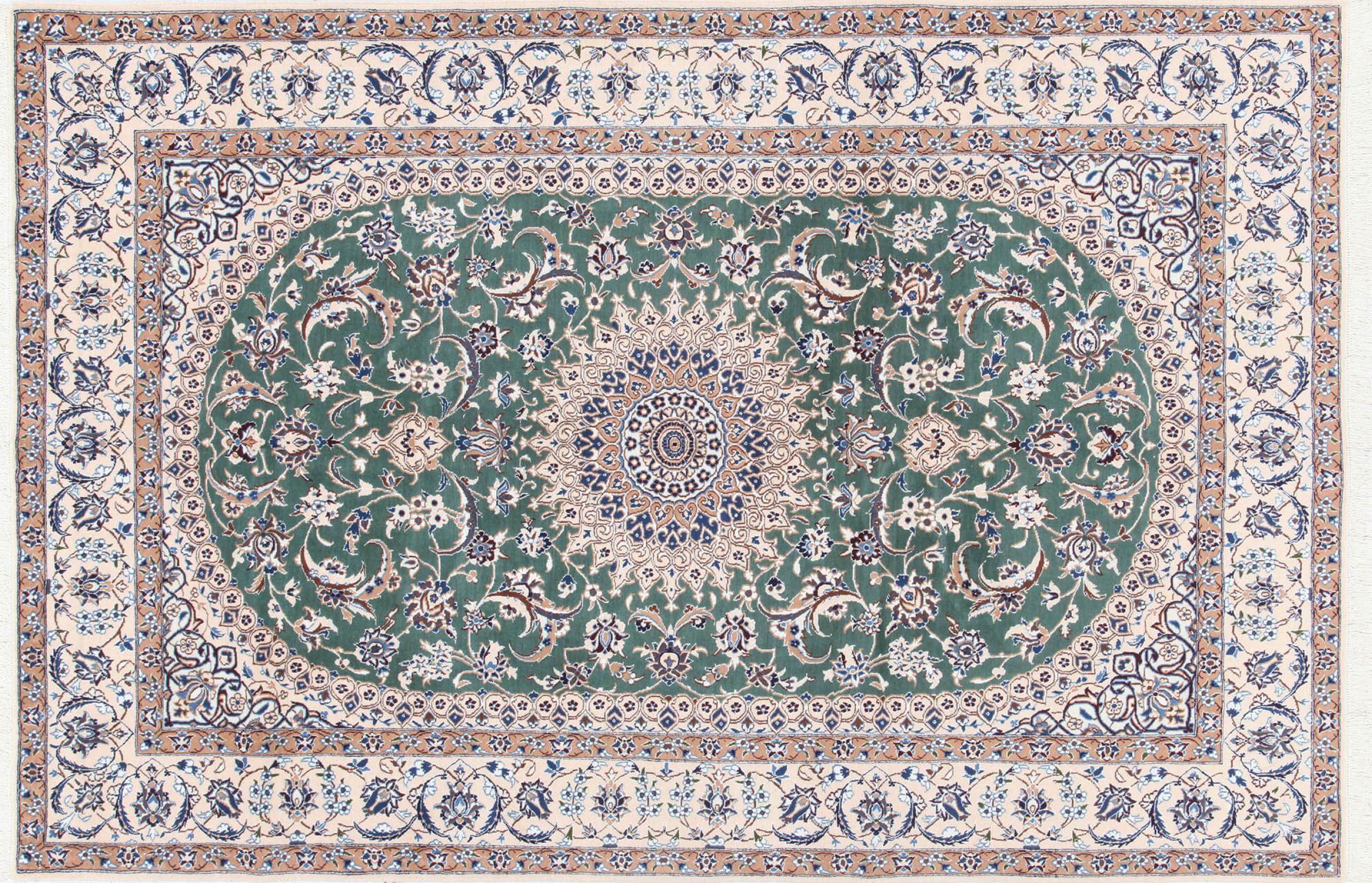 イランで最大の砂漠の1つの国境にあるナイン市のカーペットは、世界で最も有名なペルシャ絨毯の1つです。 彼らの典型的なデザインは、花の装飾品、メダリオン、ベージュと赤または青の色と紛れもないものです。 4La、6La、9La、12Laという名前のおかげで、Nainカーペットの繊細さが一目でわかります。 「ラ」の数値が低いほど、ノット密度が高くなり、カーペットの繊度が高くなります。