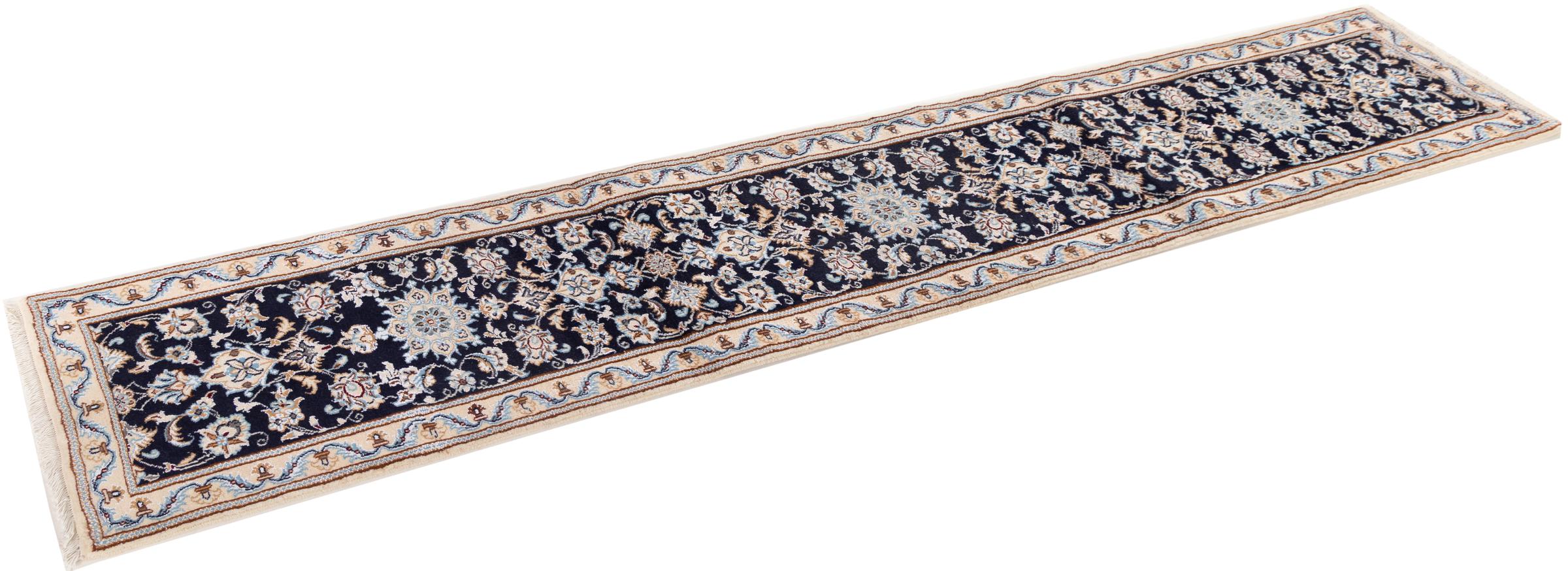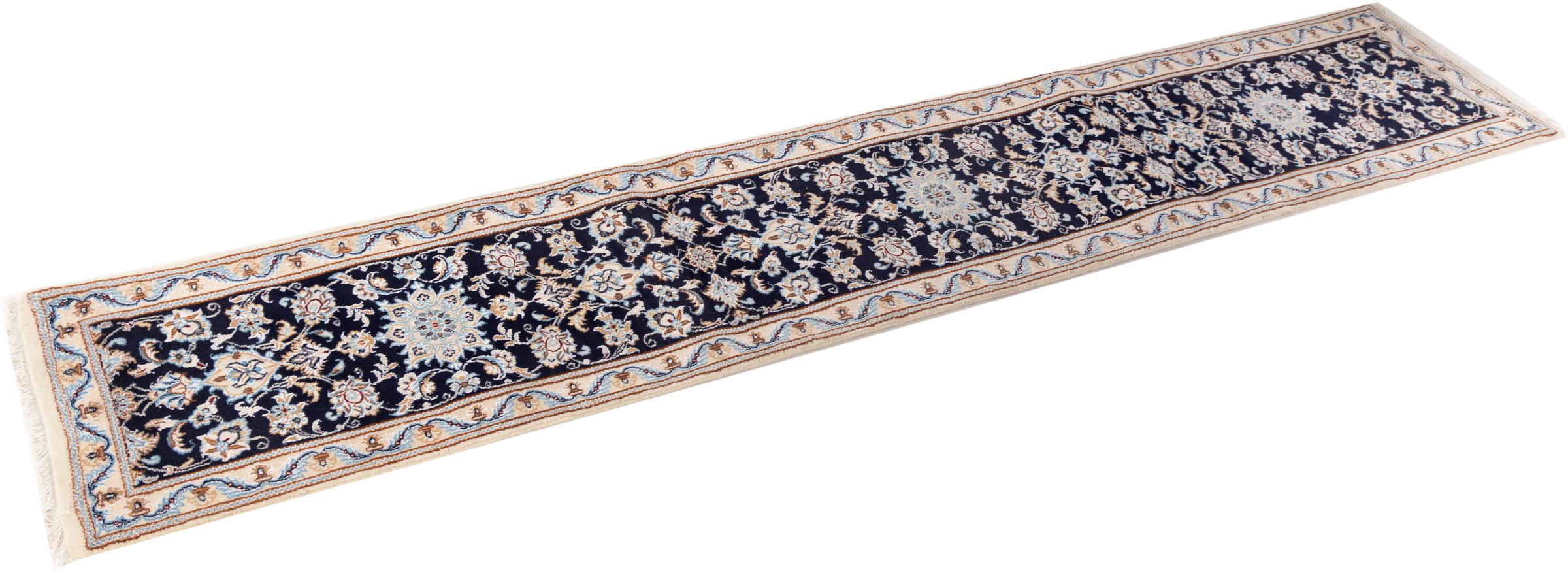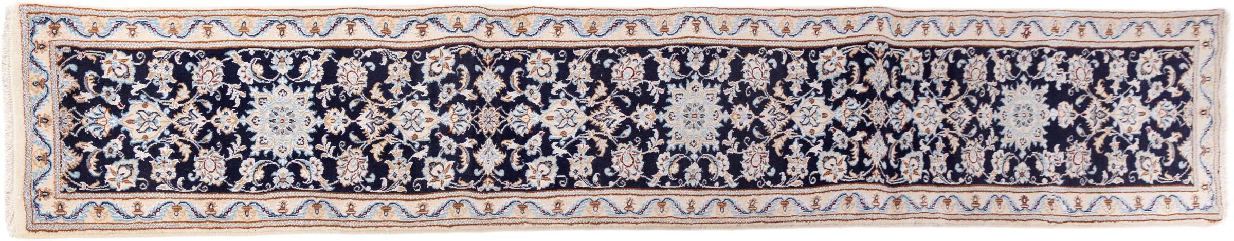 カーペットID 3069340021724 サイズ 293x50 cm 厚さ: およそ 10 mm 密度: 440 000 - 490 000 / m²平方メートル 生産: 手織り 織り目: シルクとウール 整径: コットン 原産地: イラン 年代: 新品 重さ: およそ 5 kg 在庫: ユニーク品 - 在庫 1 点のみ