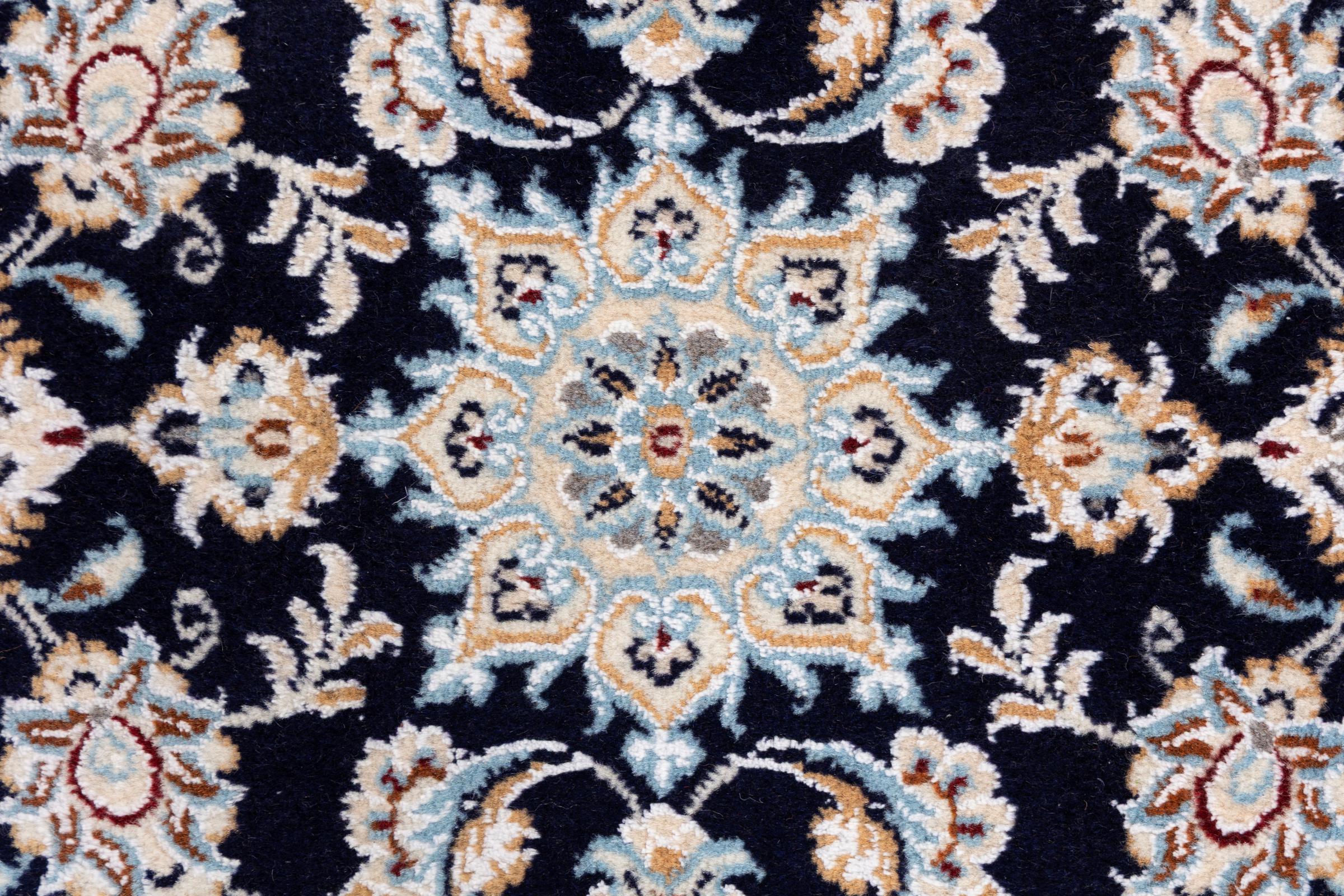 イランで最大の砂漠の1つの国境にあるナイン市のカーペットは、世界で最も有名なペルシャ絨毯の1つです。 彼らの典型的なデザインは、花の装飾品、メダリオン、ベージュと赤または青の色と紛れもないものです。 4La、6La、9La、12Laという名前のおかげで、Nainカーペットの繊細さが一目でわかります。 「ラ」の数値が低いほど、ノット密度が高くなり、カーペットの繊度が高くなります。
