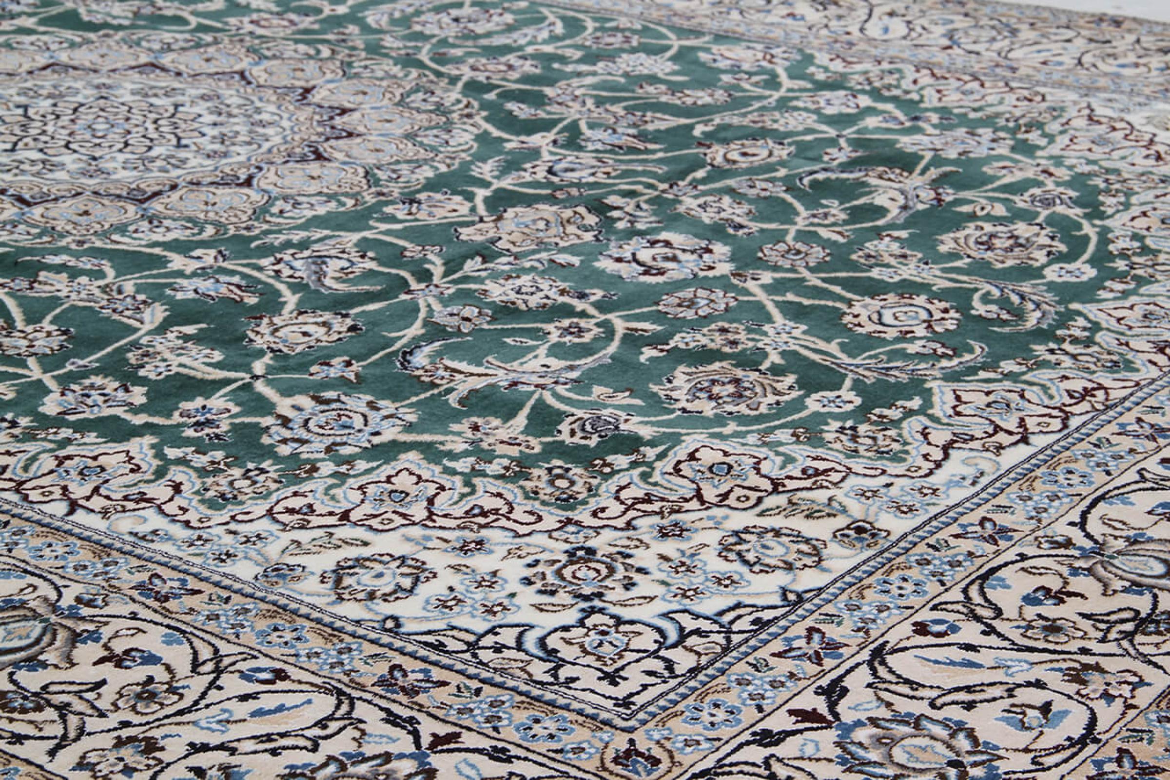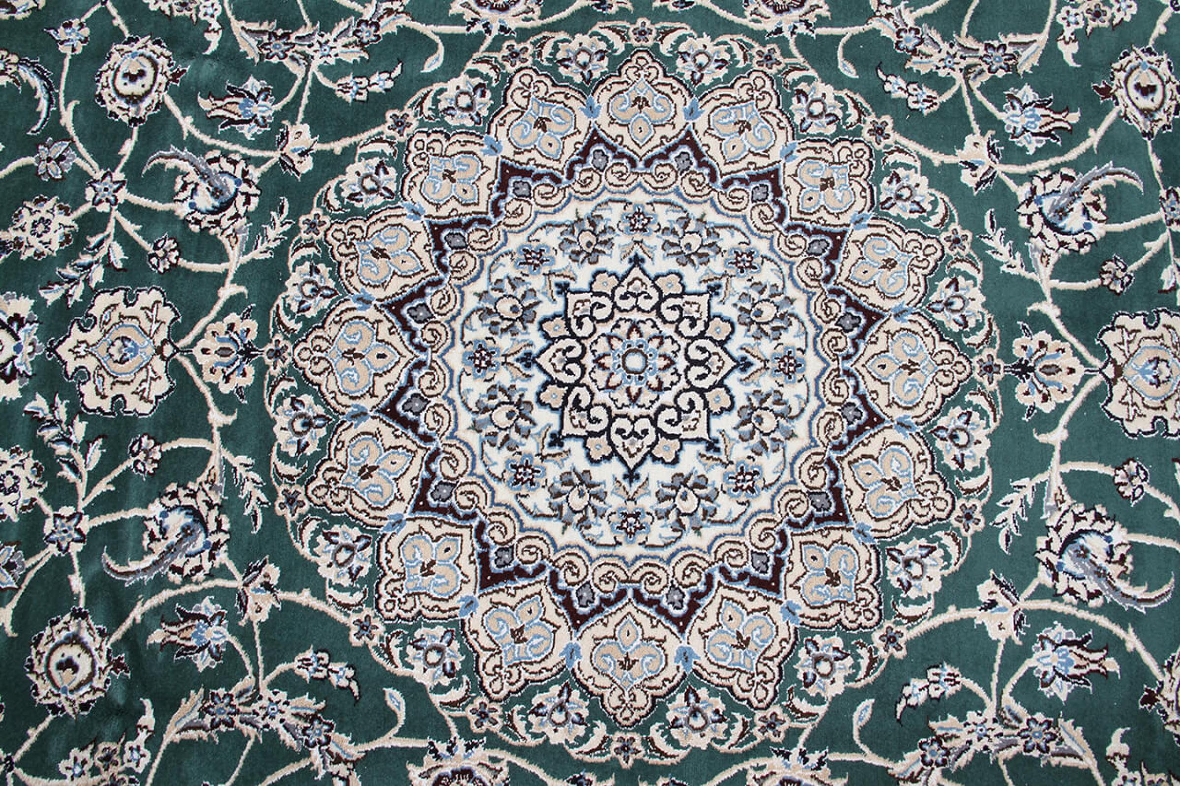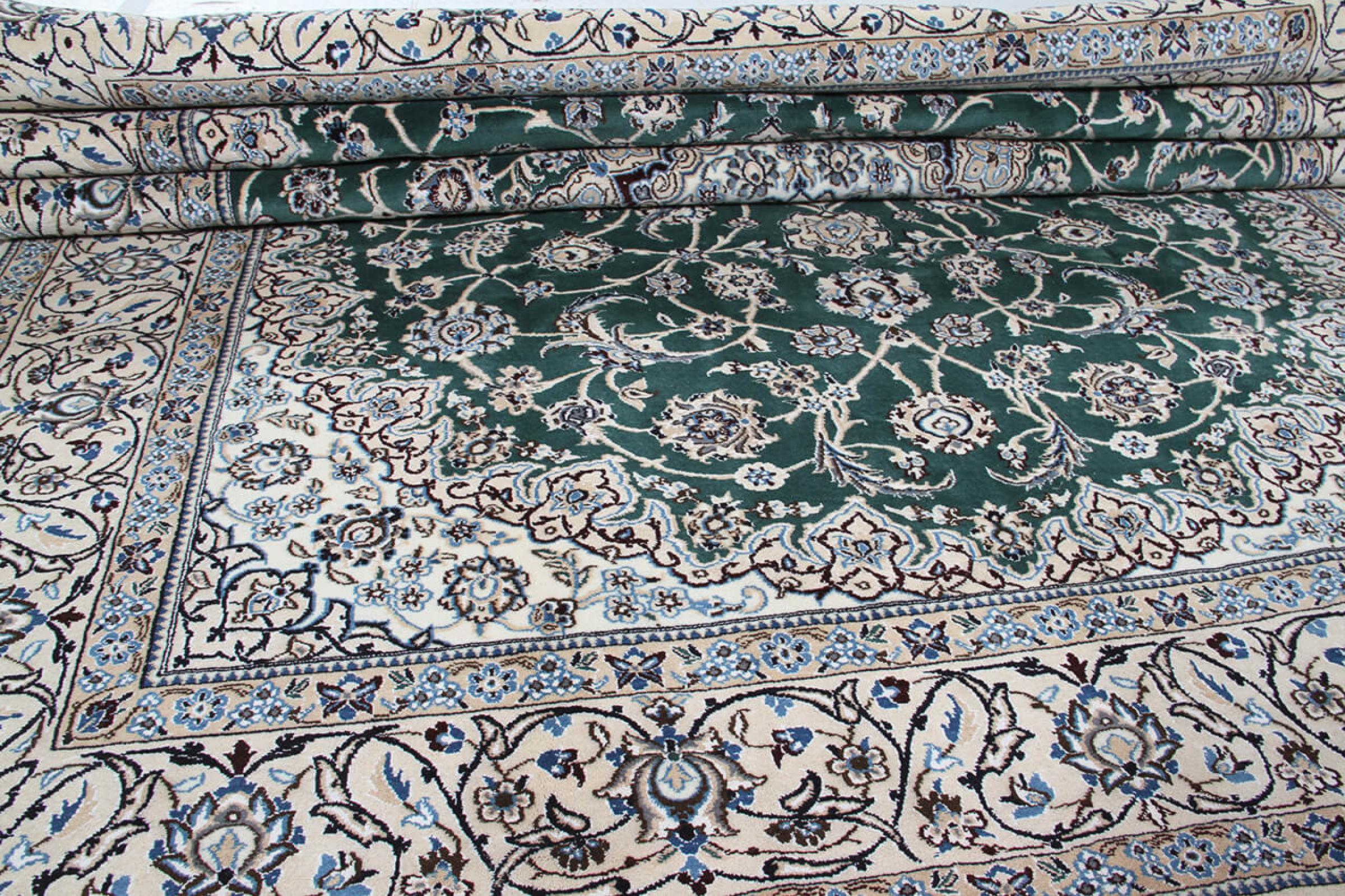 イランで最大の砂漠の1つの国境にあるナイン市のカーペットは、世界で最も有名なペルシャ絨毯の1つです。 彼らの典型的なデザインは、花の装飾品、メダリオン、ベージュと赤または青の色と紛れもないものです。 4La、6La、9La、12Laという名前のおかげで、Nainカーペットの繊細さが一目でわかります。 「ラ」の数値が低いほど、ノット密度が高くなり、カーペットの繊度が高くなります。