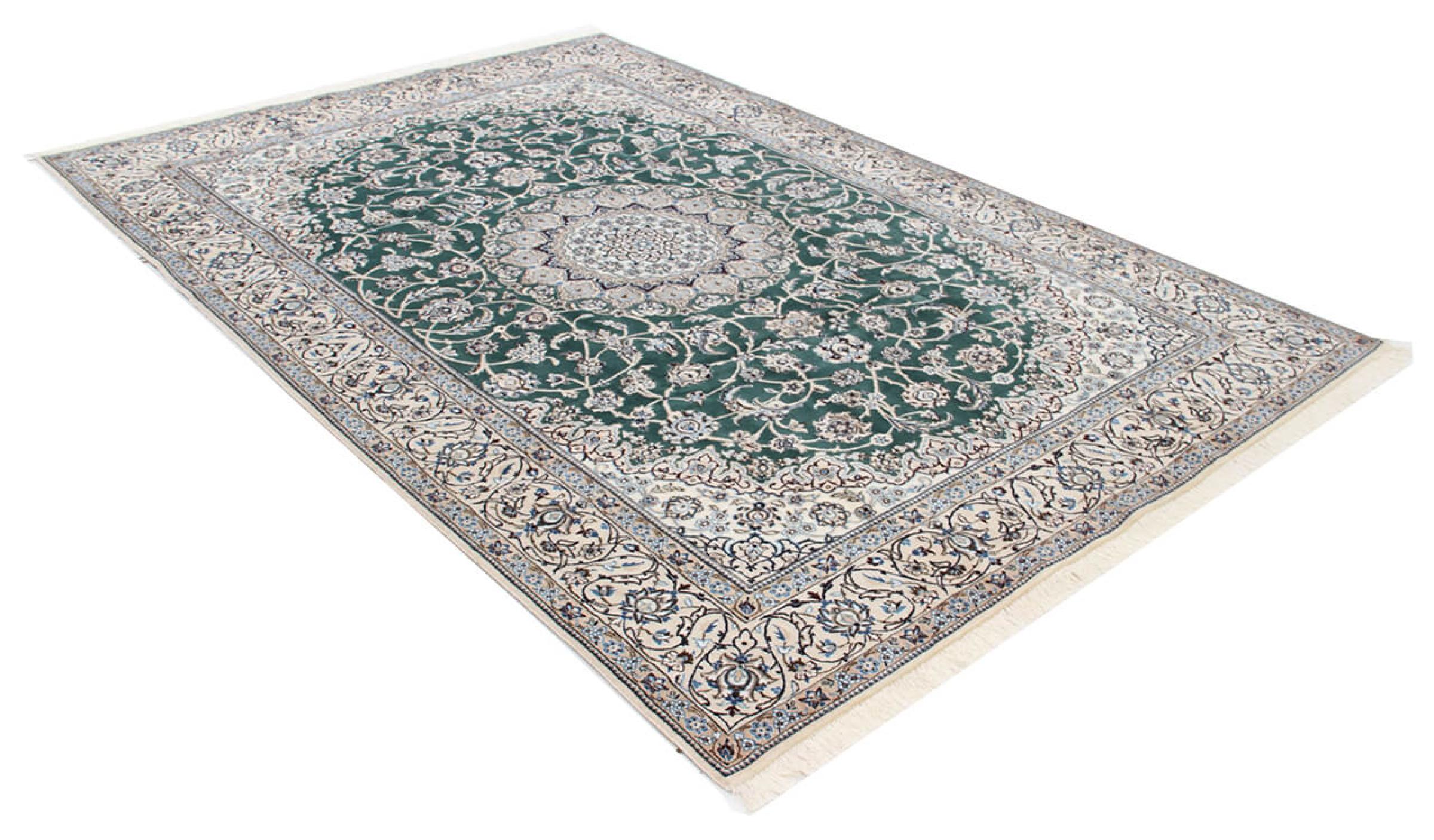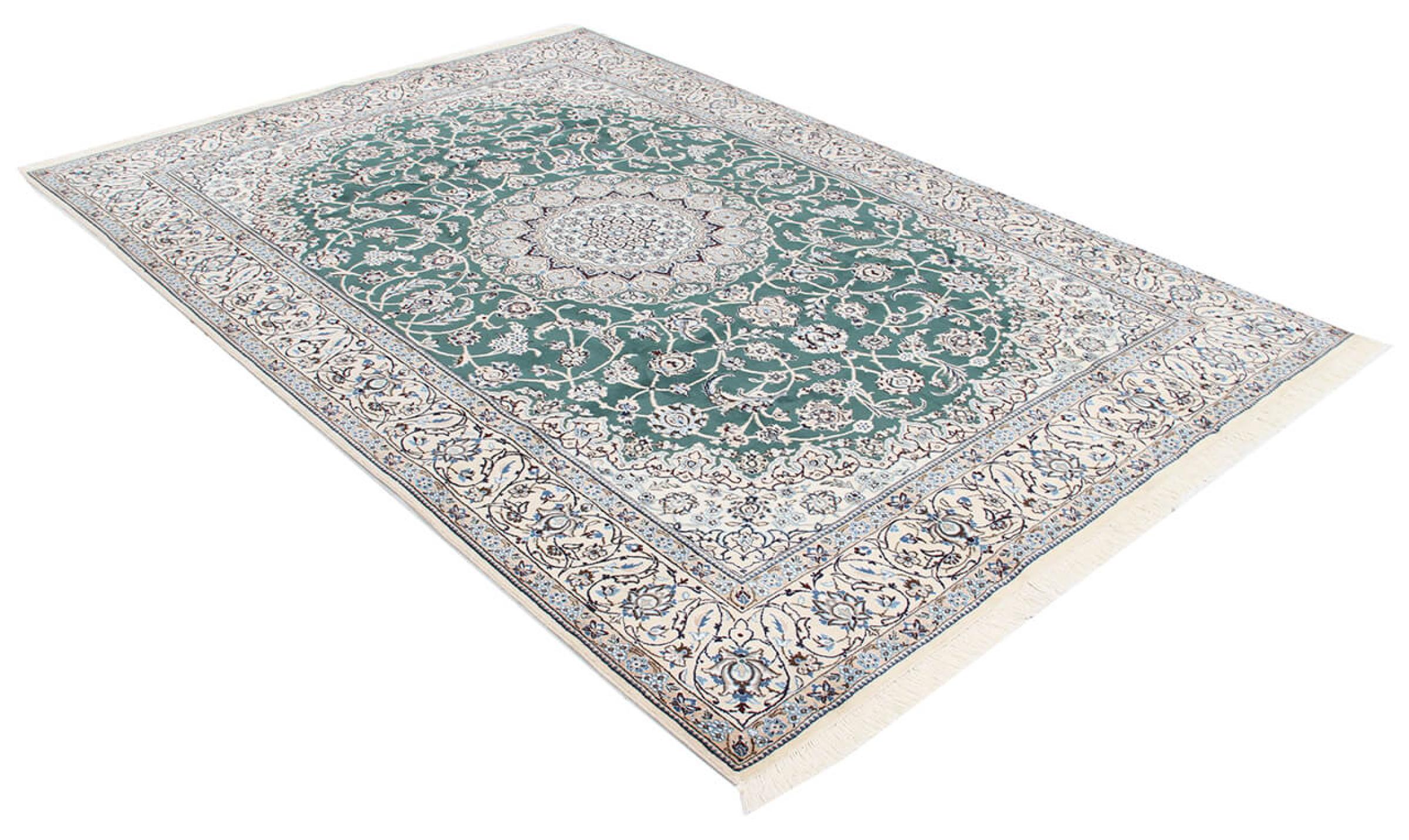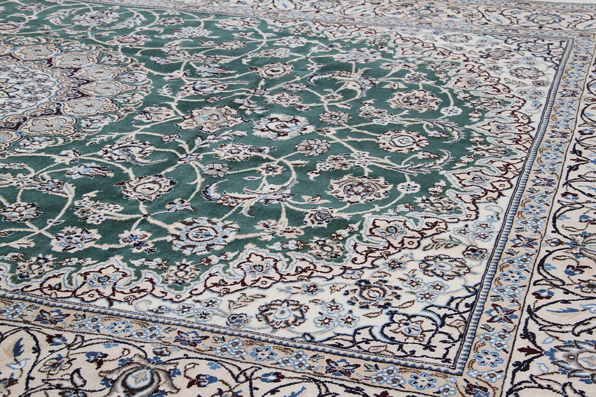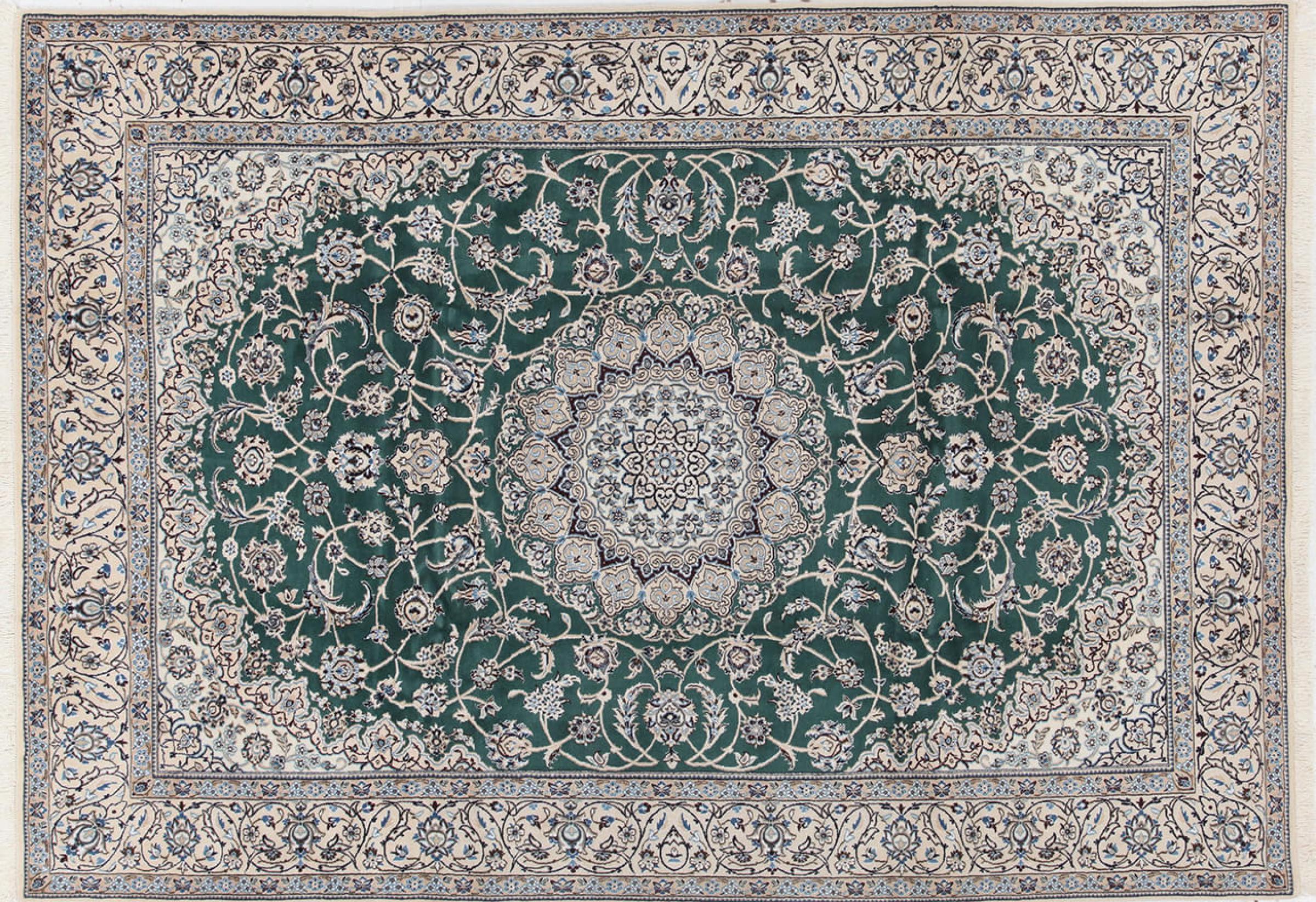 イランで最大の砂漠の1つの国境にあるナイン市のカーペットは、世界で最も有名なペルシャ絨毯の1つです。 彼らの典型的なデザインは、花の装飾品、メダリオン、ベージュと赤または青の色と紛れもないものです。 4La、6La、9La、12Laという名前のおかげで、Nainカーペットの繊細さが一目でわかります。 「ラ」の数値が低いほど、ノット密度が高くなり、カーペットの繊度が高くなります。