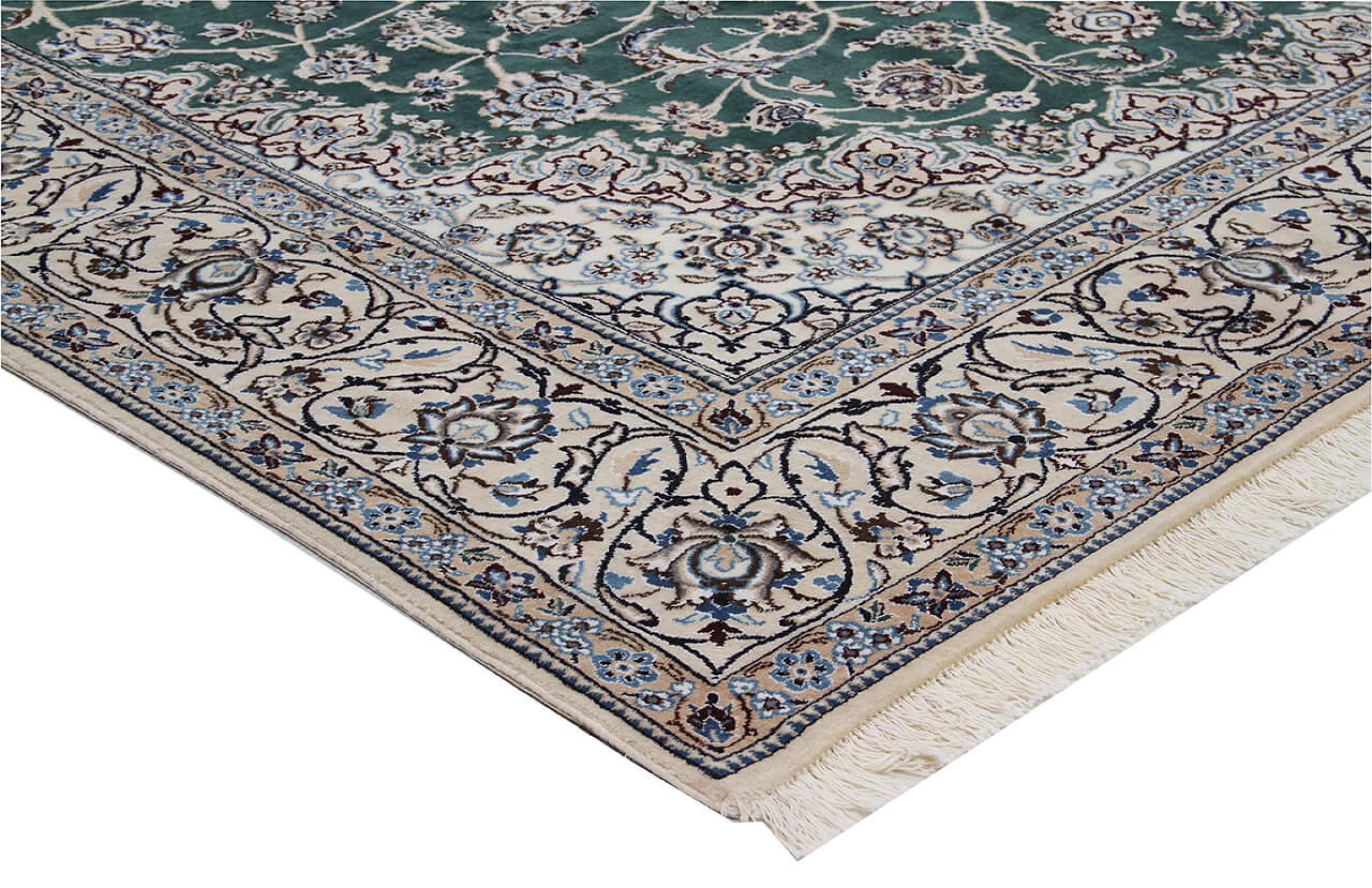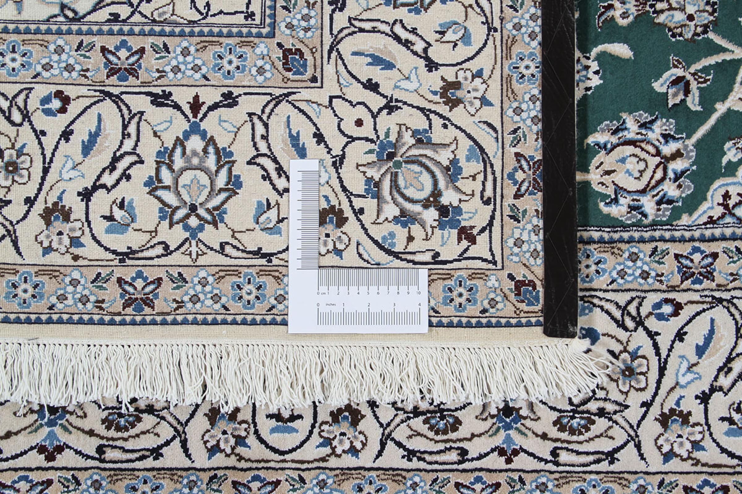このナインのカーペットは 9La に分類されます。 優れた品質、曲線パターンを備えた美しいオリエンタルなデザインは、すべてのバイヤーを喜ばせます。 このペルシャ絨毯は、ダシュテ・カヴィル砂漠の西端にあるナイン市で高品質のウールと天然シルクを使って手織りされました。 9La Nain は 12La よりもかなり細かく、すでに美しいディテールを示しています。