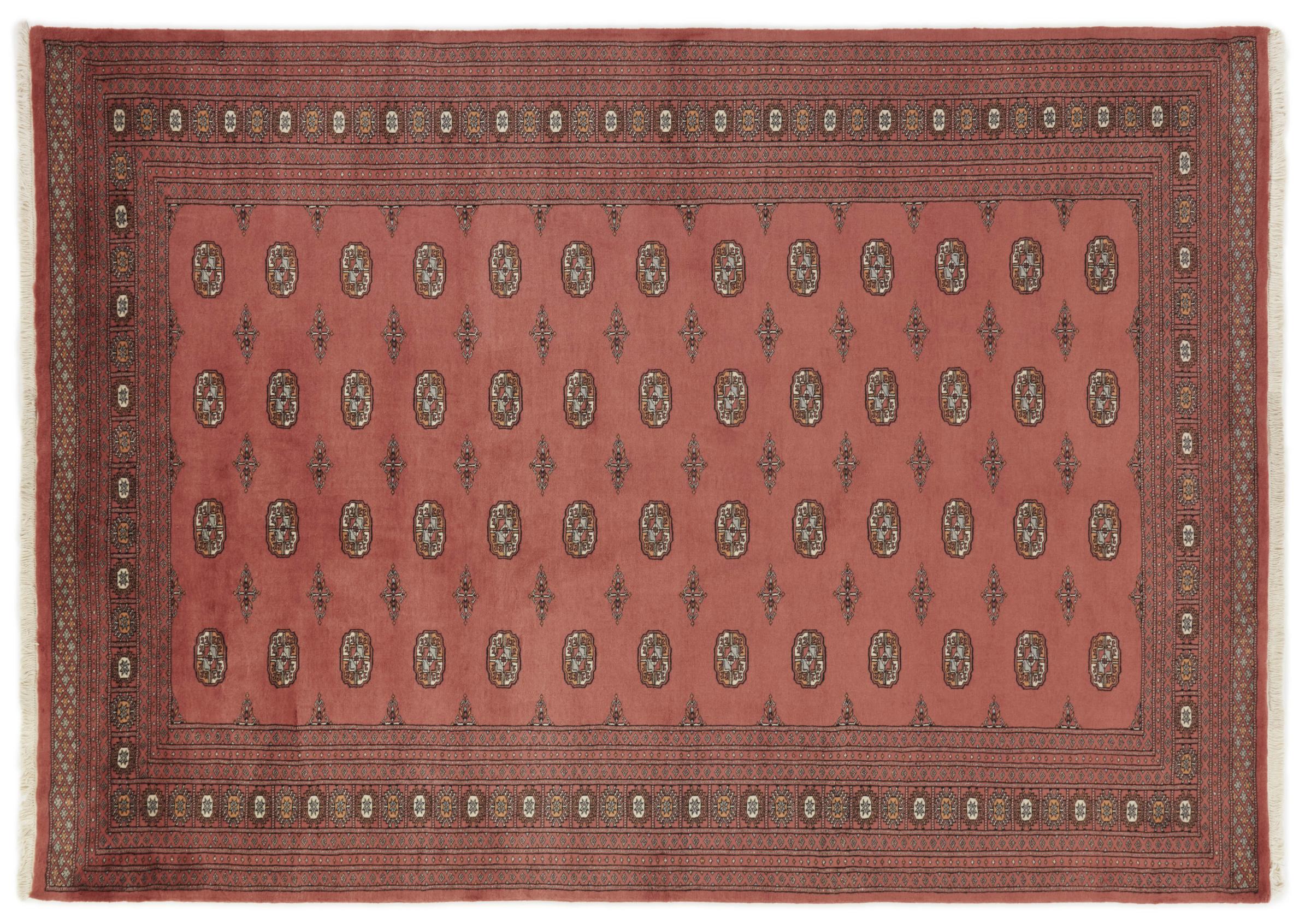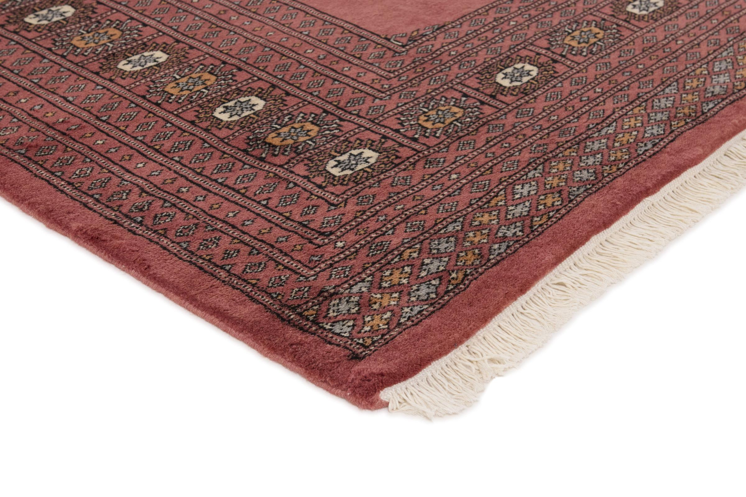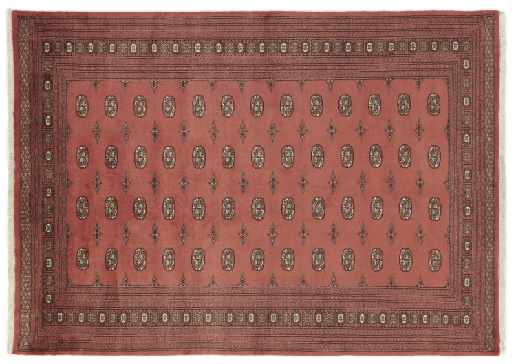 パキスタンのカーペット生産の大部分は、ラホールとカラチの都市とその周辺で行われています。当時の絨毯織り職人の多くは、インドとの戦争中にパキスタンに逃れて定住しました。今日では、特に手織りのパキスタンのブハラ絨毯が知られています。 アフガニスタンのオリエンタルカーペットと同様に、パキスタンのカーペットもダークカラーで、ほとんどが赤を基調としています。また、よく知られている象足柄(八角形を繰り返す柄)もパキスタンでは見られます。