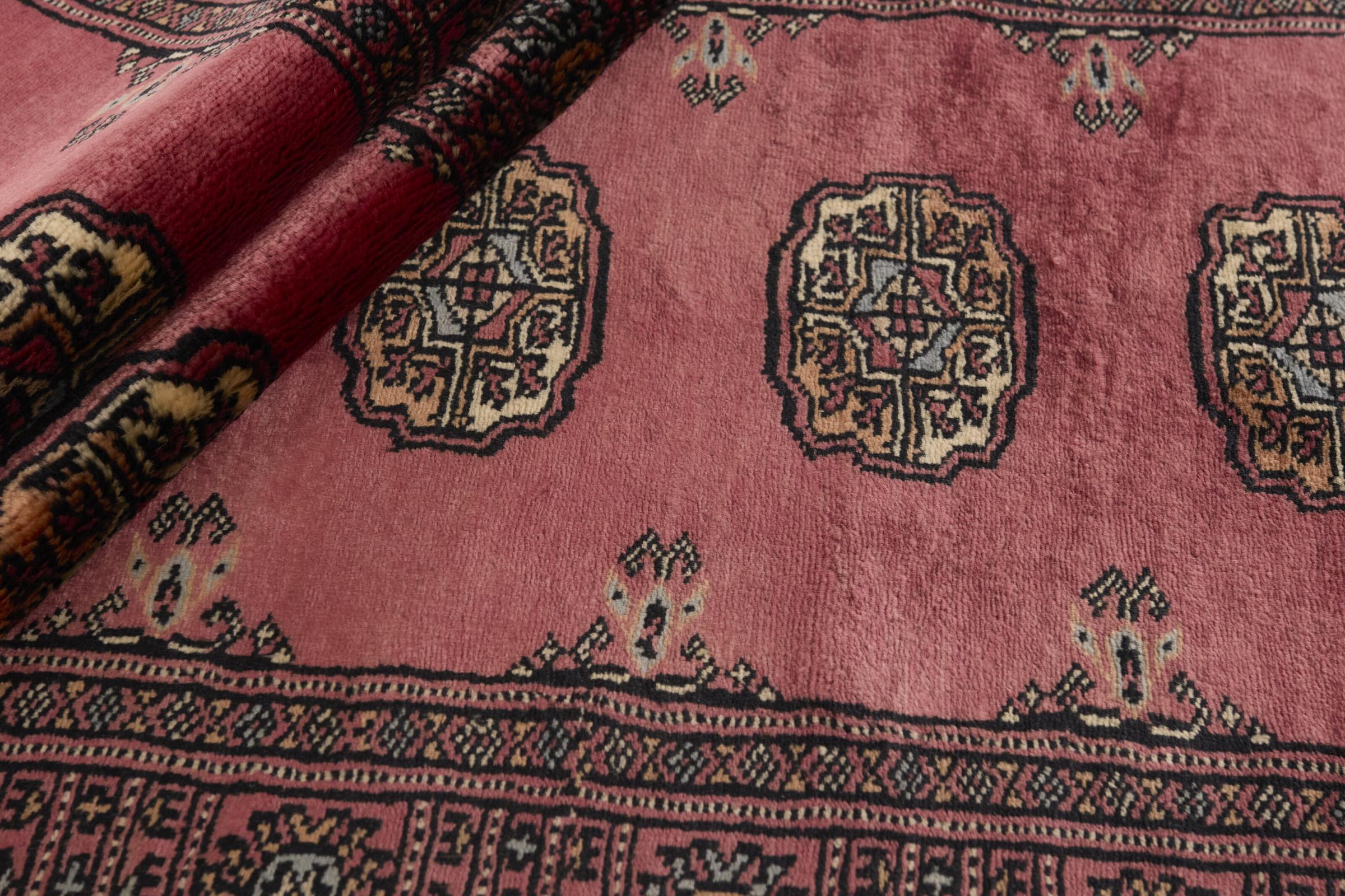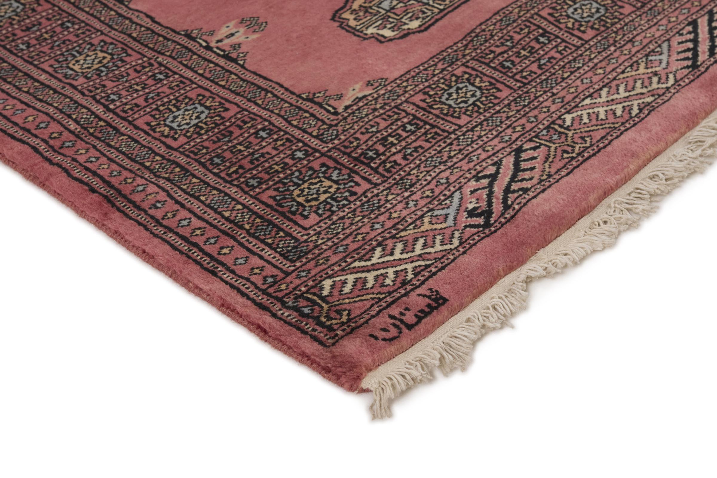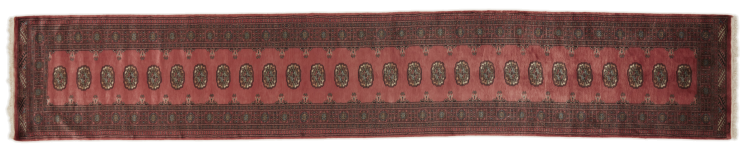 パキスタンのカーペット生産の大部分は、ラホールとカラチの都市とその周辺で行われています。当時の絨毯織り職人の多くは、インドとの戦争中にパキスタンに逃れて定住しました。今日では、特に手織りのパキスタンのブハラ絨毯が知られています。 アフガニスタンのオリエンタルカーペットと同様に、パキスタンのカーペットもダークカラーで、ほとんどが赤を基調としています。また、よく知られている象足柄(八角形を繰り返す柄)もパキスタンでは見られます。