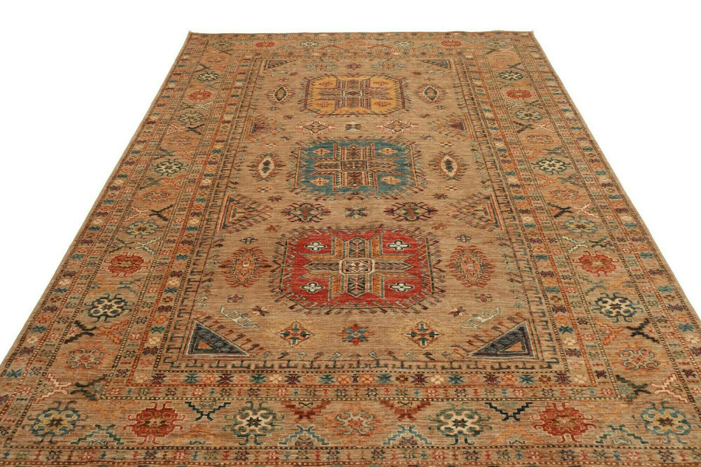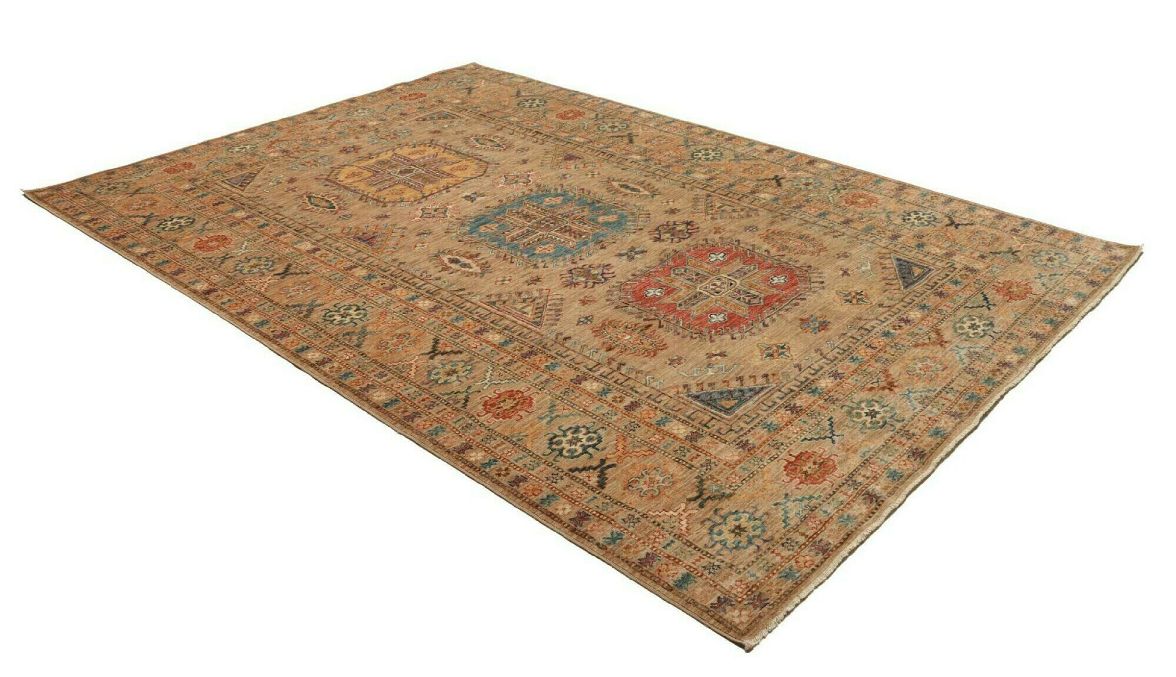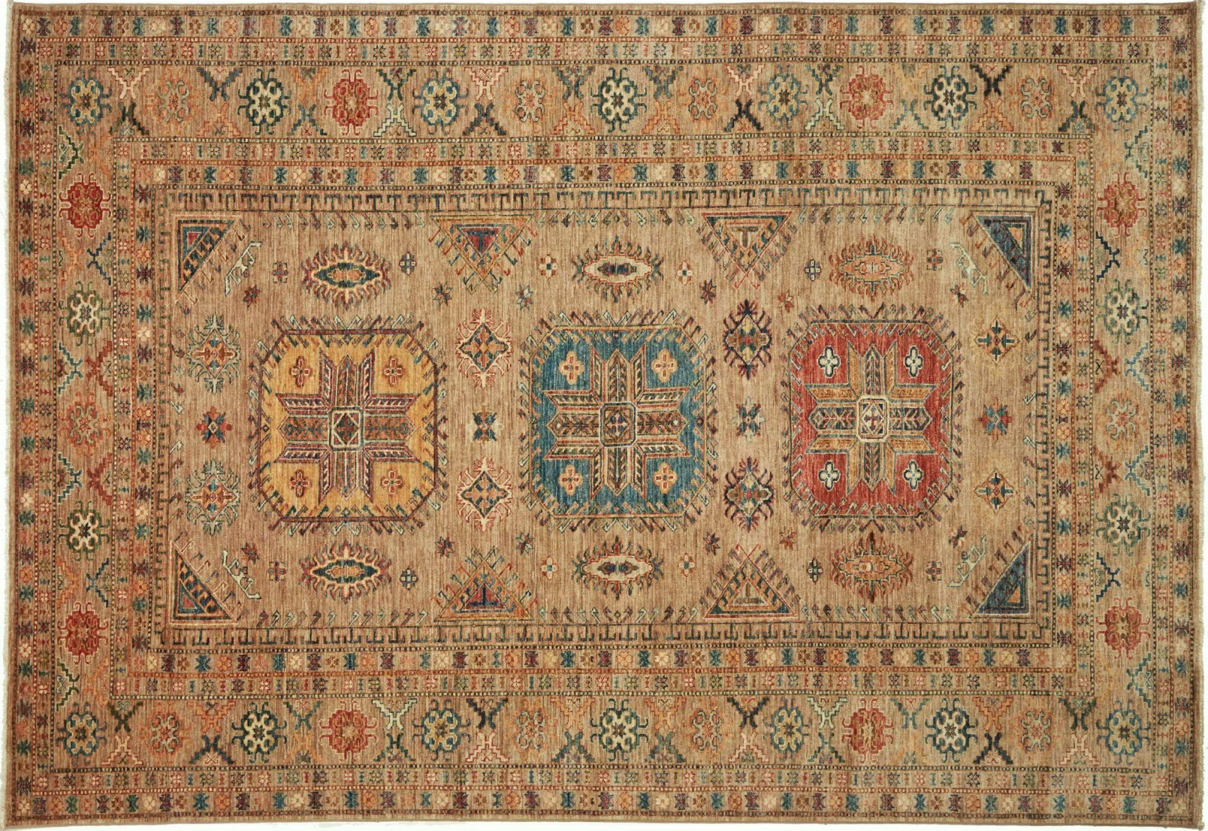 カザフスタンの敷物は、ユニークな幾何学模様、バランスの取れた色、卓越した職人技で知られる、耐久性に優れた鮮やかなウールの敷物です。 あなたの空間に魅力的で文化豊かな雰囲気を作り出します。 コーカサス原産で最も古い種類のカーペットの 1 つですが、現在では主にアフガニスタンとパキスタンのカザフ人によって作られています。 アンティークのカザフスタンの敷物はコレクターにとって非常に価値があります。