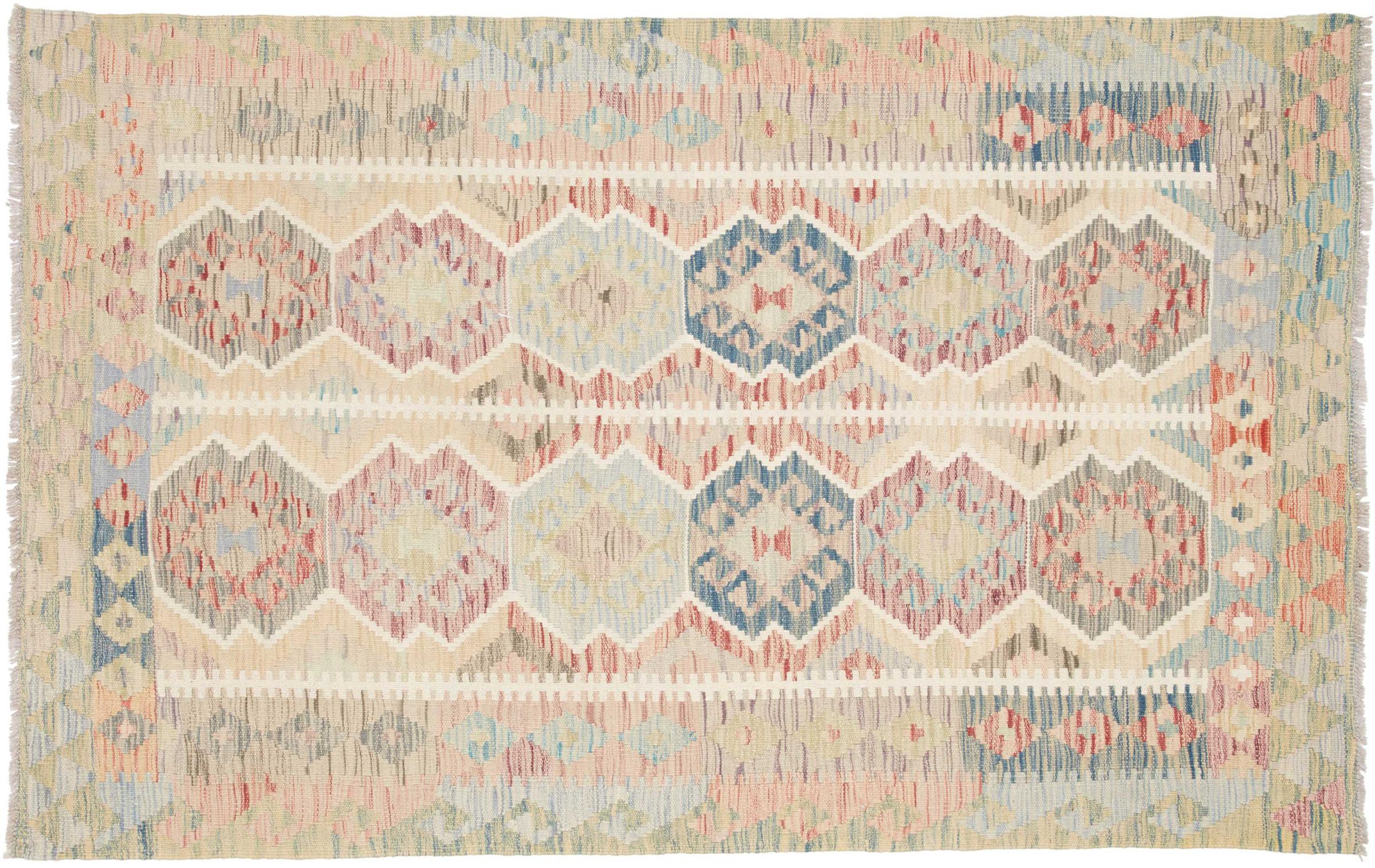 この手織りのキリム アフガンは、多面的な色と典型的なパターンのおかげで美しいです。 アフガニスタンで100%羊毛を使用して手織りされました。 間違いなく機械で作られたカーペットよりも丈夫で耐久性があります。 また、このキリムには独特の個性があります。 二度と見つからない、あなたとあなたの家のためのユニークな作品。