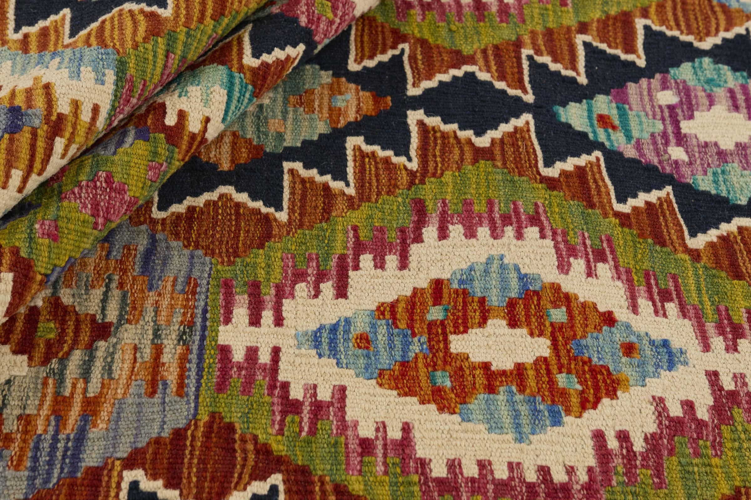この手織りのキリム アフガンは、多面的な色と典型的なパターンのおかげで美しいです。 アフガニスタンで100%羊毛を使用して手織りされました。 間違いなく機械で作られたカーペットよりも丈夫で耐久性があります。 また、このキリムには独特の個性があります。 二度と見つからない、あなたとあなたの家のためのユニークな作品。