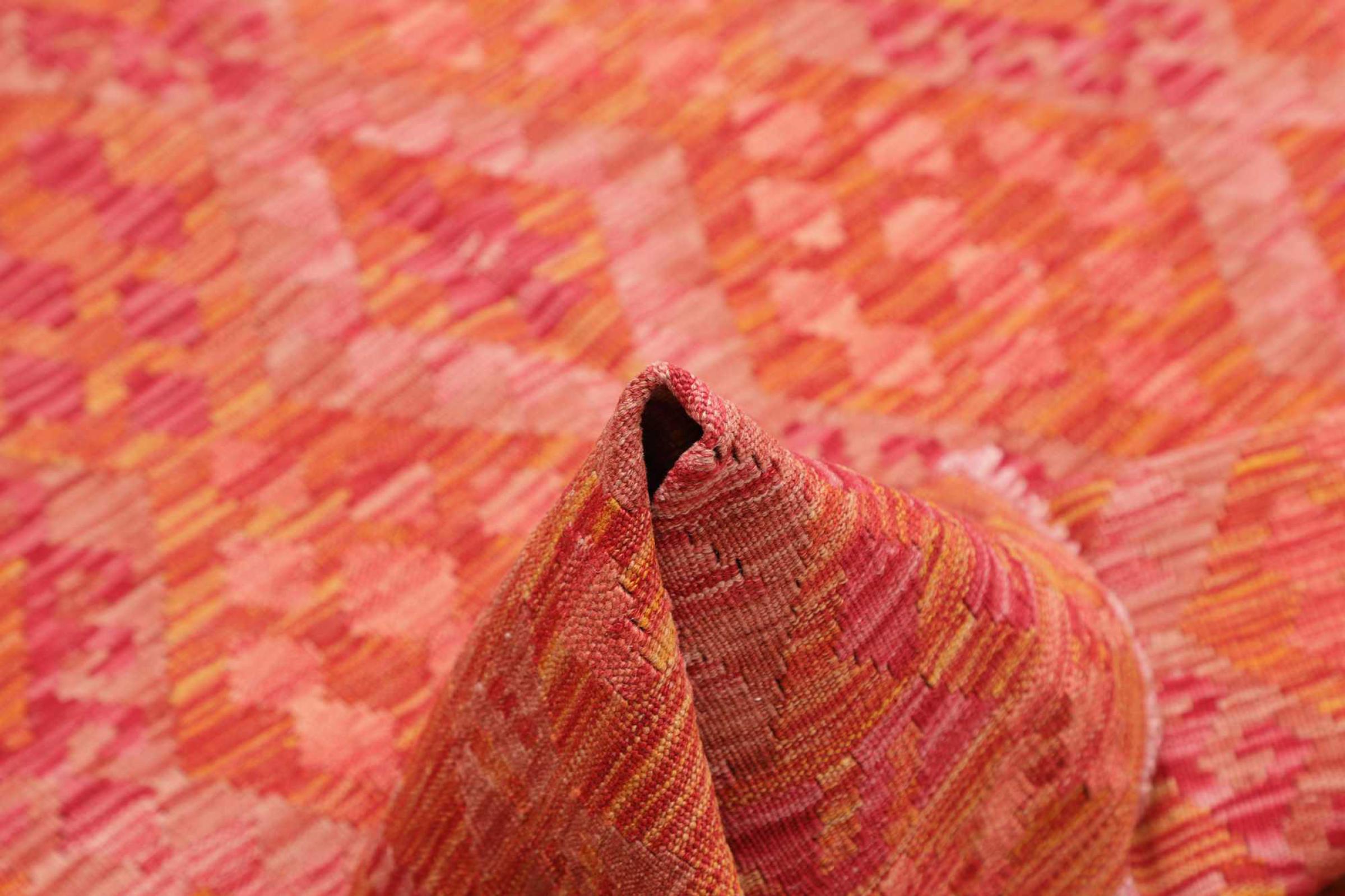この絨毯は、平織りとして織機で手作業で作られたものです。フラットウィーブとは、パイルのないカーペットを指す言葉です。その名の通り、この絨毯は織られていて、結び目はありません。これにより、表面が構造化されたフラットカーペットが得られる。平織りは、結び目のあるカーペットよりも柔らかくなく、通常は薄くなります。同時に、彼らは製造するためにはるかに複雑ではなく、通常は両側(表と裏)からレイアウトすることができます。彼らのパターンは通常、生地によって決定される幾何学的なものです。