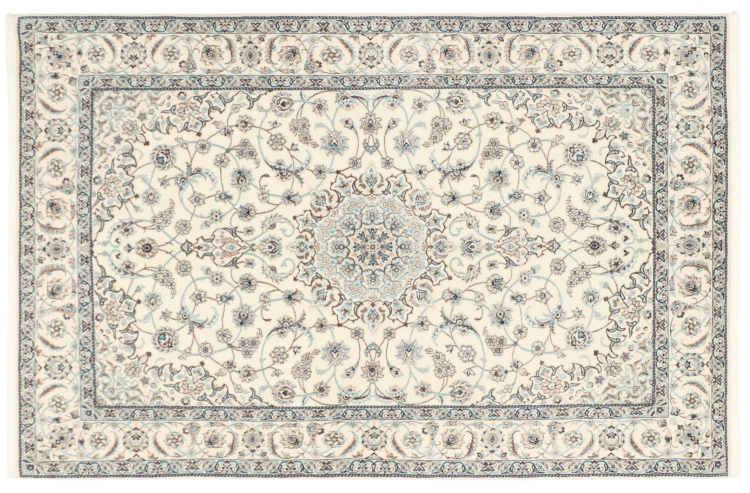 イランで最大の砂漠の1つの国境にあるナイン市のカーペットは、世界で最も有名なペルシャ絨毯の1つです。 彼らの典型的なデザインは、花の装飾品、メダリオン、ベージュと赤または青の色と紛れもないものです。 4La、6La、9La、12Laという名前のおかげで、Nainカーペットの繊細さが一目でわかります。 「ラ」の数値が低いほど、ノット密度が高くなり、カーペットの繊度が高くなります。