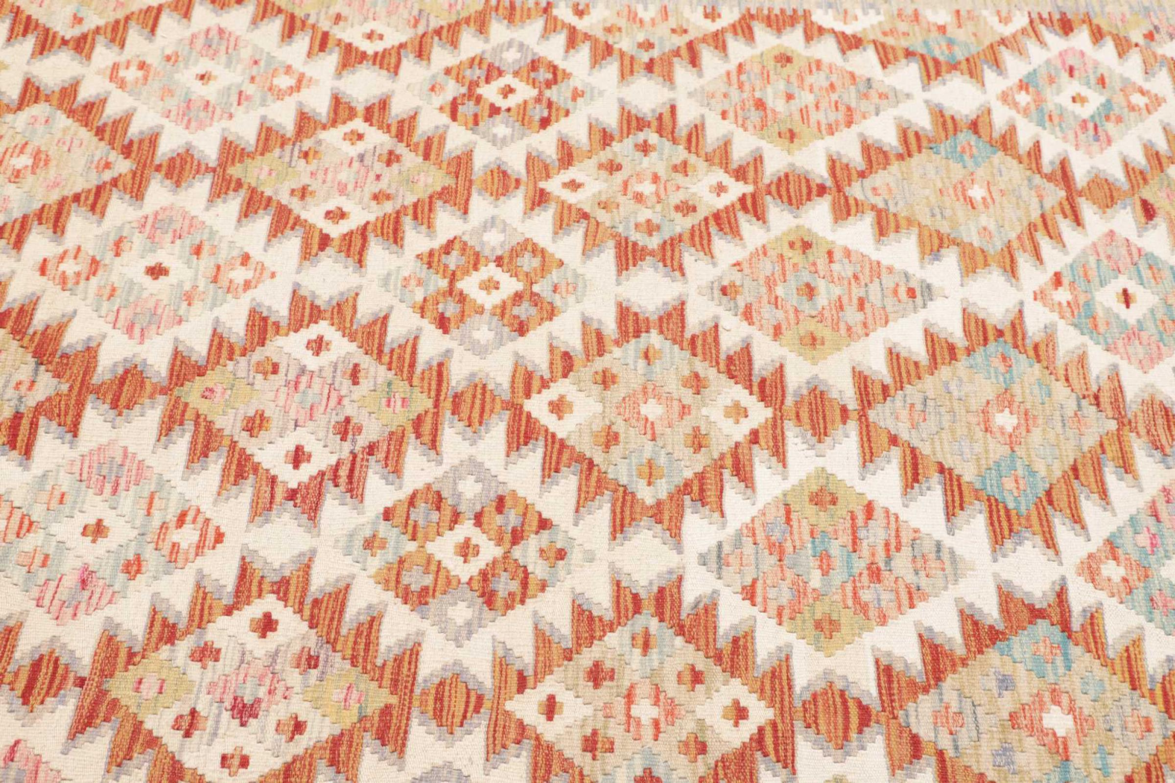 この手織りのキリム アフガンは、多面的な色と典型的なパターンのおかげで美しいです。 アフガニスタンで100%羊毛を使用して手織りされました。 間違いなく機械で作られたカーペットよりも丈夫で耐久性があります。 また、このキリムには独特の個性があります。 二度と見つからない、あなたとあなたの家のためのユニークな作品。