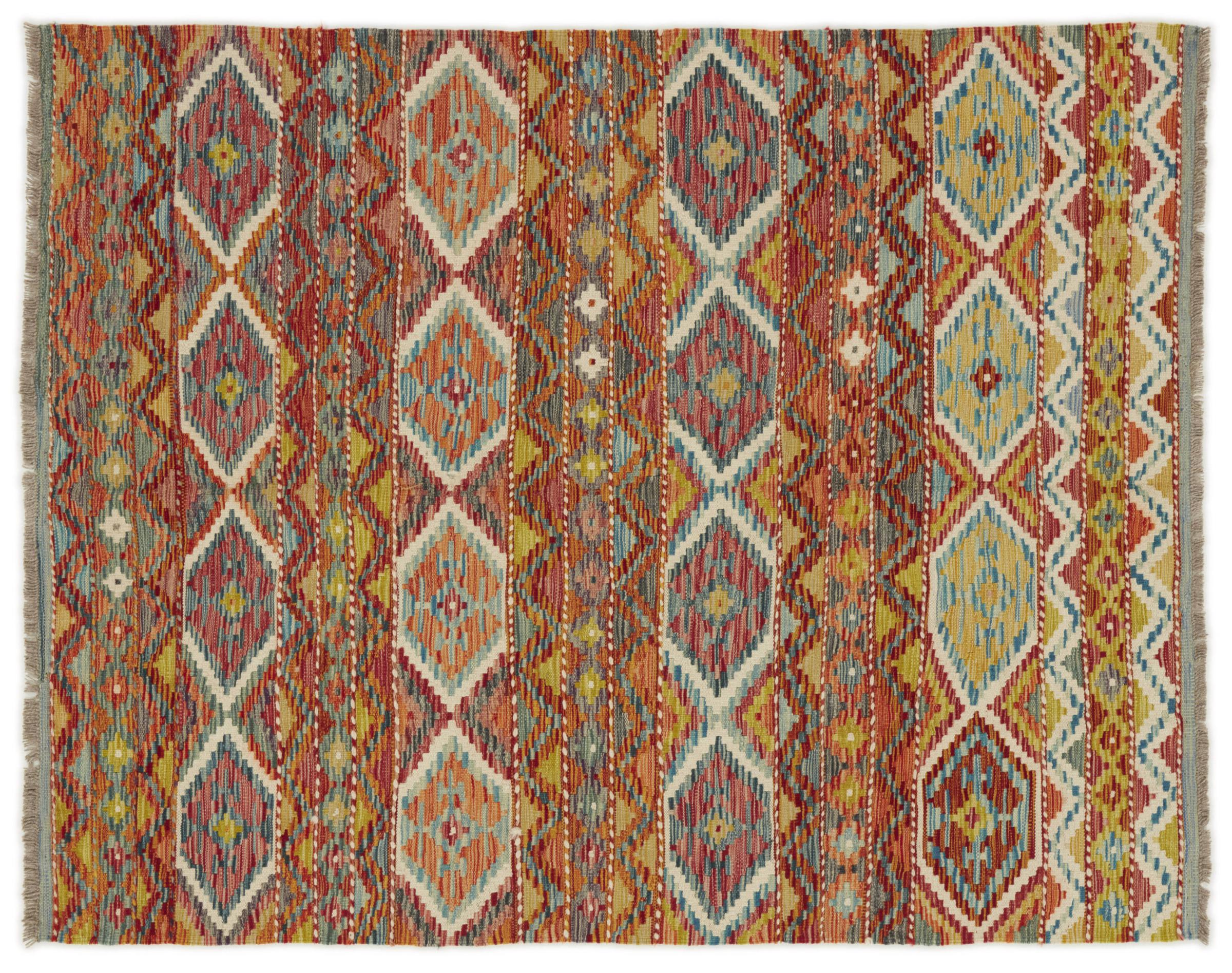 この手織りのキリム アフガンは、多面的な色と典型的なパターンのおかげで美しいです。 アフガニスタンで100%羊毛を使用して手織りされました。 間違いなく機械で作られたカーペットよりも丈夫で耐久性があります。 また、このキリムには独特の個性があります。 二度と見つからない、あなたとあなたの家のためのユニークな作品。