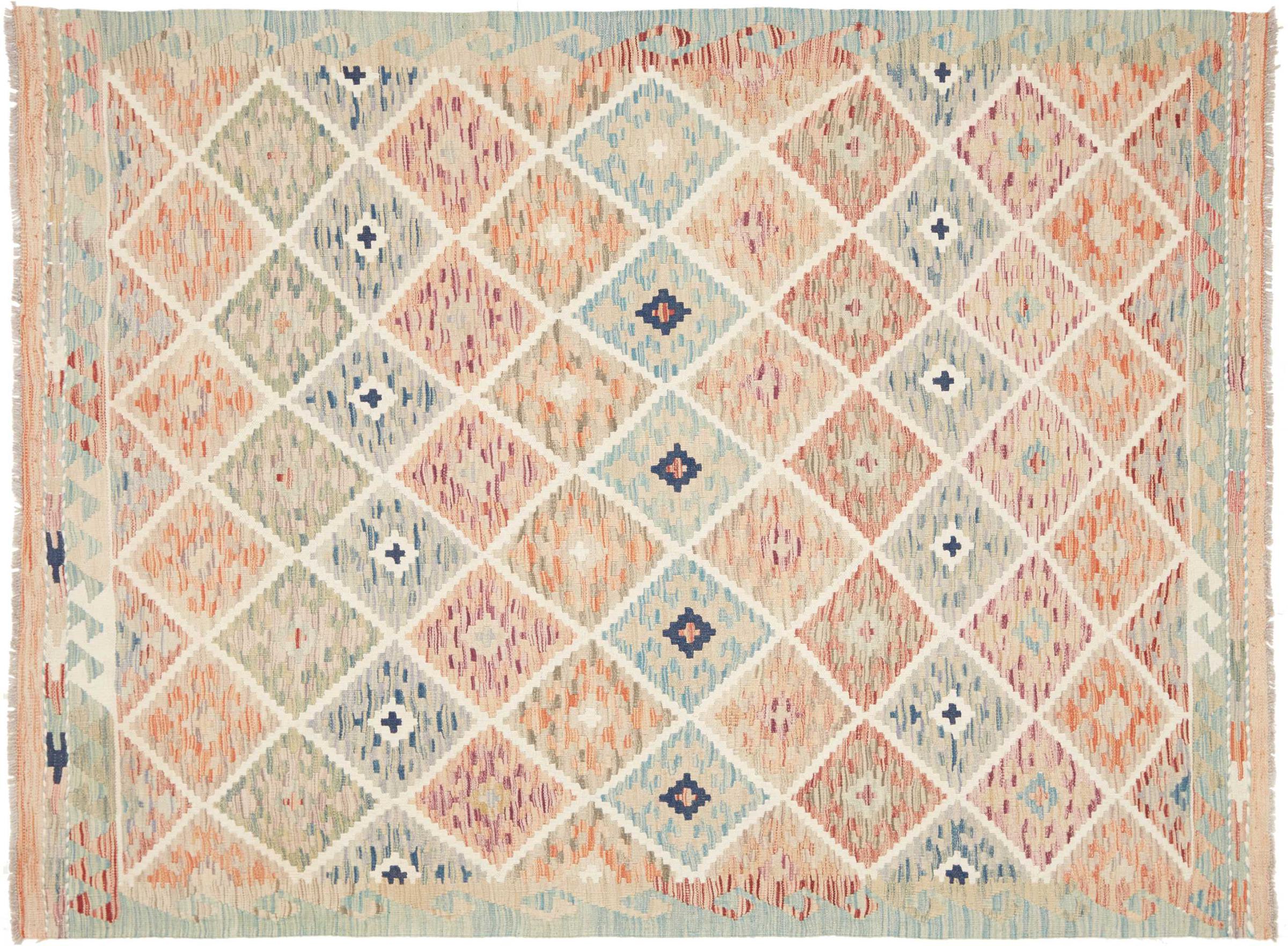 この手織りのキリム アフガンは、多面的な色と典型的なパターンのおかげで美しいです。 アフガニスタンで100%羊毛を使用して手織りされました。 間違いなく機械で作られたカーペットよりも丈夫で耐久性があります。 また、このキリムには独特の個性があります。 二度と見つからない、あなたとあなたの家のためのユニークな作品。