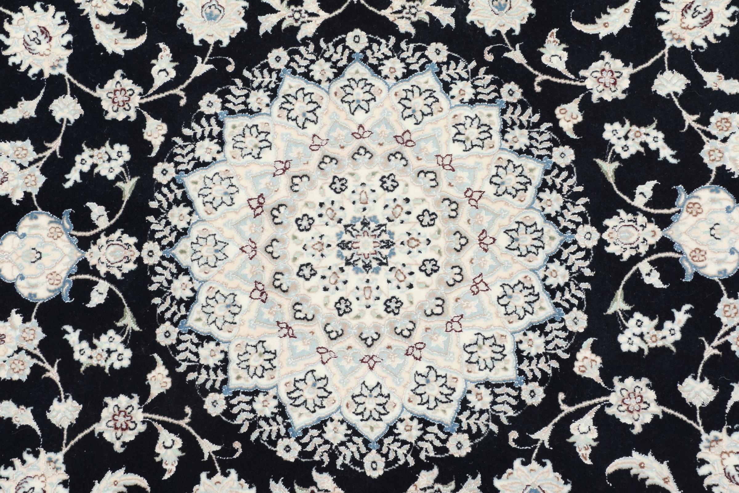 イランで最大の砂漠の1つの国境にあるナイン市のカーペットは、世界で最も有名なペルシャ絨毯の1つです。 彼らの典型的なデザインは、花の装飾品、メダリオン、ベージュと赤または青の色と紛れもないものです。 4La、6La、9La、12Laという名前のおかげで、Nainカーペットの繊細さが一目でわかります。 「ラ」の数値が低いほど、ノット密度が高くなり、カーペットの繊度が高くなります。