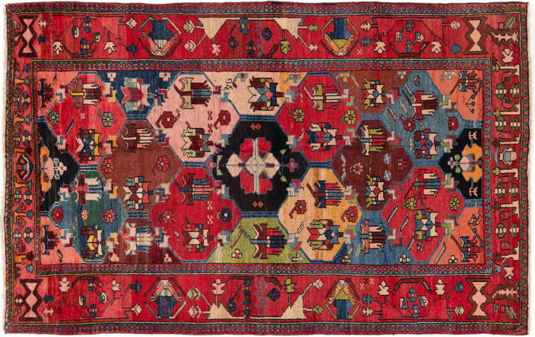 イラン(旧ペルシャ)の村や遊牧民の絨毯に属する絨毯です。この種の絨毯は、昔からの伝統で、小さな町や村で手で結ばれています。遊牧民でさえ、今でもペルシャ絨毯を野外で結びます。絨毯は柄がなく、頭から完全に結びます。古典的な装飾品が特徴で、直線的で幾何学的なパターンで配置されています。 文化的に伝統的な起源を持つこのカーペットは、古代ペルシャを体現するユニークな個性を持っています。