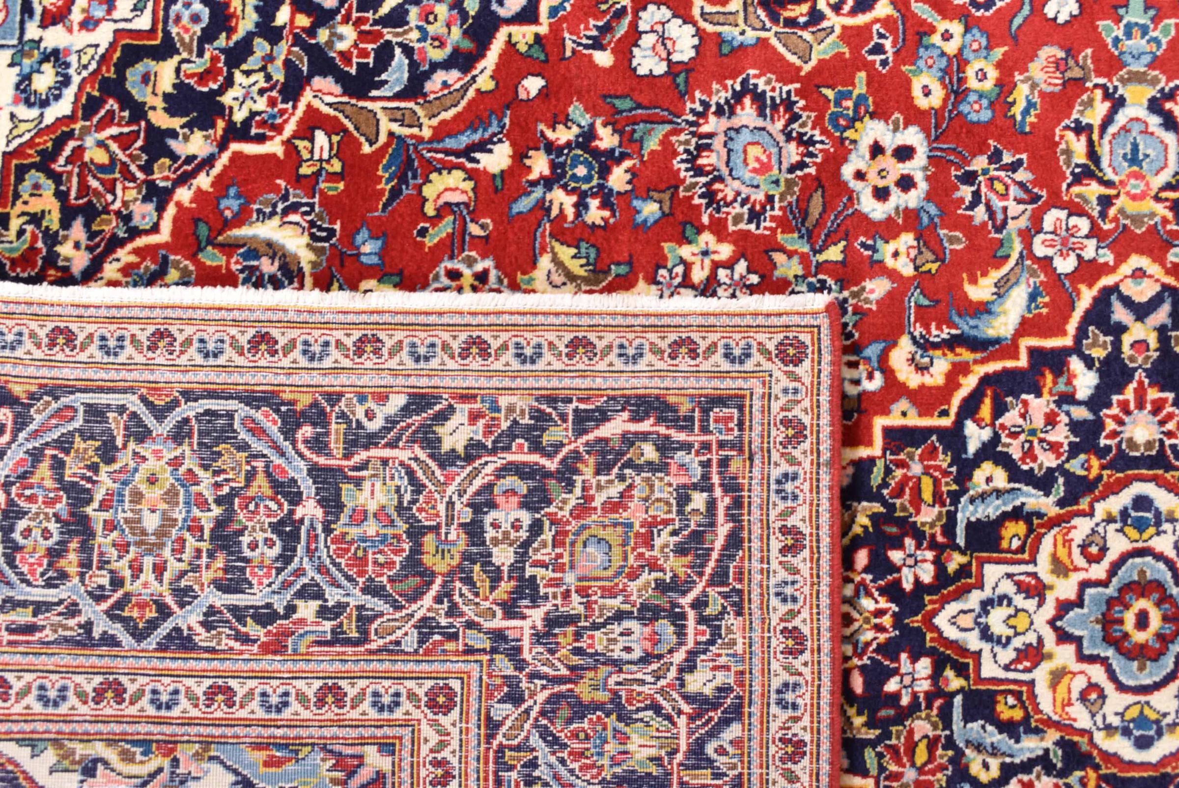 カーシャン市(カーシャーン)の手編みのカーペットは世界中で知られています。 これらのペルシャ絨毯は非常に人気のあるデザインであるだけでなく、その品質は間違いなく最高の1つです。 この都市は、ペルシャ帝国の有名なシルクロードの最も重要な貿易センターの1つと考えられていました。 ケシャン絨毯は通常、中央の円形浮彫り、花の装飾、赤い背景があります。 彼らは高品質の羊毛と野菜の色で構成されています。