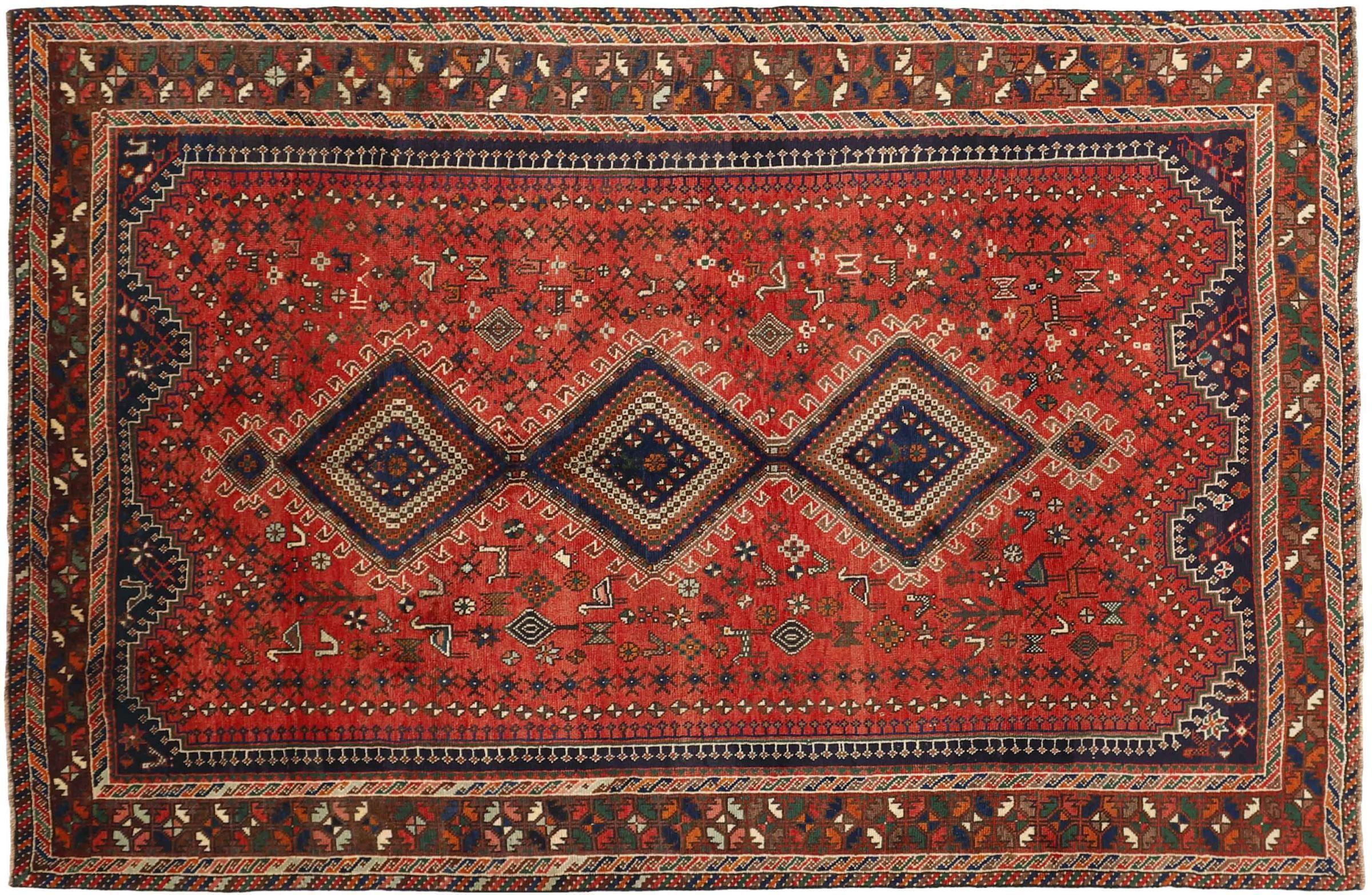 このシラーズ絨毯は、ファルス州の遊牧民の職人技を反映しています。 シンプルなデザイン、美しい色、品質の良さ、そして長寿命がそれを物語っています。 幾何学的なパターンと形状は例外なく時代を超越し、北欧インテリアで非常に人気があります。 力強い色がお部屋に心地よさと暖かさをもたらします。