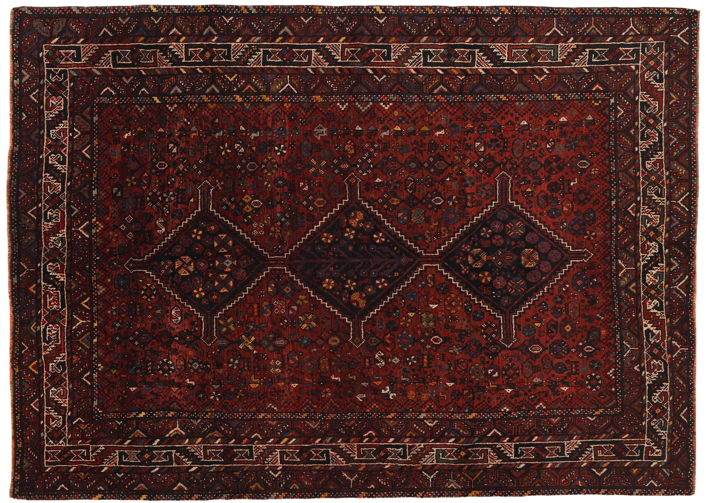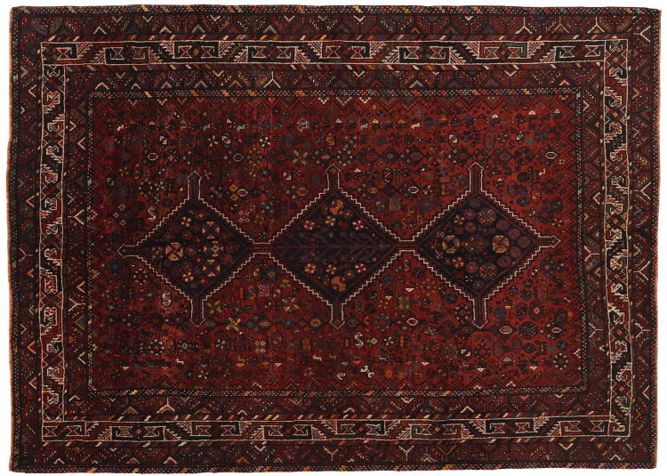 イラン(旧ペルシャ)の村や遊牧民の絨毯に属する絨毯です。この種の絨毯は、昔からの伝統で、小さな町や村で手で結ばれています。遊牧民でさえ、今でもペルシャ絨毯を野外で結びます。絨毯は柄がなく、頭から完全に結びます。古典的な装飾品が特徴で、直線的で幾何学的なパターンで配置されています。 文化的に伝統的な起源を持つこのカーペットは、古代ペルシャを体現するユニークな個性を持っています。