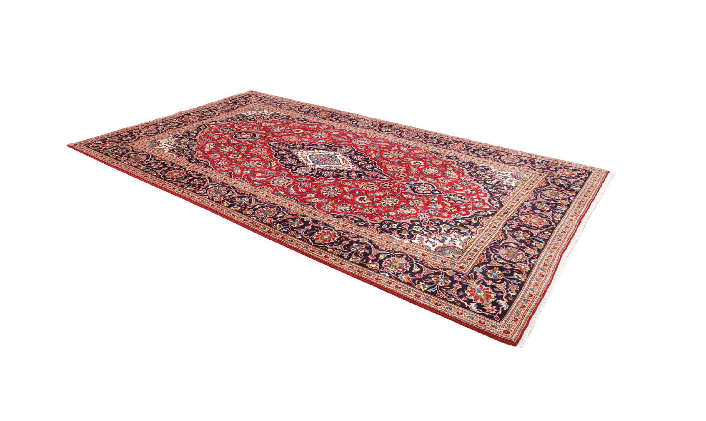 カシャーン (ケシャン) のこのカーペットは、非常に伝統的で典型的なペルシャのデザインで、美しい装飾が施されています。 カシャンラグは、その非常にエレガントなデザインで非常に人気があります。 これらの絨毯は、古代シルクロードの都市カシャーンで生まれました。 このカーペットは高級羊毛から手作業で編まれており、ご自宅の中で唯一無二のハイライトとなるでしょう。