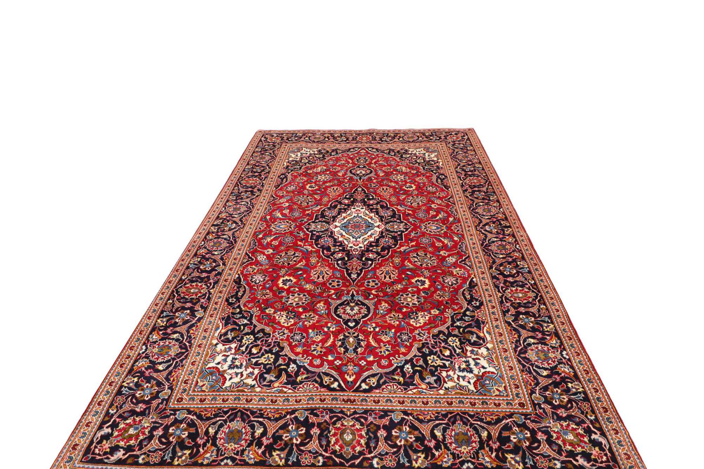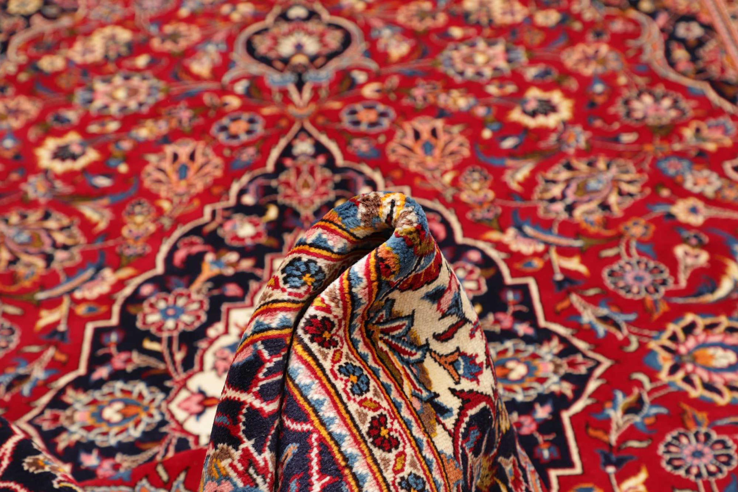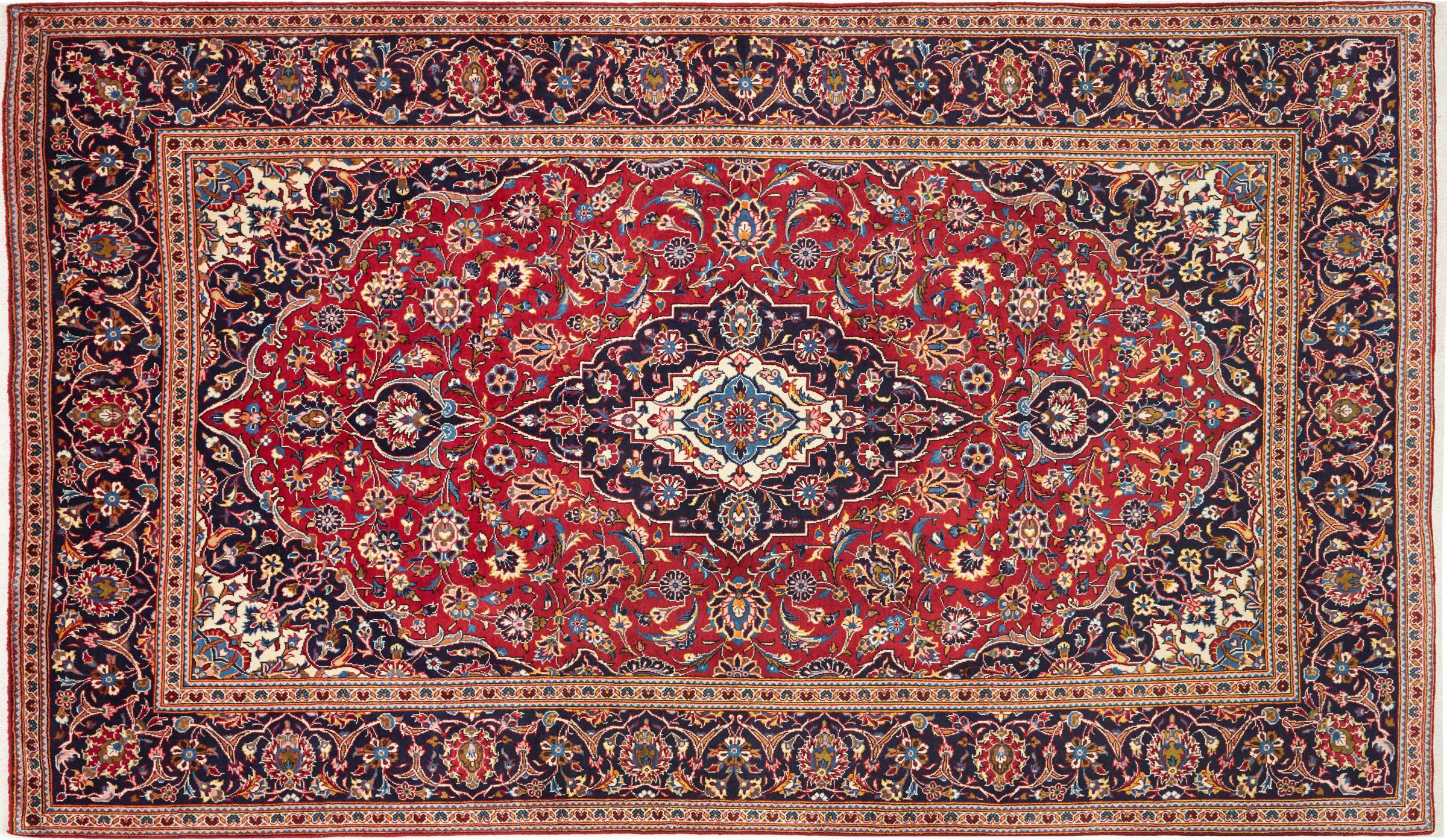 カーシャン市(カーシャーン)の手編みのカーペットは世界中で知られています。 これらのペルシャ絨毯は非常に人気のあるデザインであるだけでなく、その品質は間違いなく最高の1つです。 この都市は、ペルシャ帝国の有名なシルクロードの最も重要な貿易センターの1つと考えられていました。 ケシャン絨毯は通常、中央の円形浮彫り、花の装飾、赤い背景があります。 彼らは高品質の羊毛と野菜の色で構成されています。