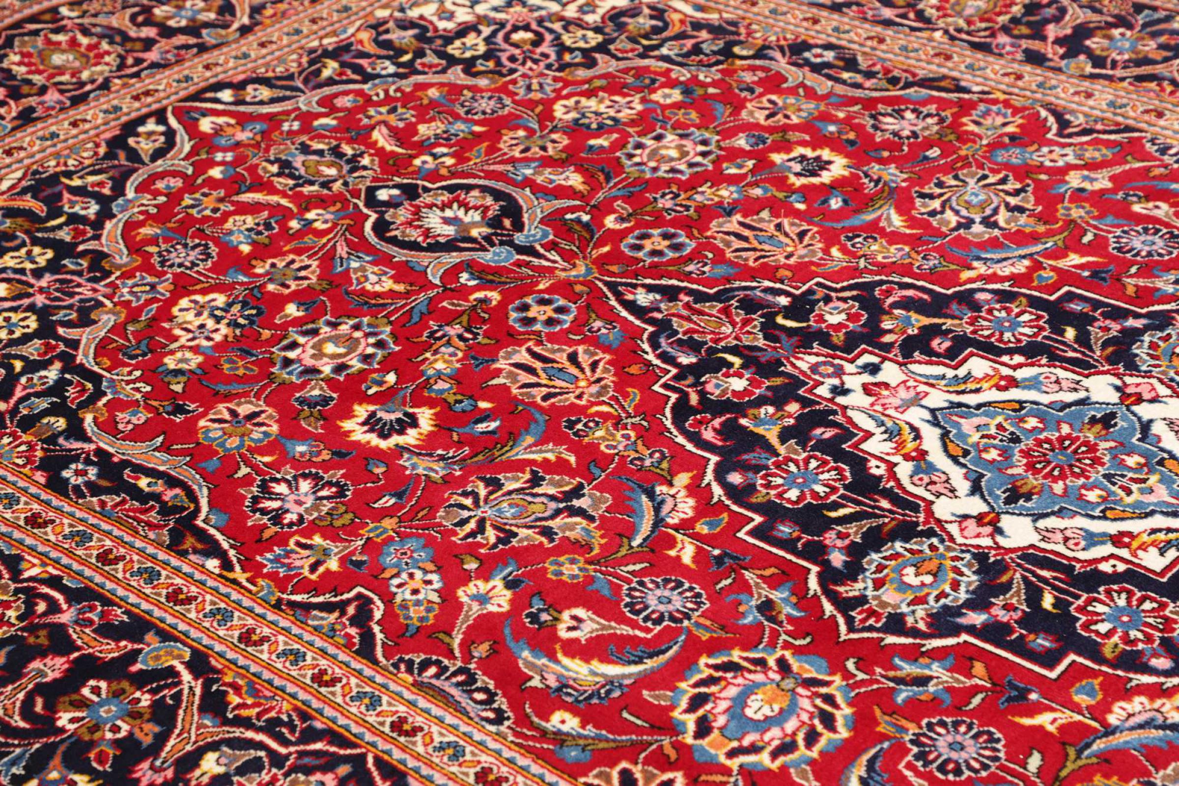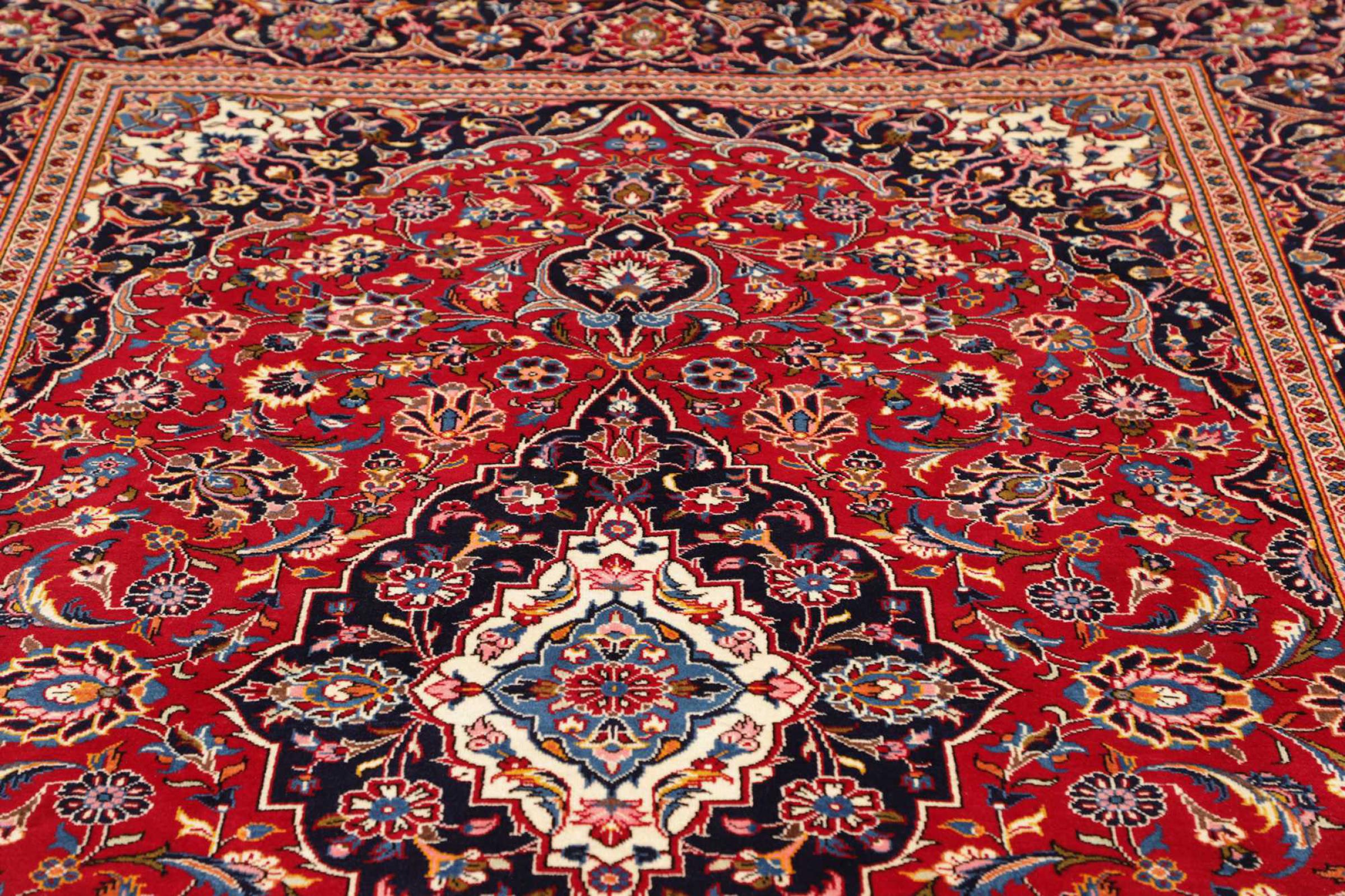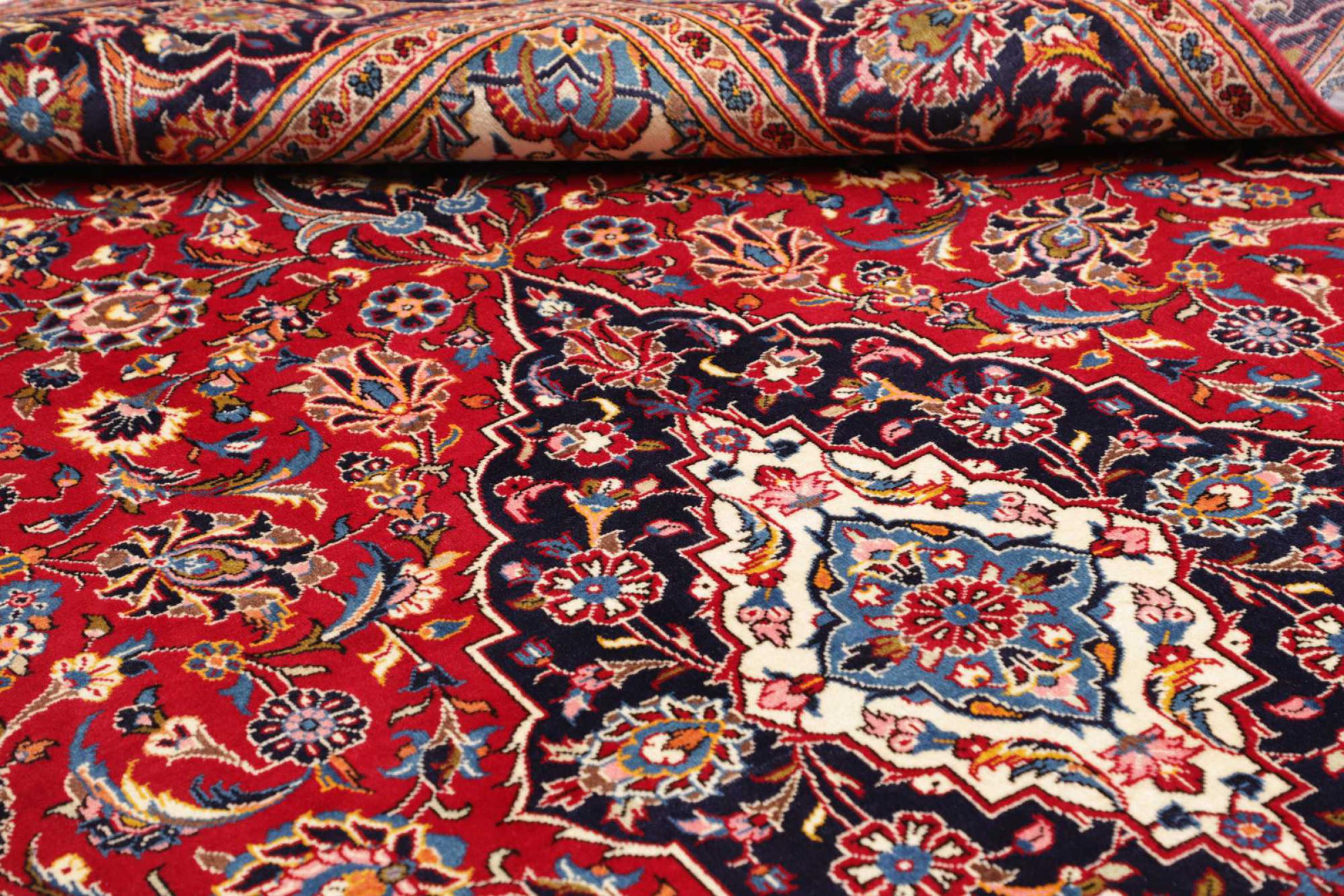 カーシャン市(カーシャーン)の手編みのカーペットは世界中で知られています。 これらのペルシャ絨毯は非常に人気のあるデザインであるだけでなく、その品質は間違いなく最高の1つです。 この都市は、ペルシャ帝国の有名なシルクロードの最も重要な貿易センターの1つと考えられていました。 ケシャン絨毯は通常、中央の円形浮彫り、花の装飾、赤い背景があります。 彼らは高品質の羊毛と野菜の色で構成されています。