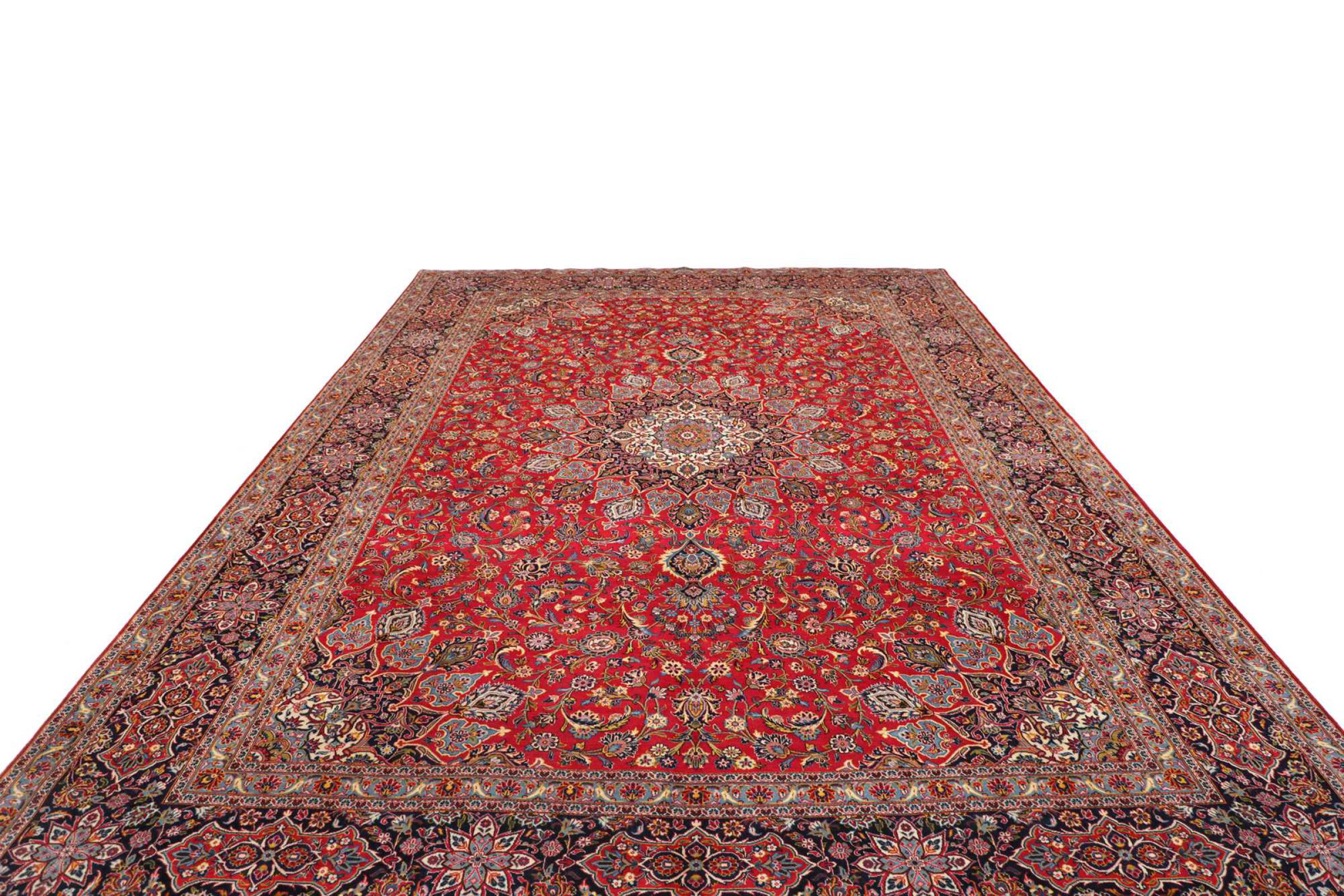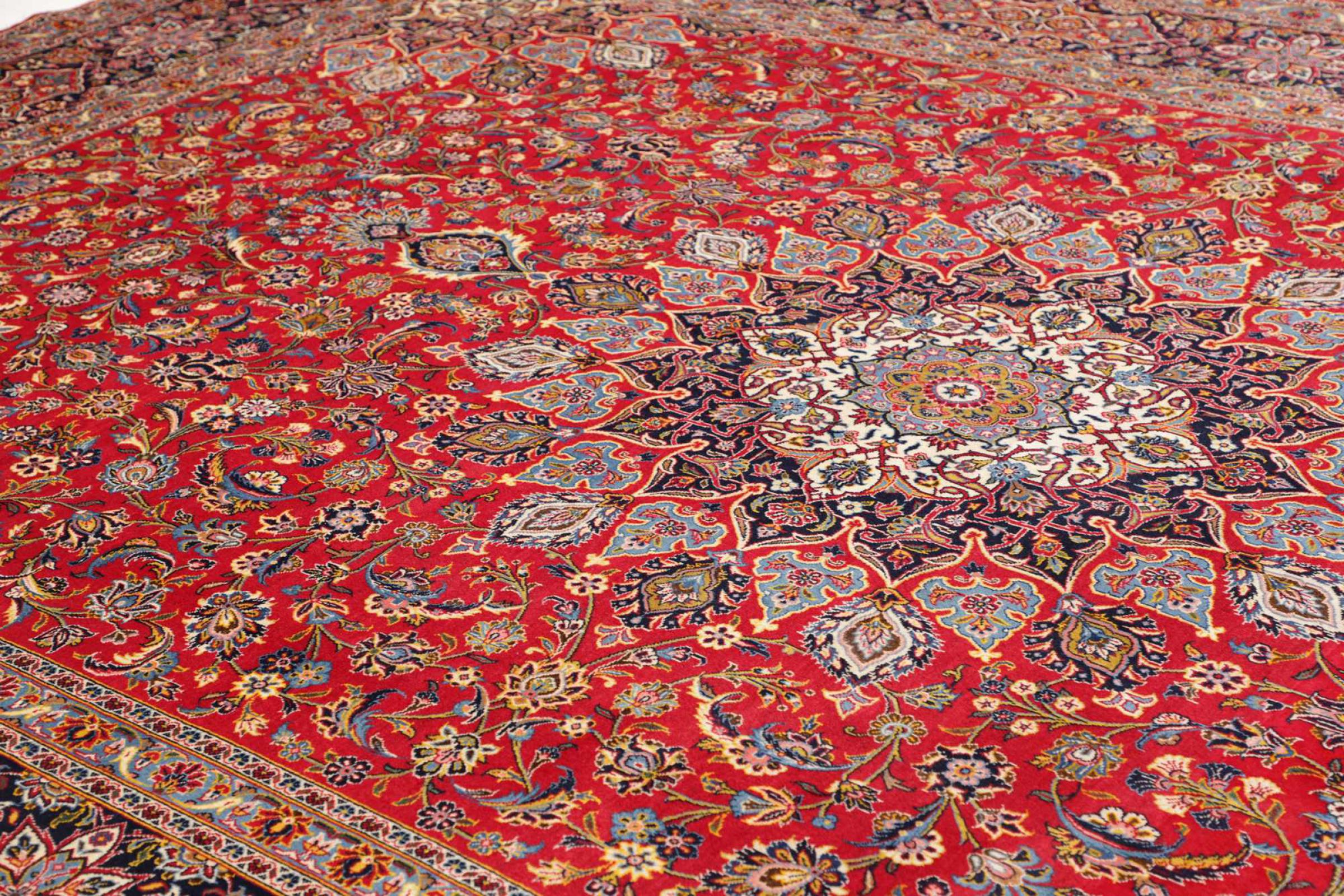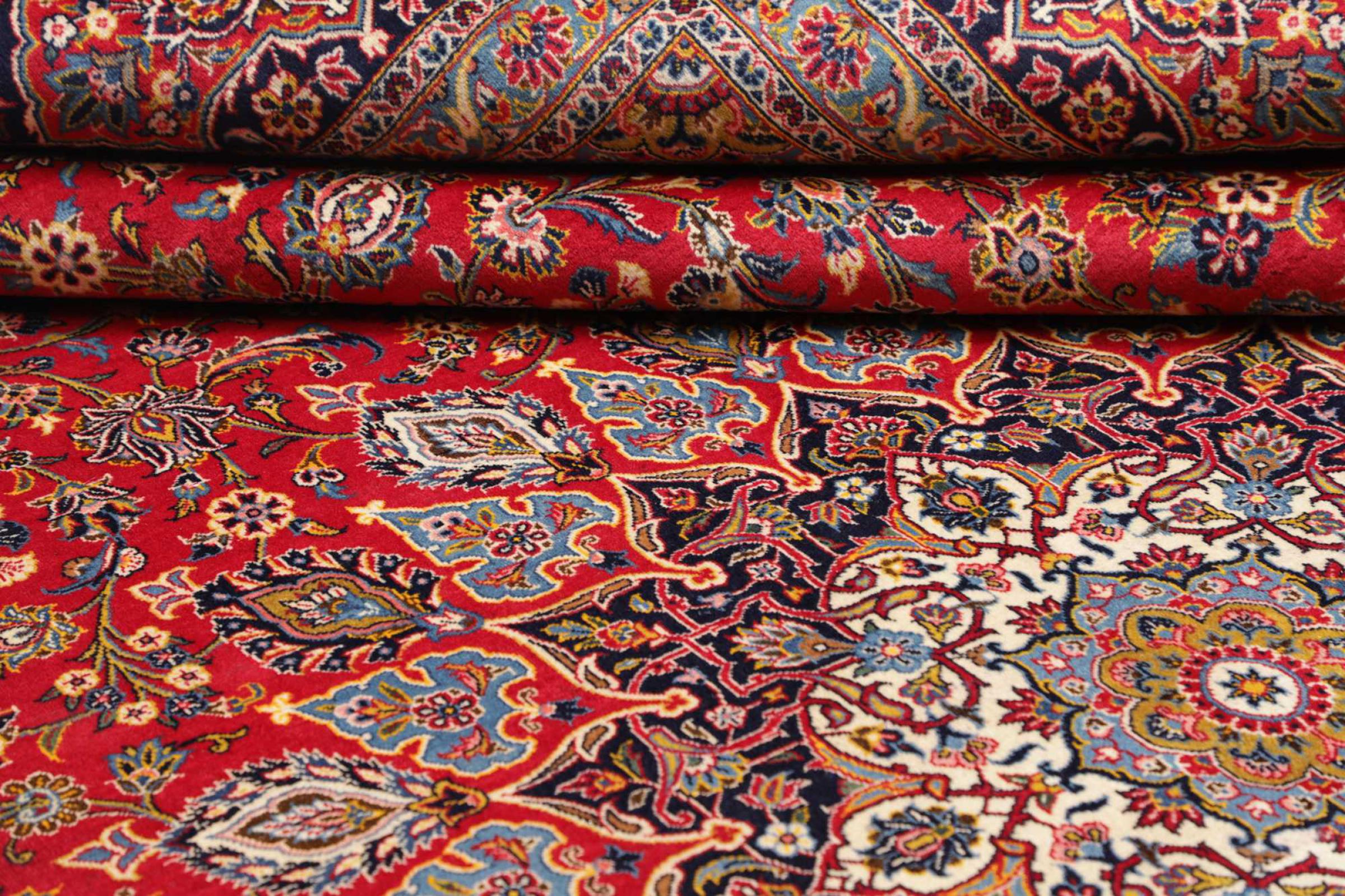 カーシャン市(カーシャーン)の手編みのカーペットは世界中で知られています。 これらのペルシャ絨毯は非常に人気のあるデザインであるだけでなく、その品質は間違いなく最高の1つです。 この都市は、ペルシャ帝国の有名なシルクロードの最も重要な貿易センターの1つと考えられていました。 ケシャン絨毯は通常、中央の円形浮彫り、花の装飾、赤い背景があります。 彼らは高品質の羊毛と野菜の色で構成されています。