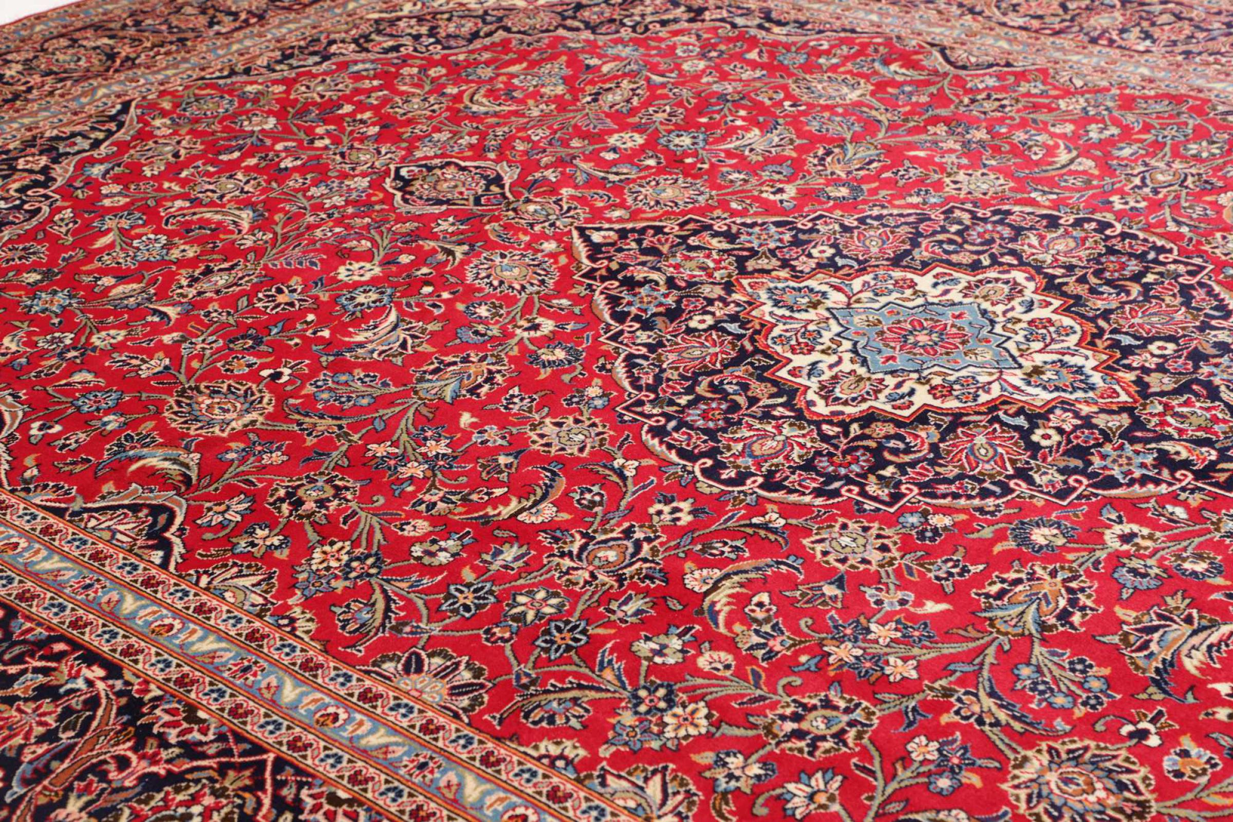 カシャーン (ケシャン) のこのカーペットは、非常に伝統的で典型的なペルシャのデザインで、美しい装飾が施されています。 カシャンラグは、その非常にエレガントなデザインで非常に人気があります。 これらの絨毯は、古代シルクロードの都市カシャーンで生まれました。 このカーペットは高級羊毛から手作業で編まれており、ご自宅の中で唯一無二のハイライトとなるでしょう。