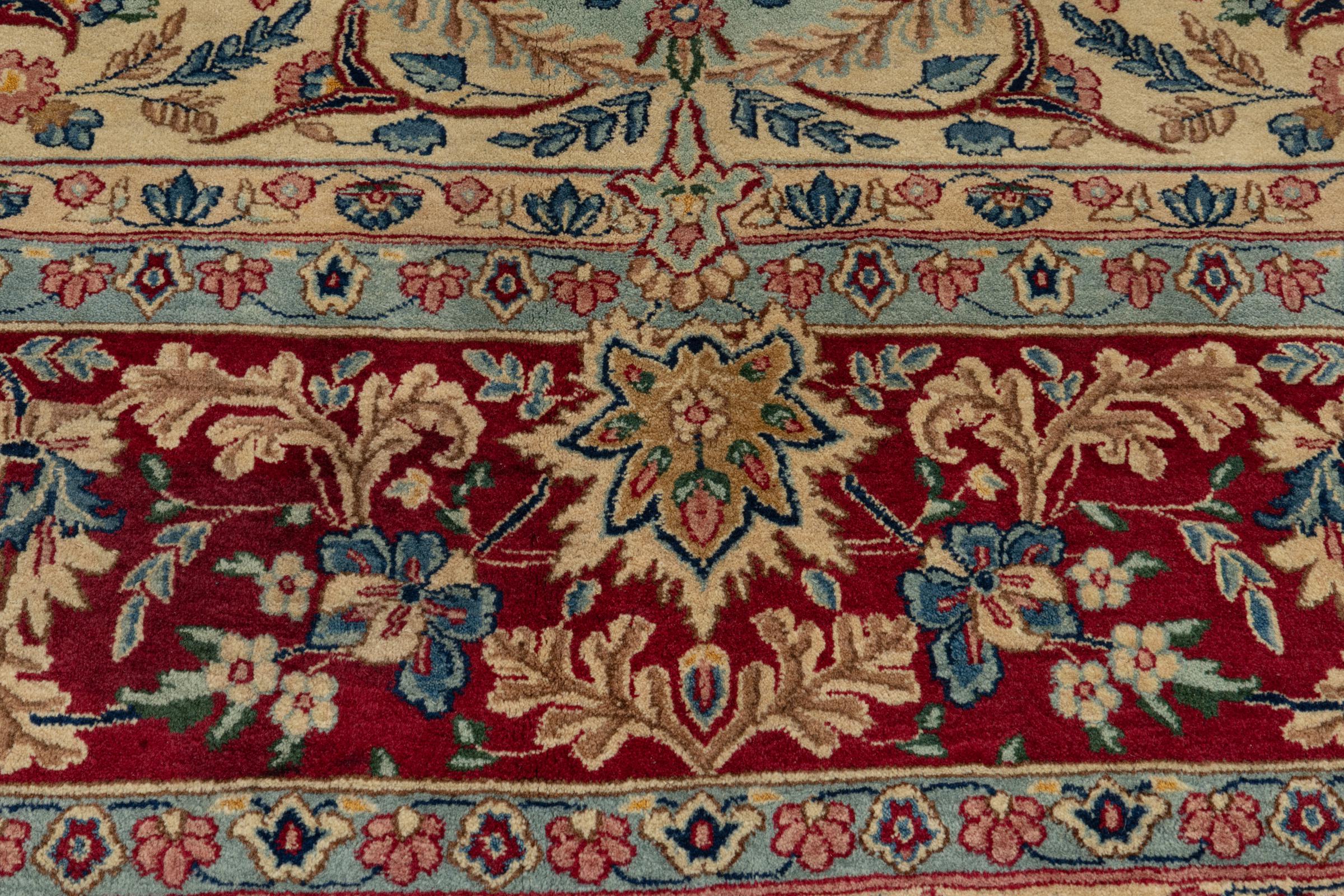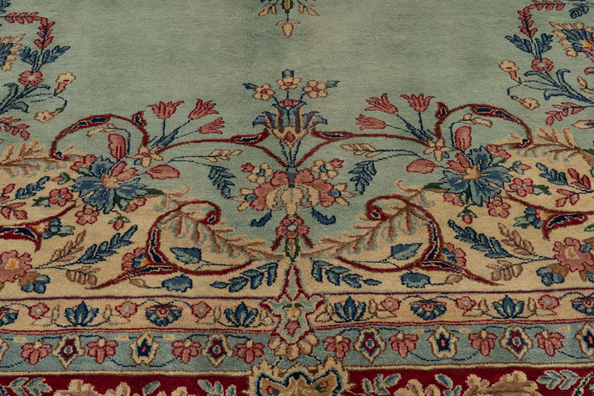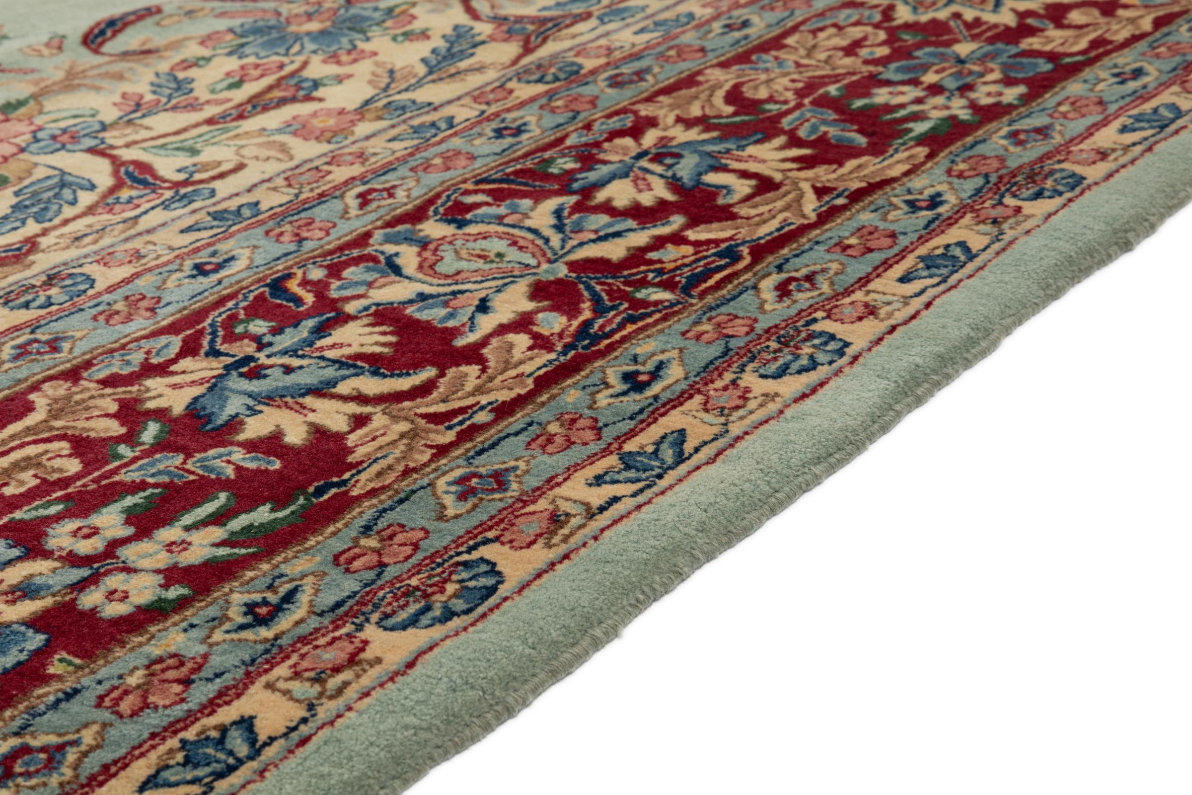このケルマン絨毯は、その品質とデザインが印象的です。テヘランから遠く離れた砂漠のオアシス、ケルマーン市で高品質の糸を使用し、数か月かけて手編みされました。この芸術作品を納得してください。花の装飾でお部屋に美しいオリエンタルな雰囲気を与えます。