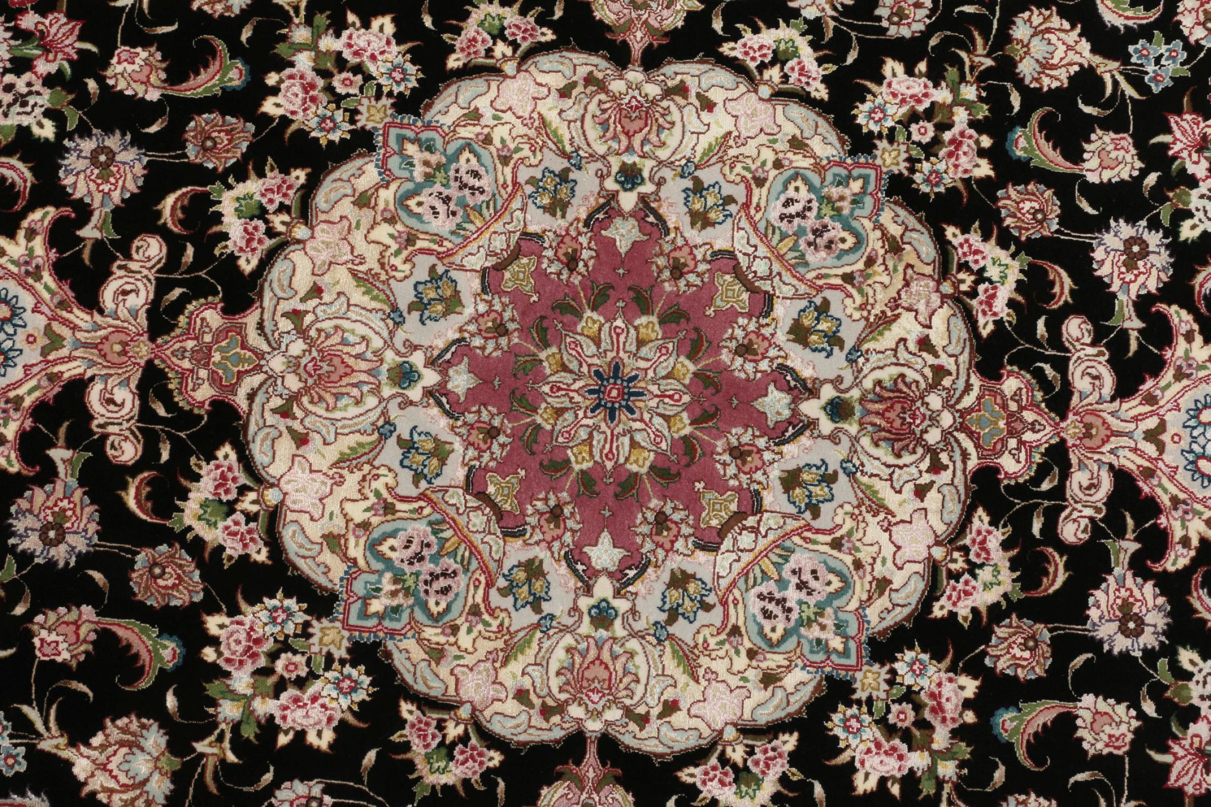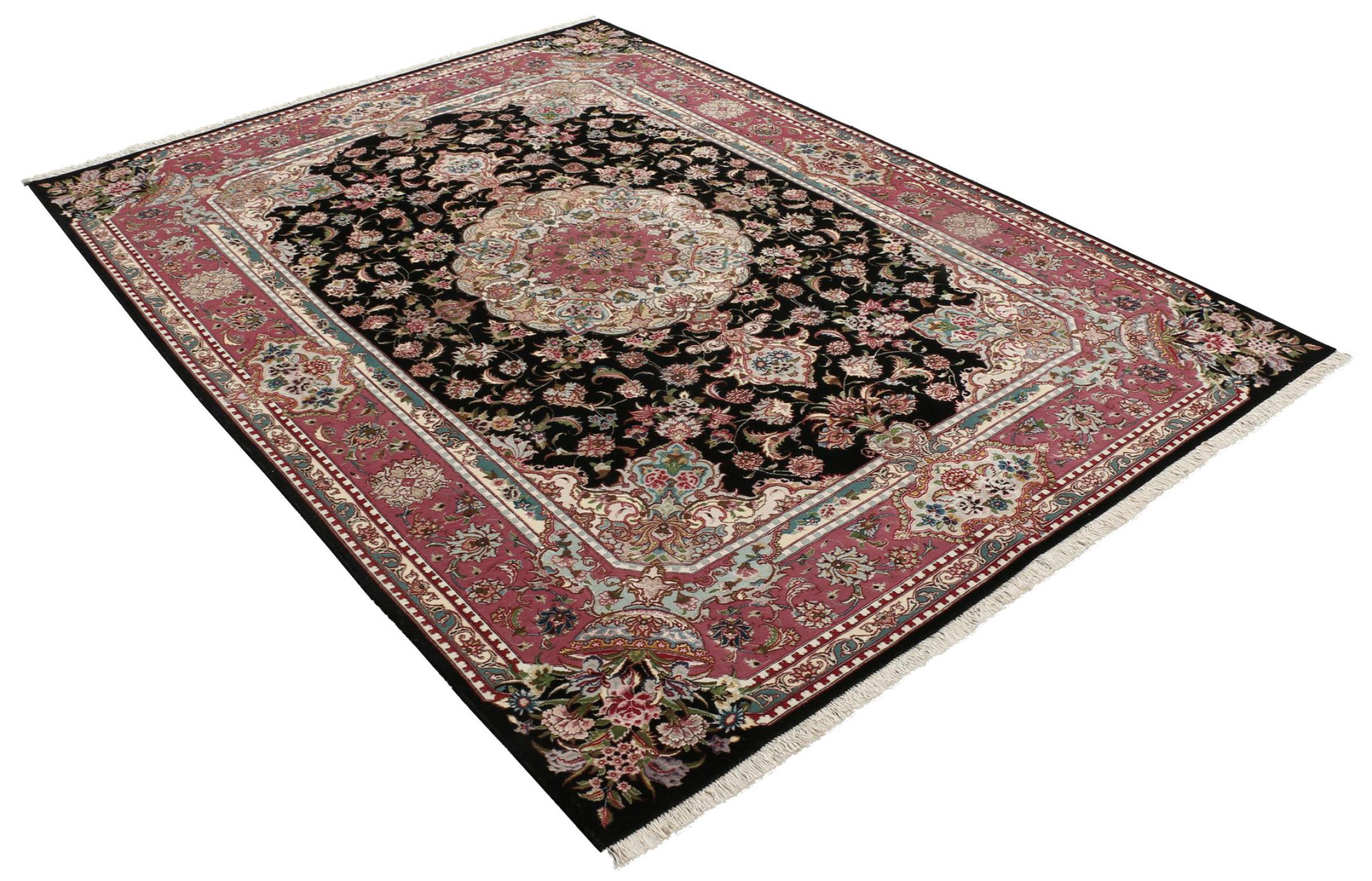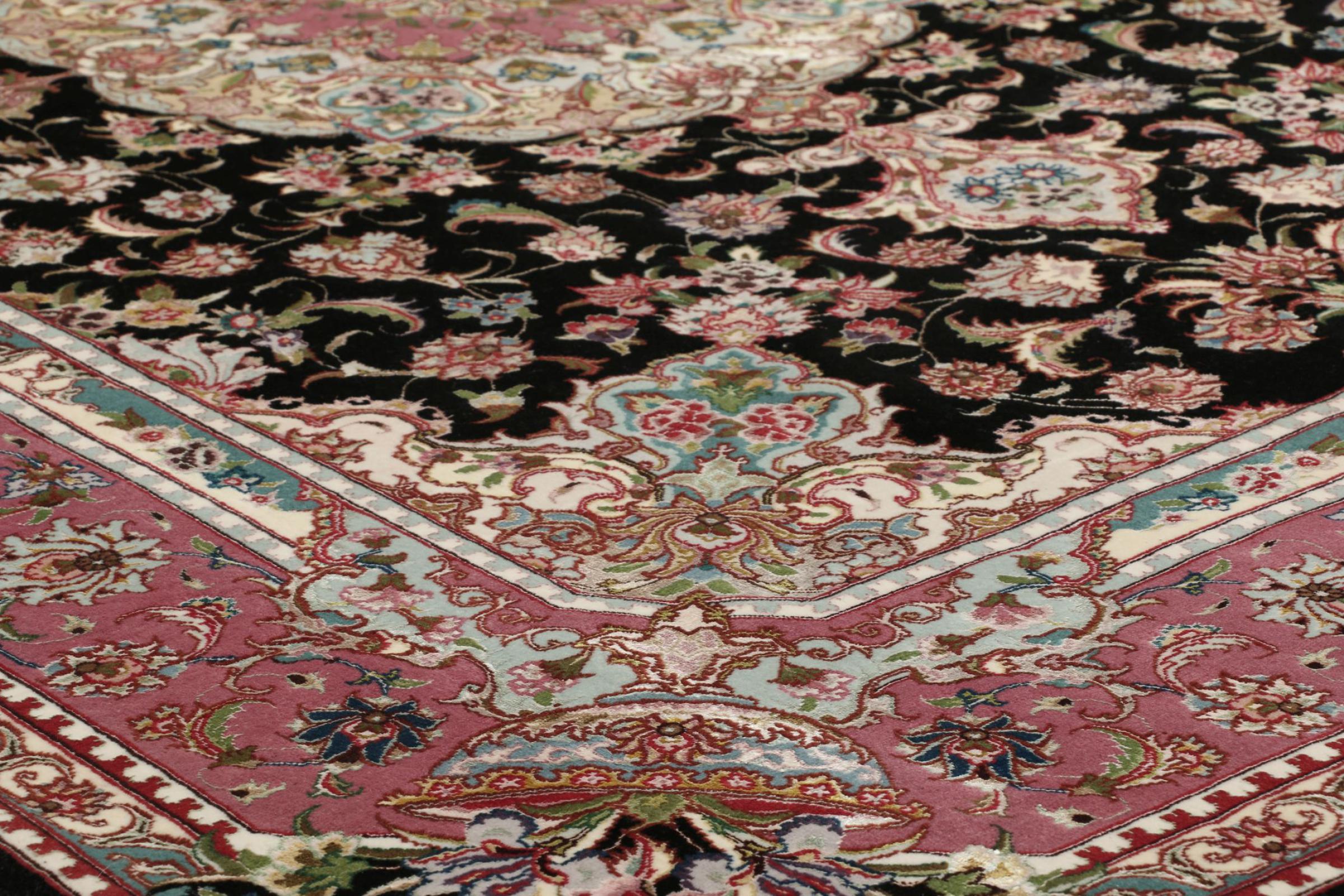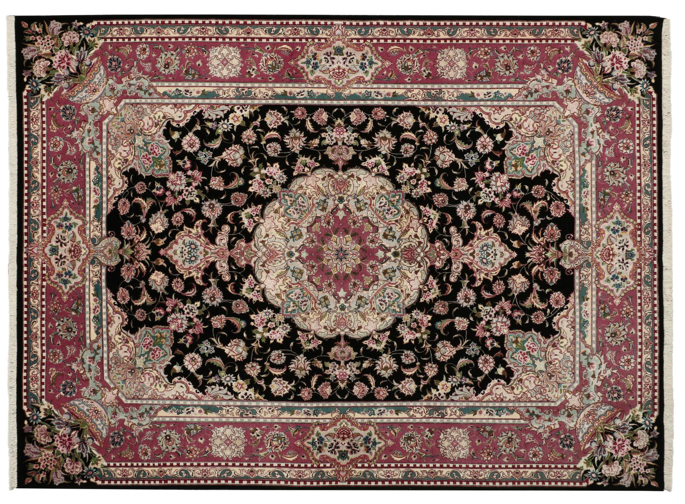 タブリーズはイランで最大の都市の1つであり、ペルシャ絨毯で最も有名な絨毯の州の1つです。 タブリーズカーペットには、しばしば「Raj」番号が付けられています。 この数値が高いほど、ノット密度を示すため、カーペットは細かくなります。 タブリーズの平均的なペルシャ絨毯(40ラージ)と非常に細かい絨毯(80ラージ)の両方があります。