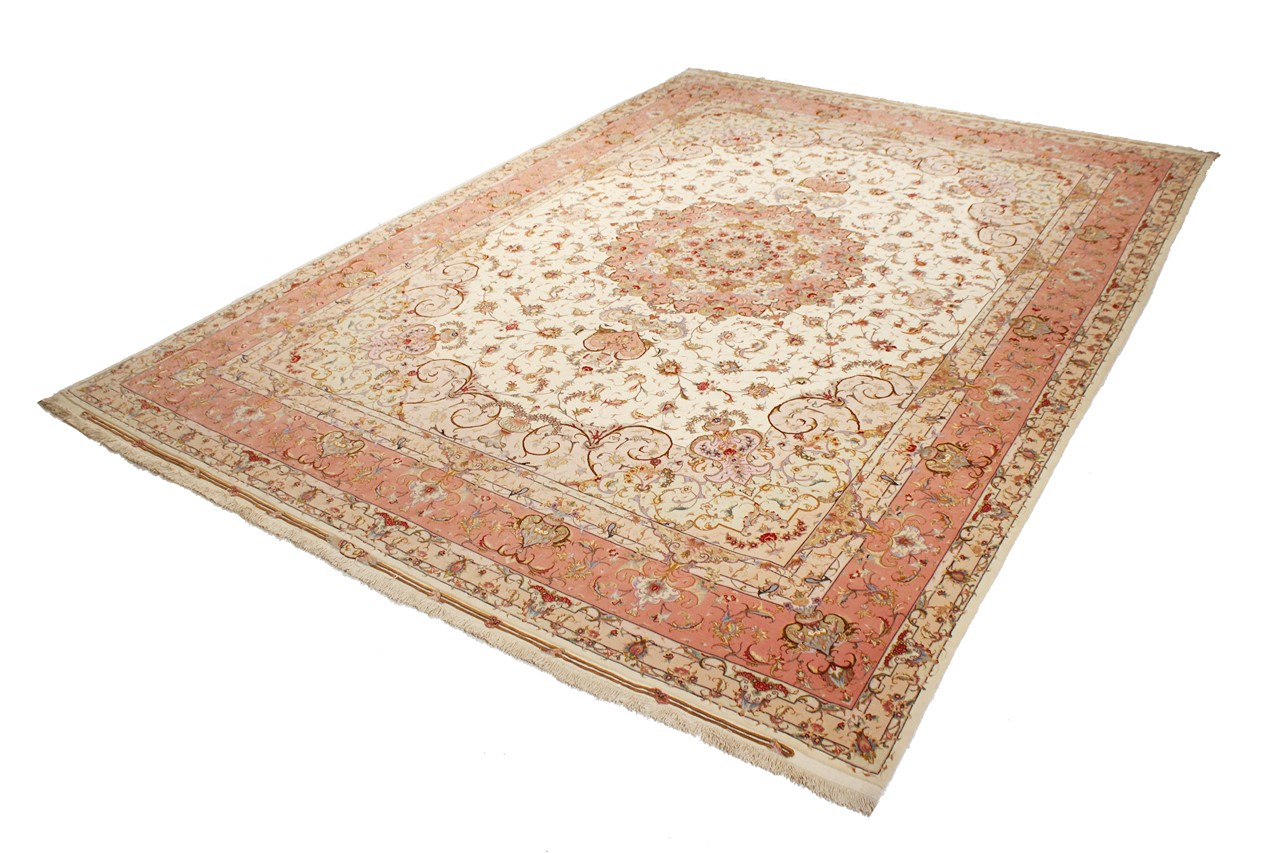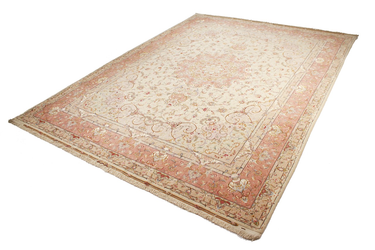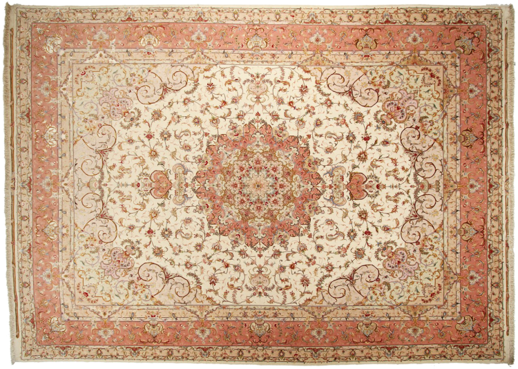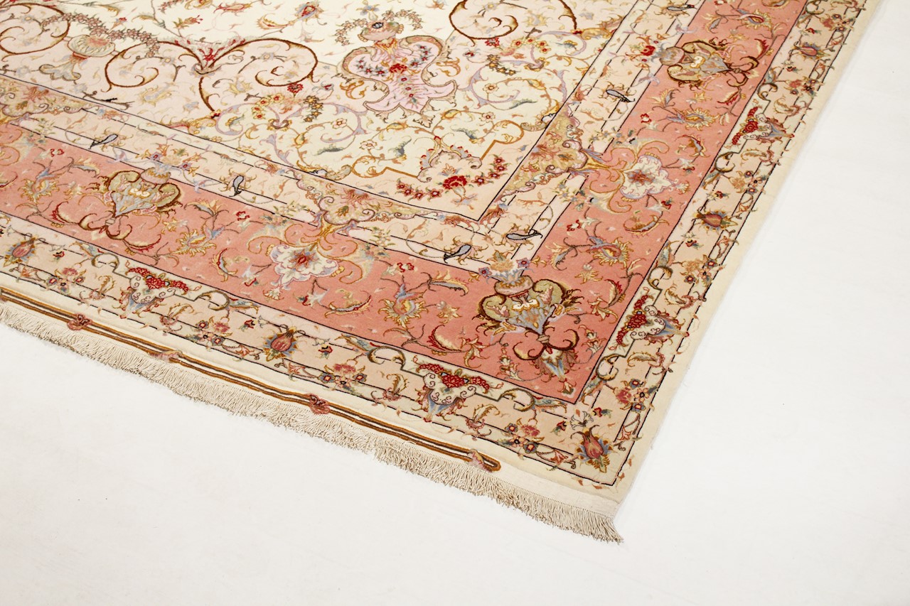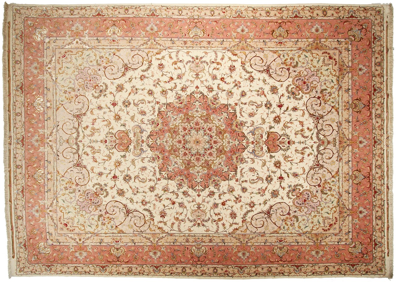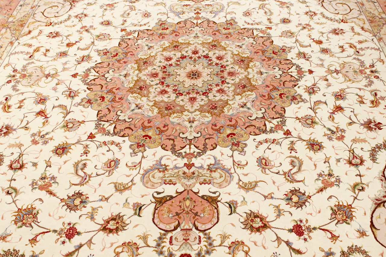 タブリーズはイランで最大の都市の1つであり、ペルシャ絨毯で最も有名な絨毯の州の1つです。 タブリーズカーペットには、しばしば「Raj」番号が付けられています。 この数値が高いほど、ノット密度を示すため、カーペットは細かくなります。 タブリーズの平均的なペルシャ絨毯(40ラージ)と非常に細かい絨毯(80ラージ)の両方があります。