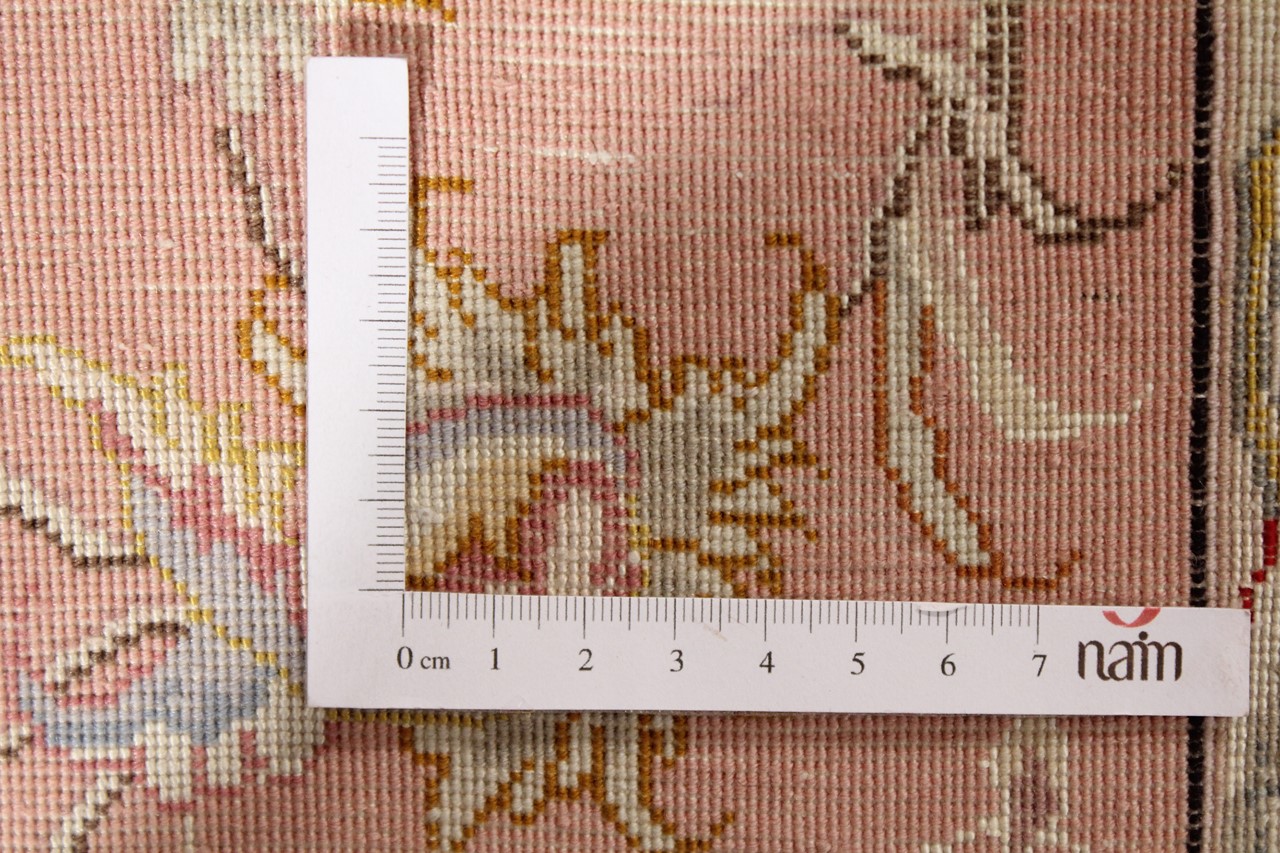 このタブリーズは、イラン北西部、同じ名前の職人都市タブリーズで手編みされました。 高品質のウールと天然シルクのみを使用しました。 そのパターンと装飾要素により、東洋を最も美しく反映しています。 タブリーズ絨毯は非常によく知られており、人気があります。 これらのカーペットの Raj 数は、長さ 7 cm にわたるノットの数を反映しています。 たとえば、タブリーズ 60Raj のノットは 1 平方メートルあたり約 700,000 です。