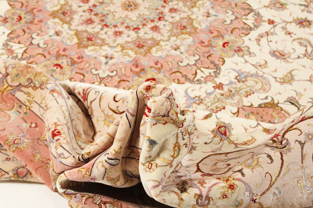 カーペットID 72950031126 サイズ 408x300 cm 厚さ: およそ 6 mm 密度: 800 000 / m²平方メートル 生産: 手織り 織り目: シルクとウール 整径: 絹、シルク 原産地: イラン 年代: 新品 重さ: およそ 37 kg としても知られている Tabris, Tabriz, Tebris, Tebriz, Täbris, 60Raj 在庫: ユニーク品 - 在庫 1 点のみ
