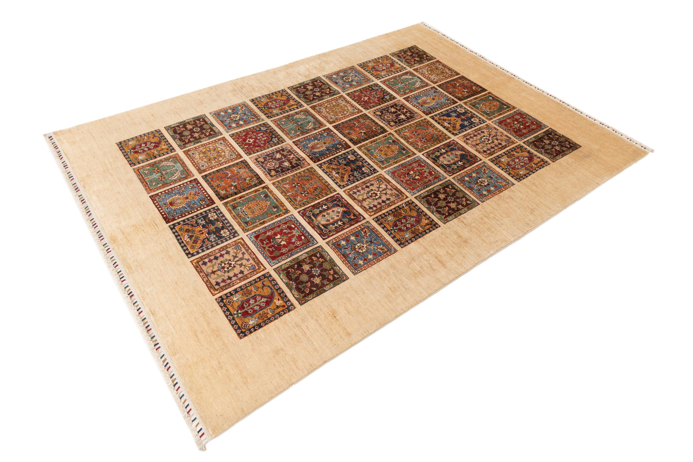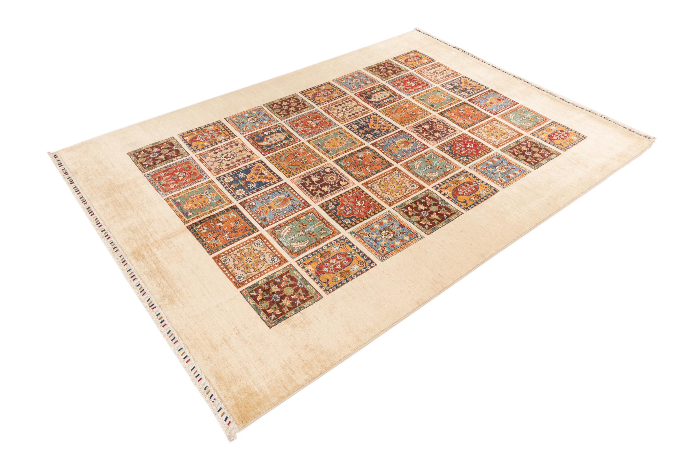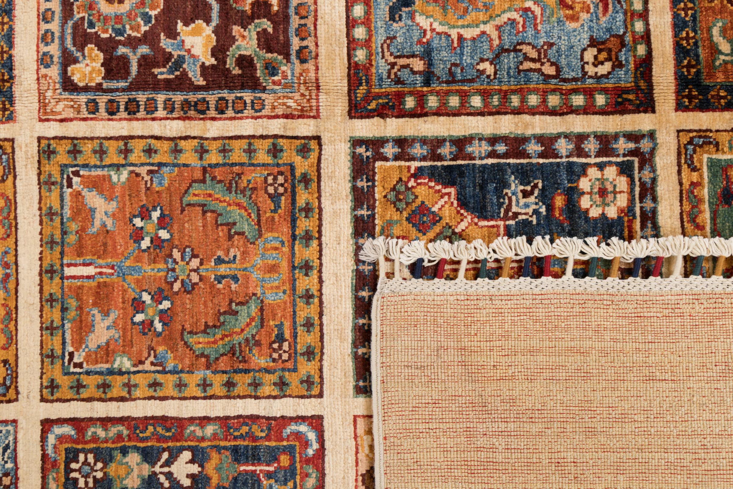 このアリジャナ・バクティアリのカーペットは、あなたの家に自然をもたらします。ペルシャ庭園の伝統的な庭園のデザインは、すぐにインスピレーションを与えます。伝統的な庭のモチーフは、東洋文化の中で常に人気があり、様々なペルシャ絨毯に見られます。このオリエンタルカーペットは、パキスタンで高品質の羊毛を使って手作りされたものです。柔らかな手仕事に触れると、手結びの良さが伝わってきます。