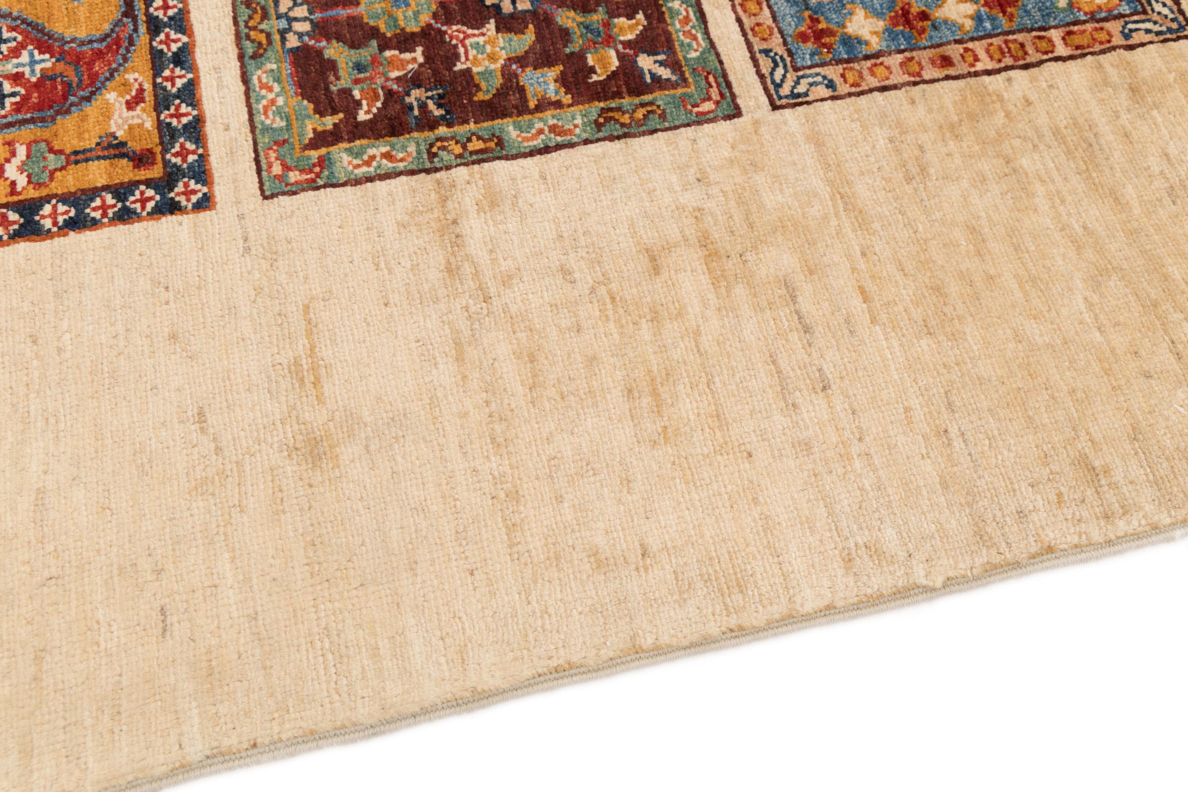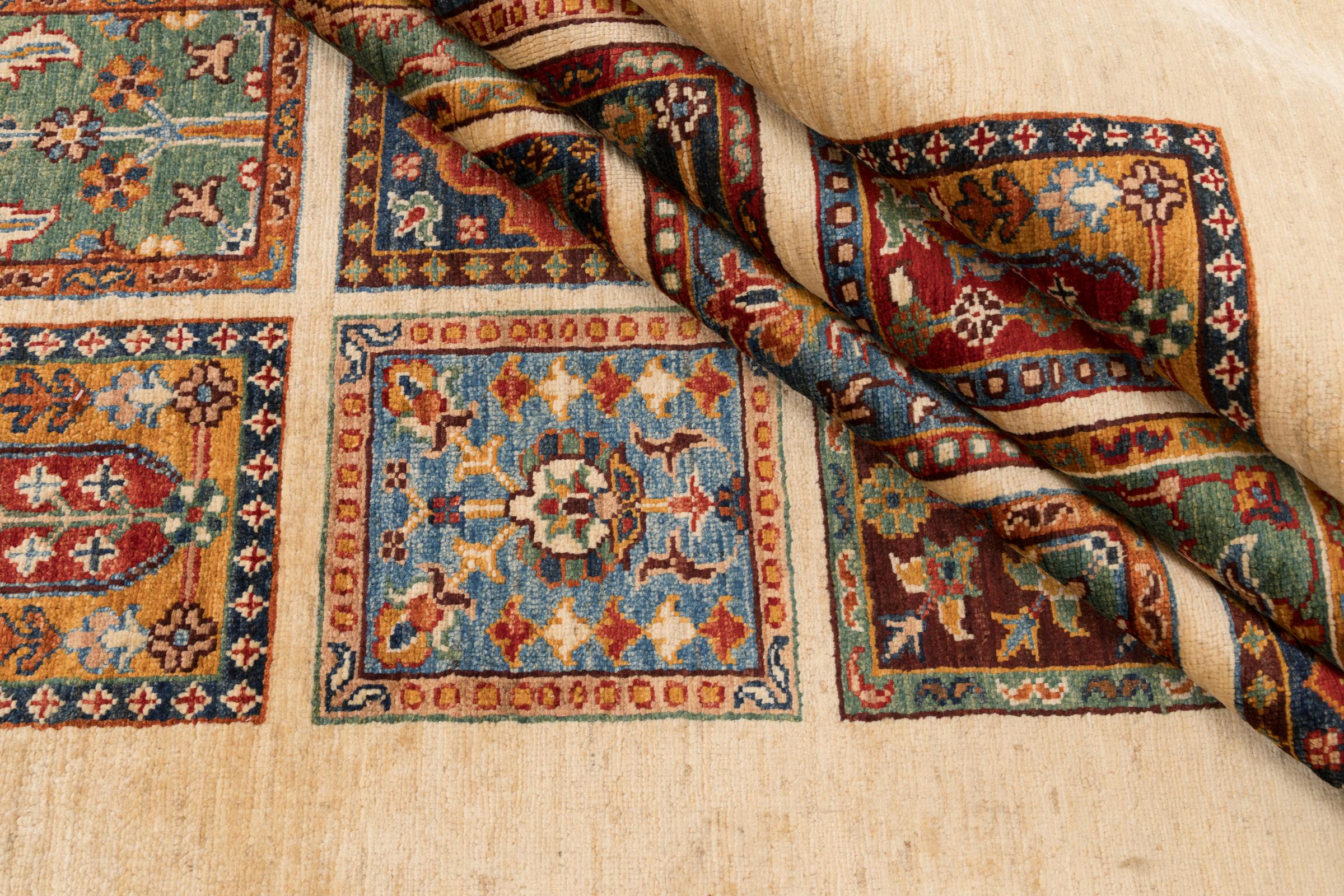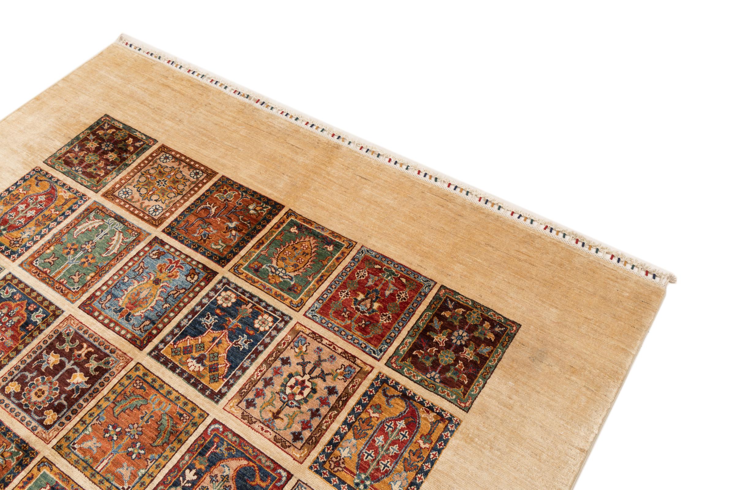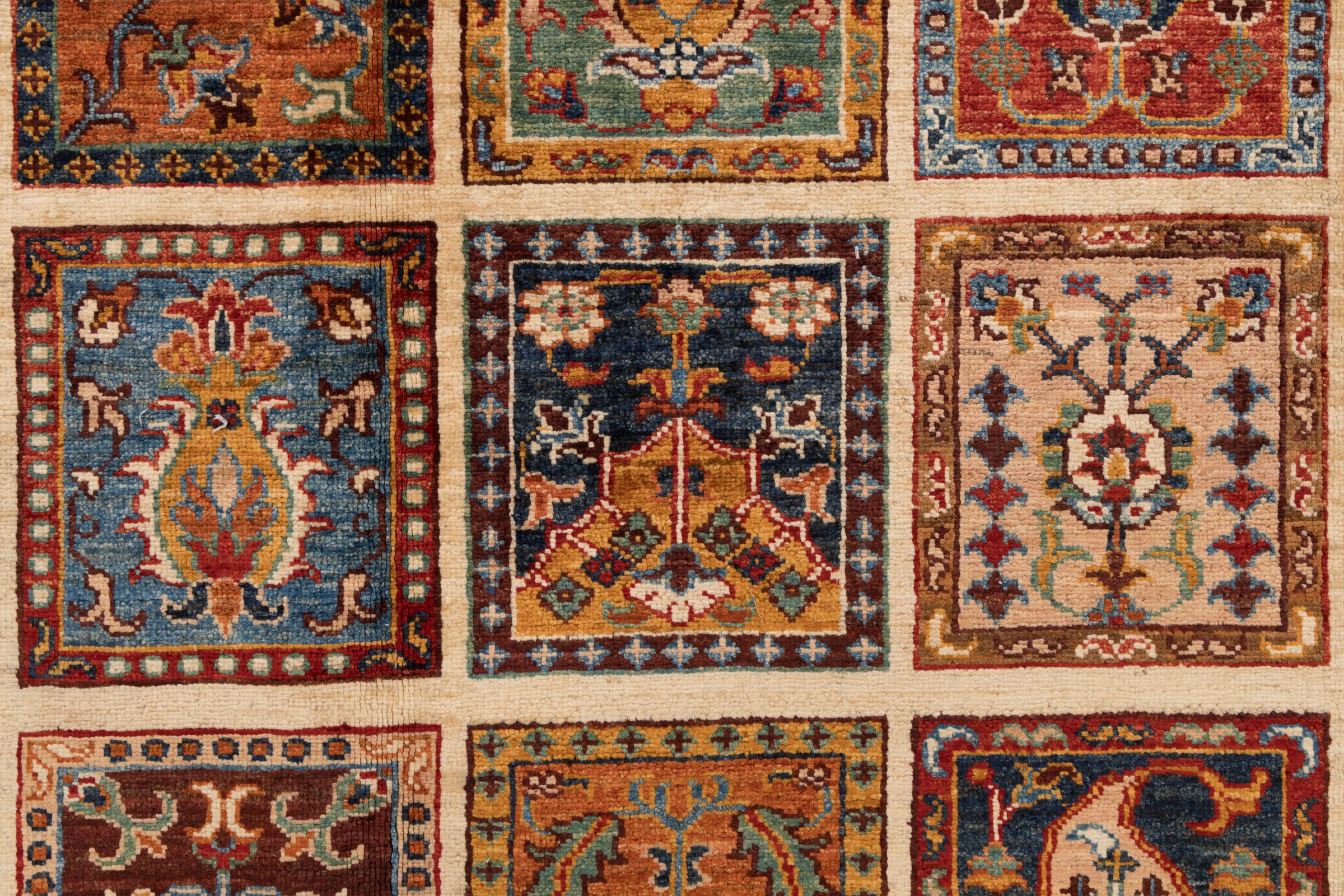 このアリジャナ・バクティアリのカーペットは、あなたの家に自然をもたらします。ペルシャ庭園の伝統的な庭園のデザインは、すぐにインスピレーションを与えます。伝統的な庭のモチーフは、東洋文化の中で常に人気があり、様々なペルシャ絨毯に見られます。このオリエンタルカーペットは、パキスタンで高品質の羊毛を使って手作りされたものです。柔らかな手仕事に触れると、手結びの良さが伝わってきます。