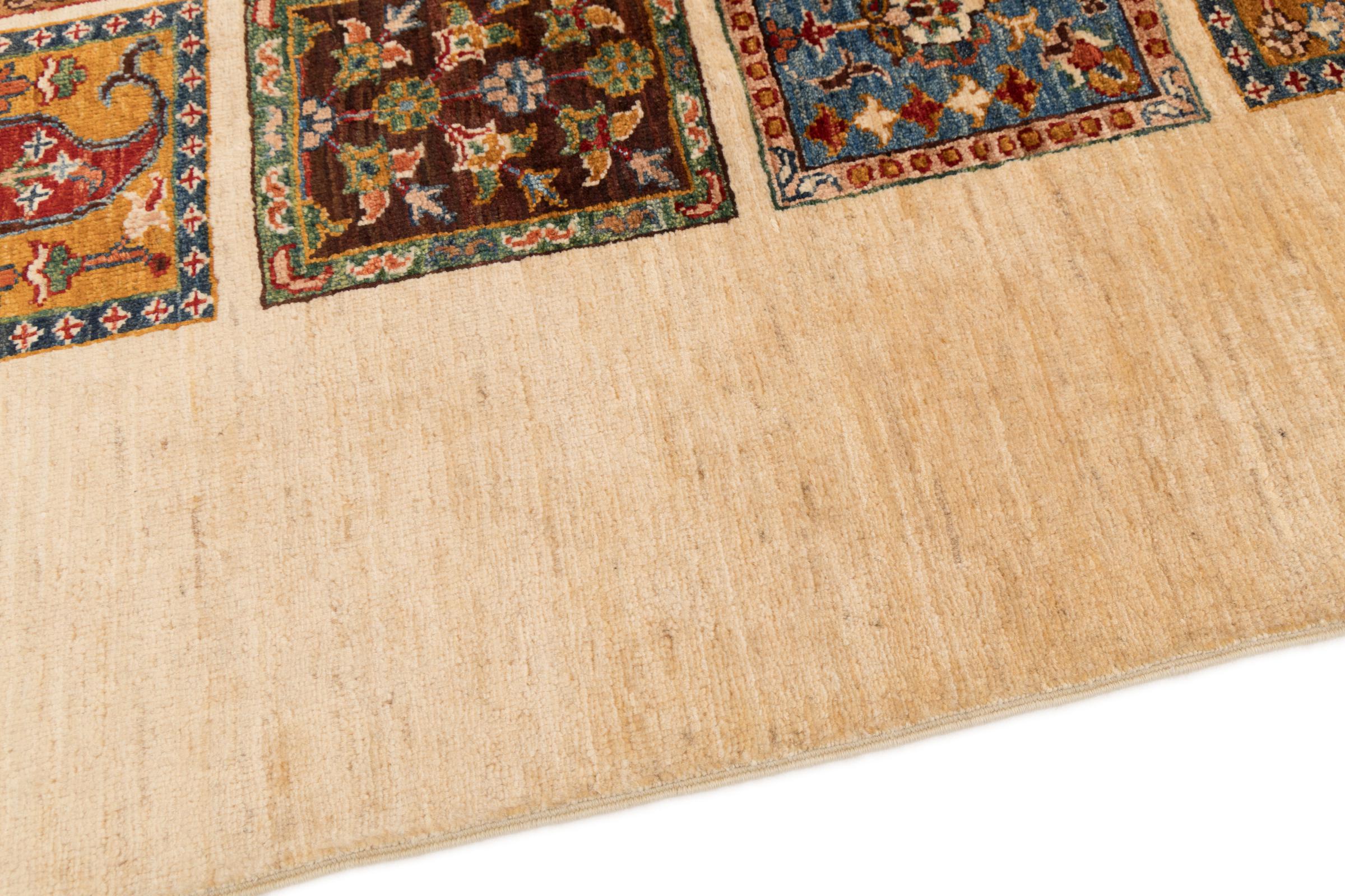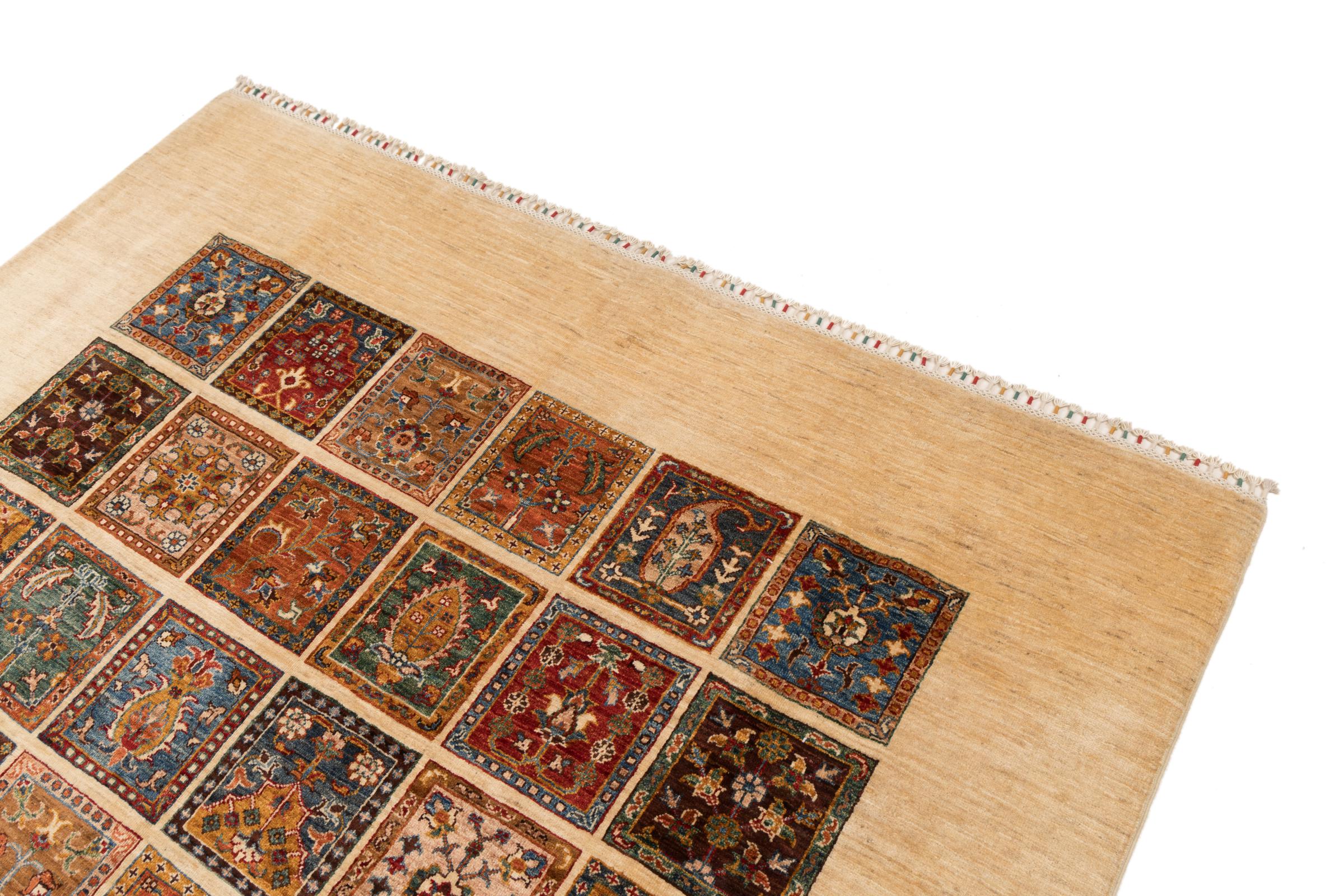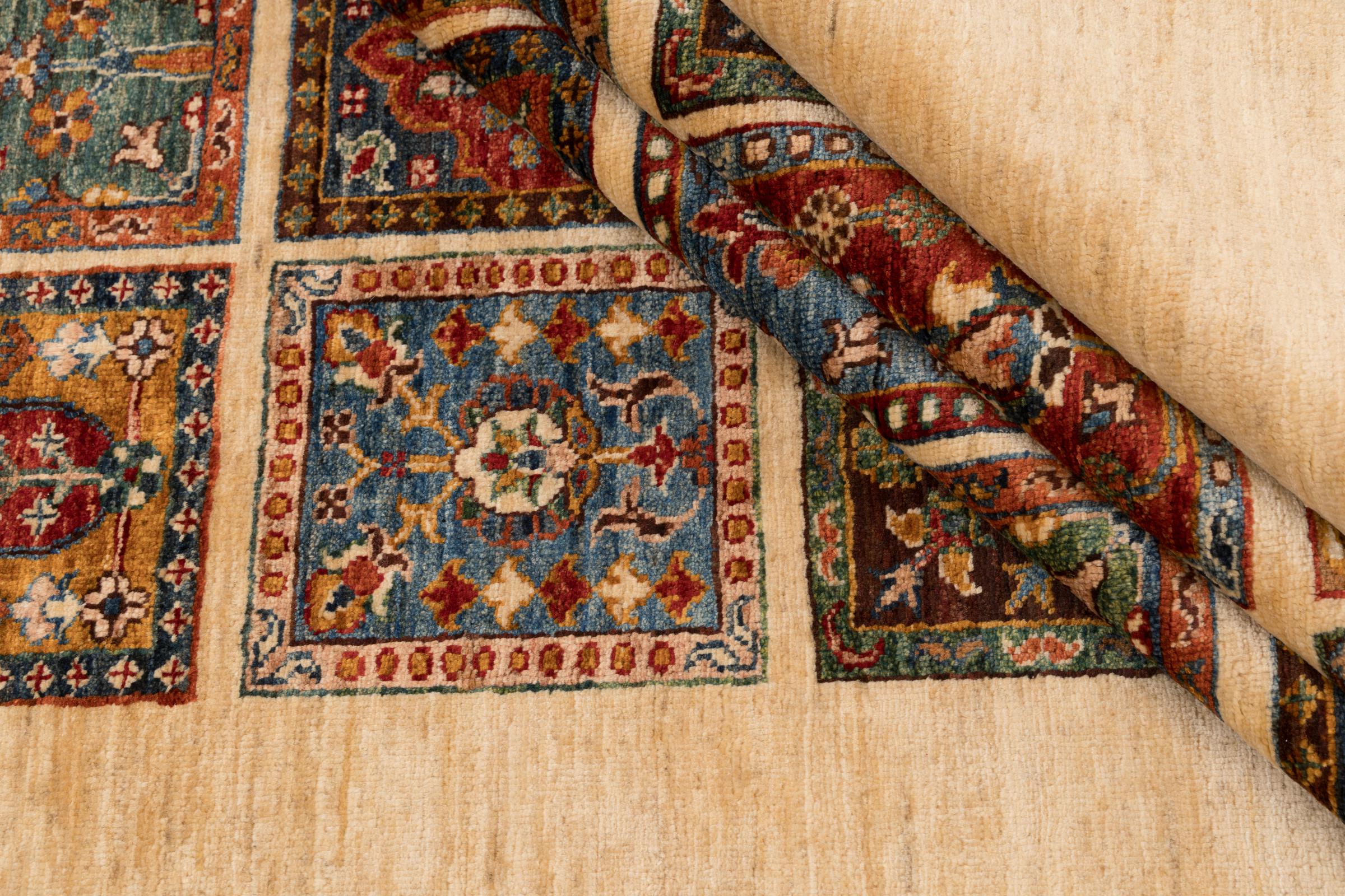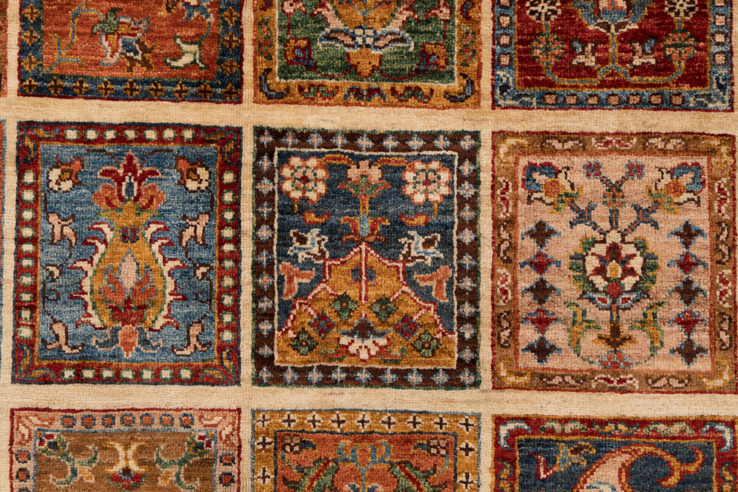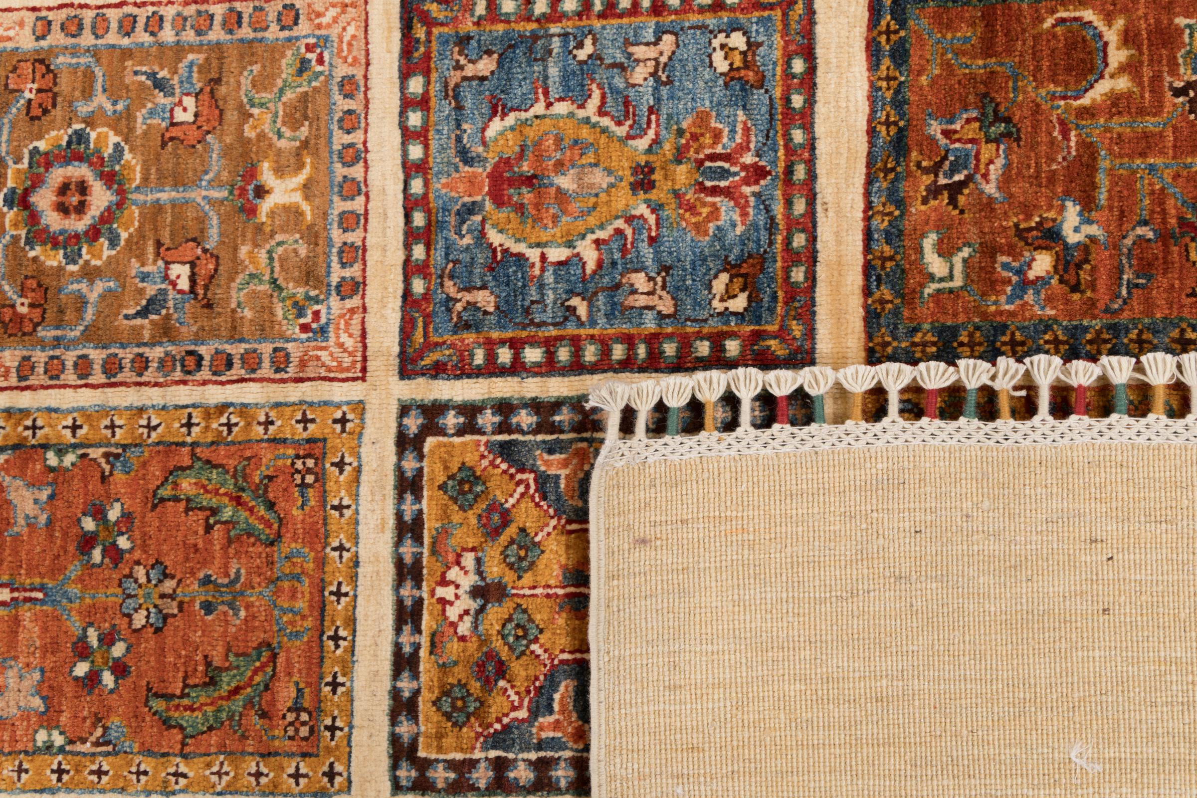 このアリジャナ・バクティアリのカーペットは、あなたの家に自然をもたらします。ペルシャ庭園の伝統的な庭園のデザインは、すぐにインスピレーションを与えます。伝統的な庭のモチーフは、東洋文化の中で常に人気があり、様々なペルシャ絨毯に見られます。このオリエンタルカーペットは、パキスタンで高品質の羊毛を使って手作りされたものです。柔らかな手仕事に触れると、手結びの良さが伝わってきます。